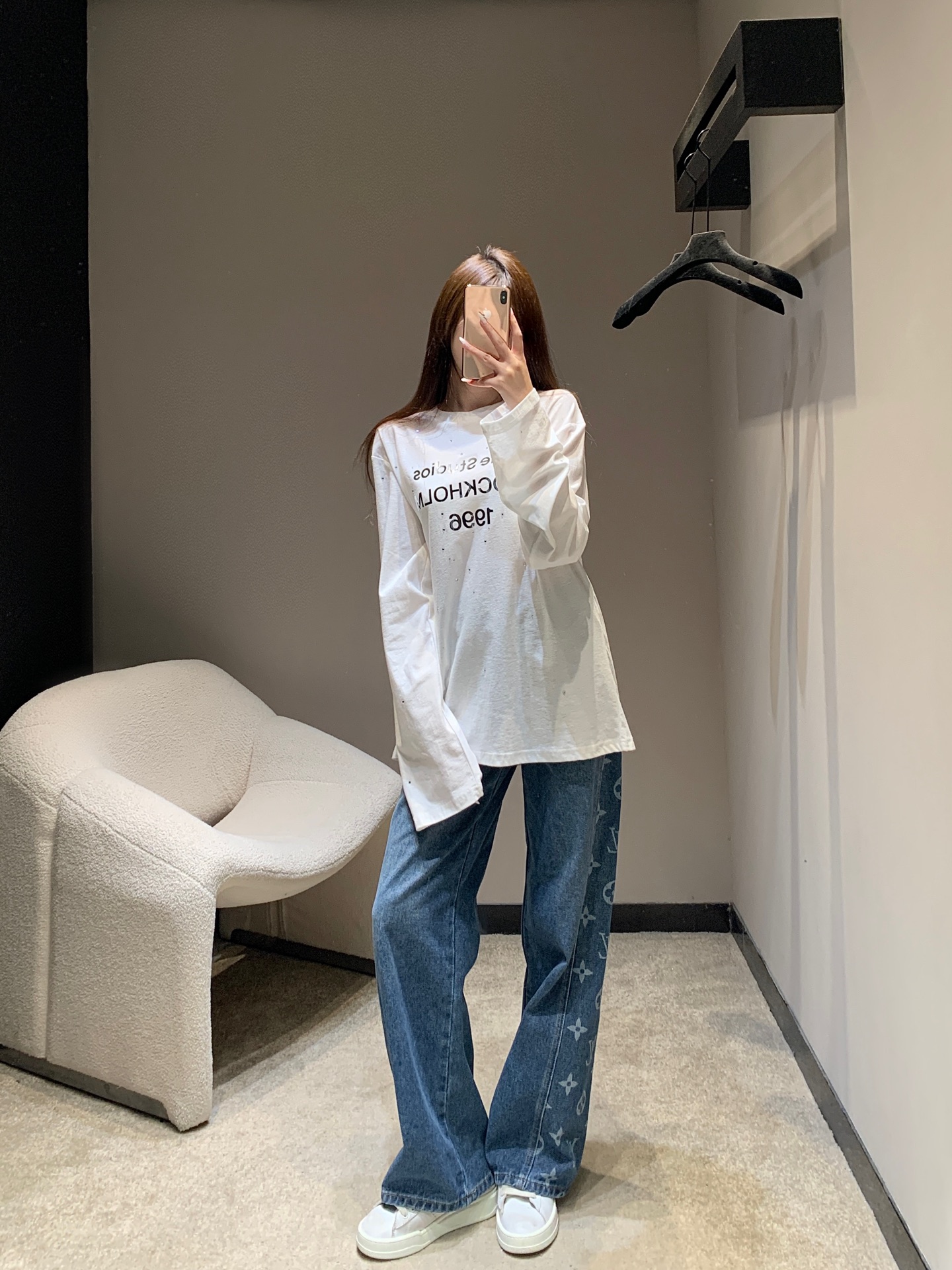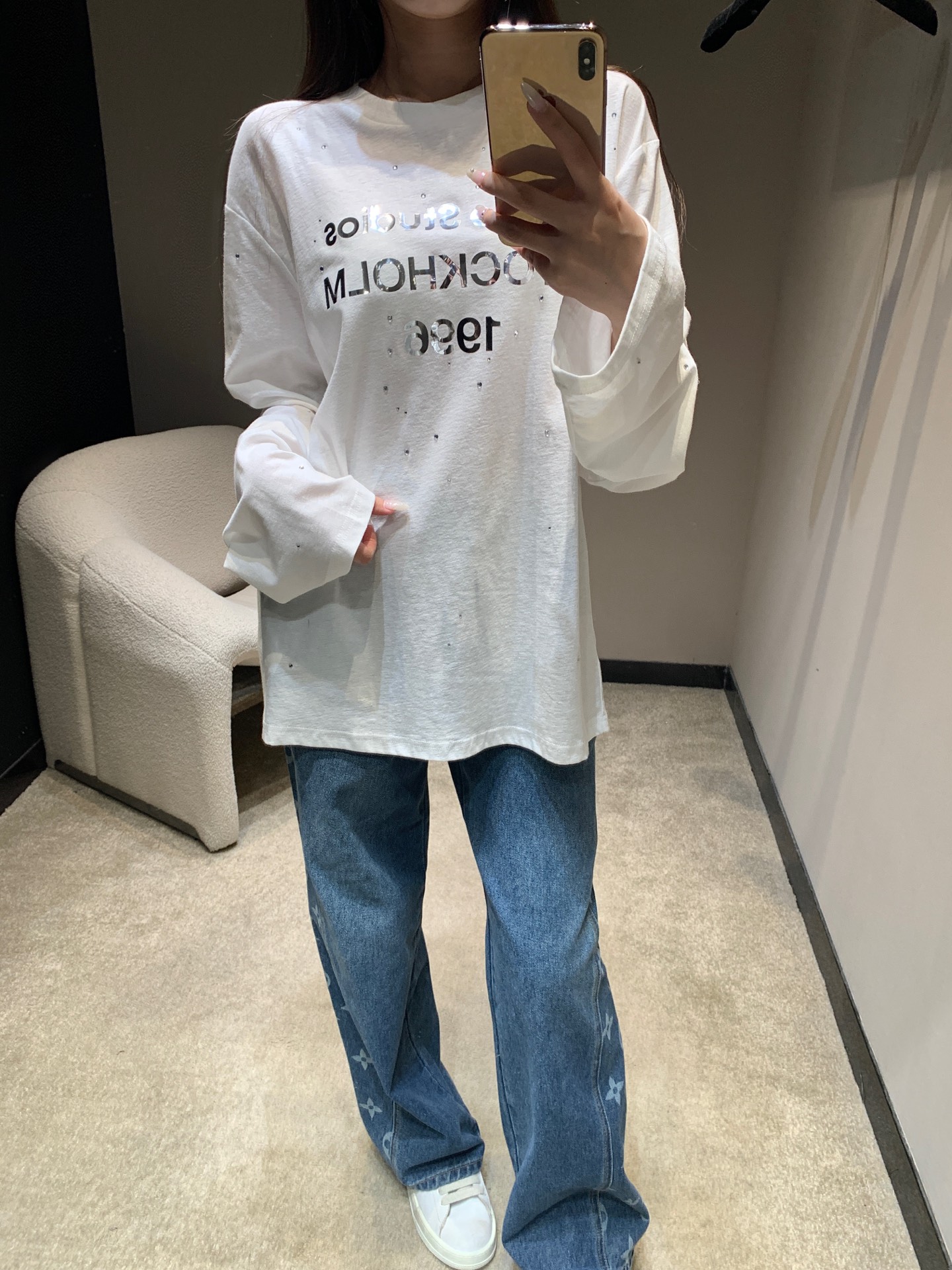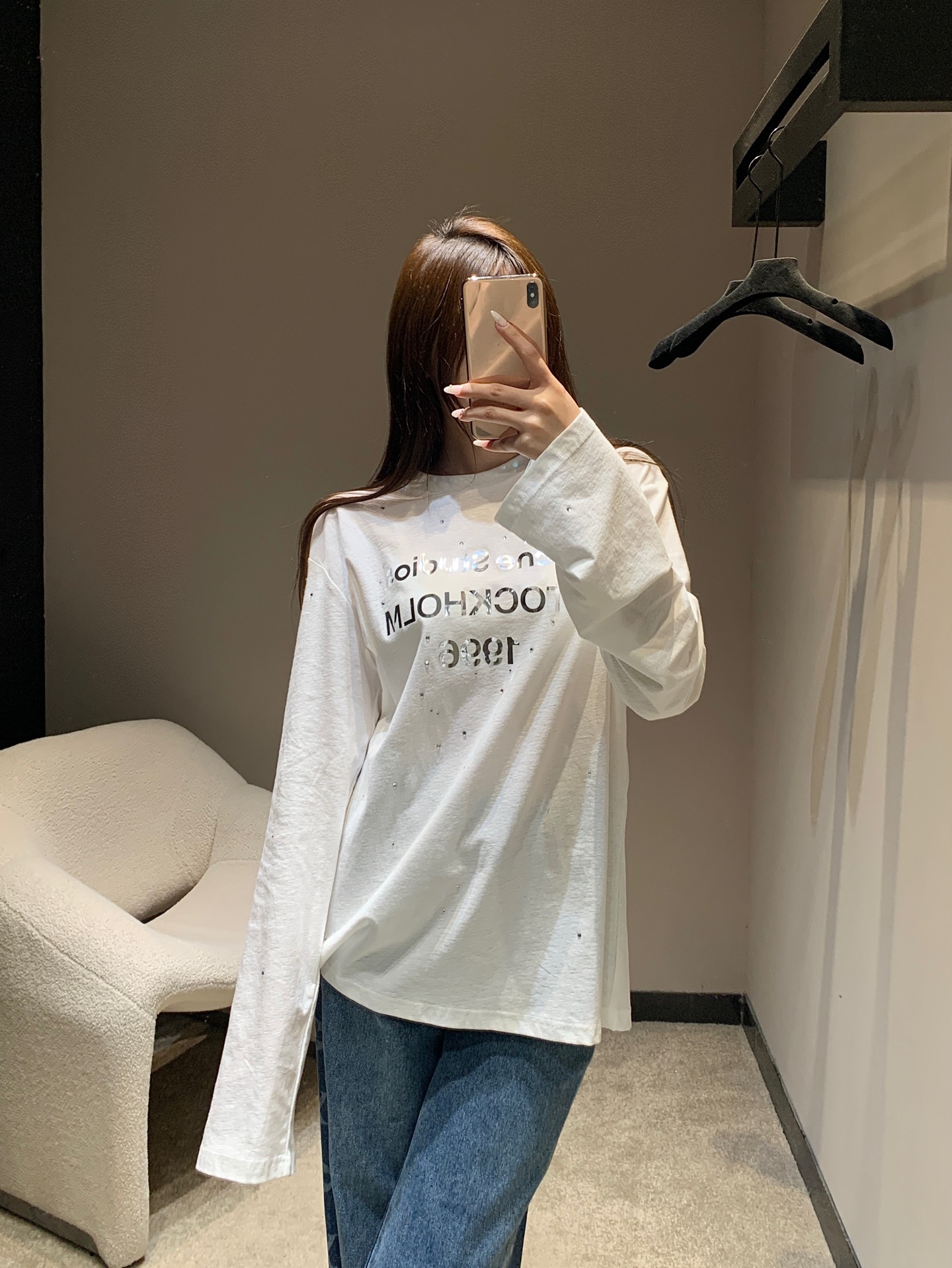 Tags: Acne Studios Long Sleeve, Casual Long Sleeve Shirt, Comfortable Long Sleeve, Mirror Print Long Sleeve, Rhinestone Long Sleeve Shirt, Women's Long Sleeve
