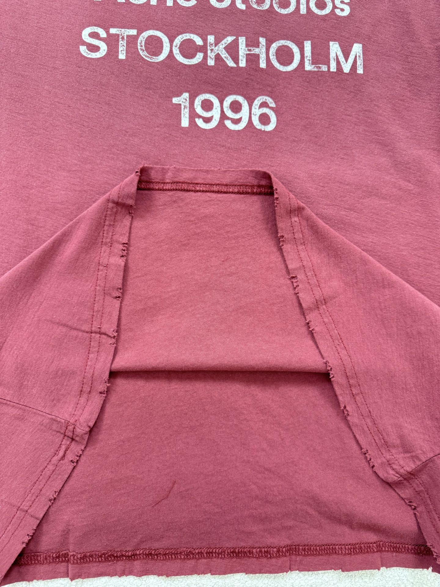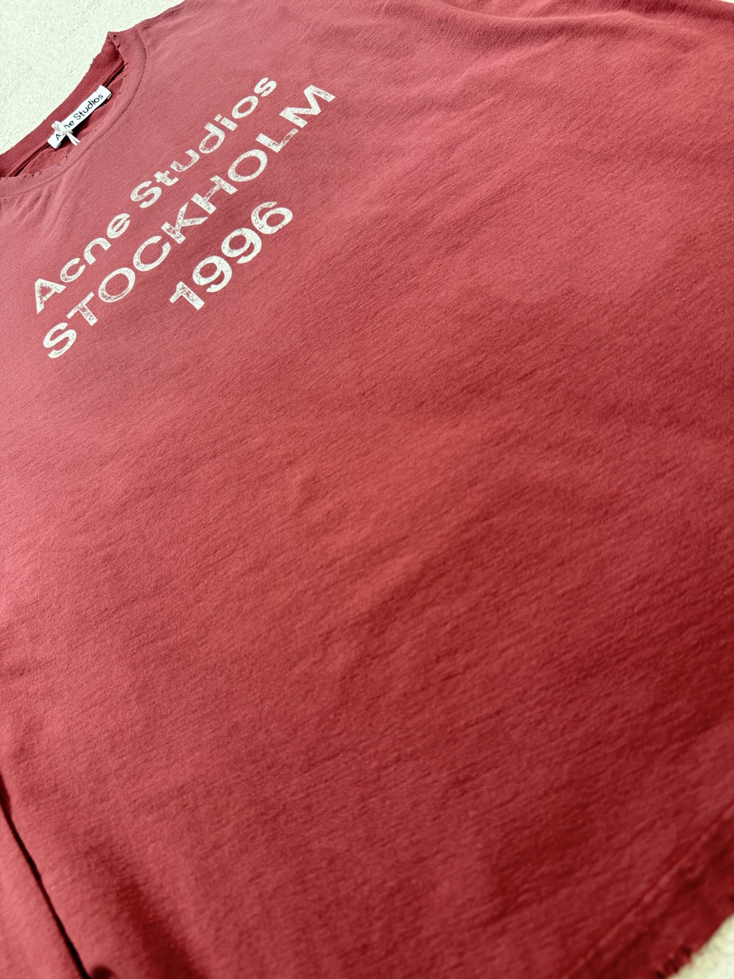 Tags: Acne Studios Casual Wear, Acne Studios Long Sleeve, Cotton Jersey Top, Designer Long Sleeve Tee, Red Logo T-shirt, Stockholm 1996 T-Shirt