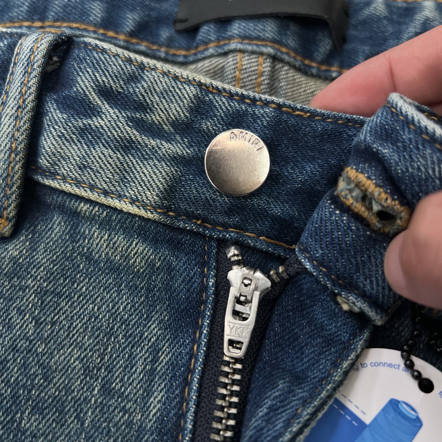 These Amiri blue jeans are a statement piece that will set you apart from the crowd. With their impeccable craftsmanship and contemporary design, they are sure to become a staple in your wardrobe for years to come.