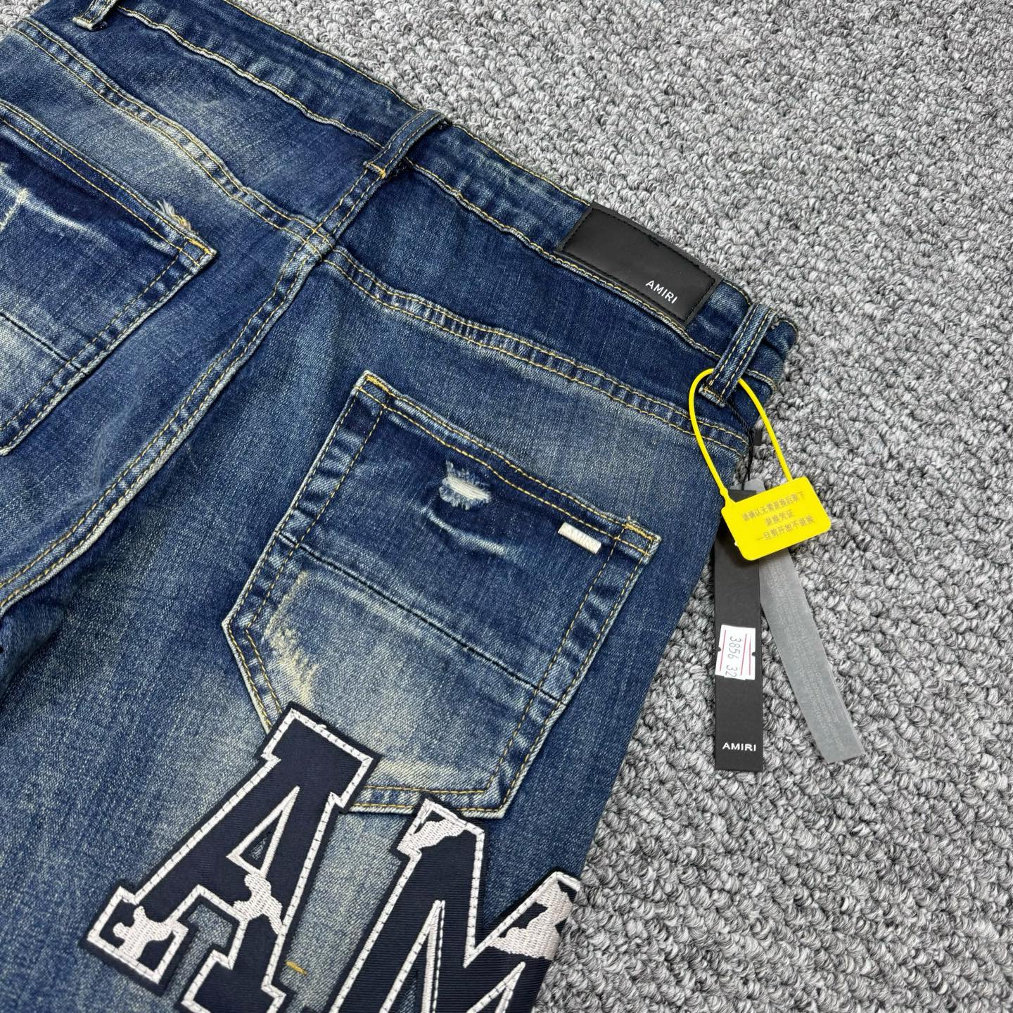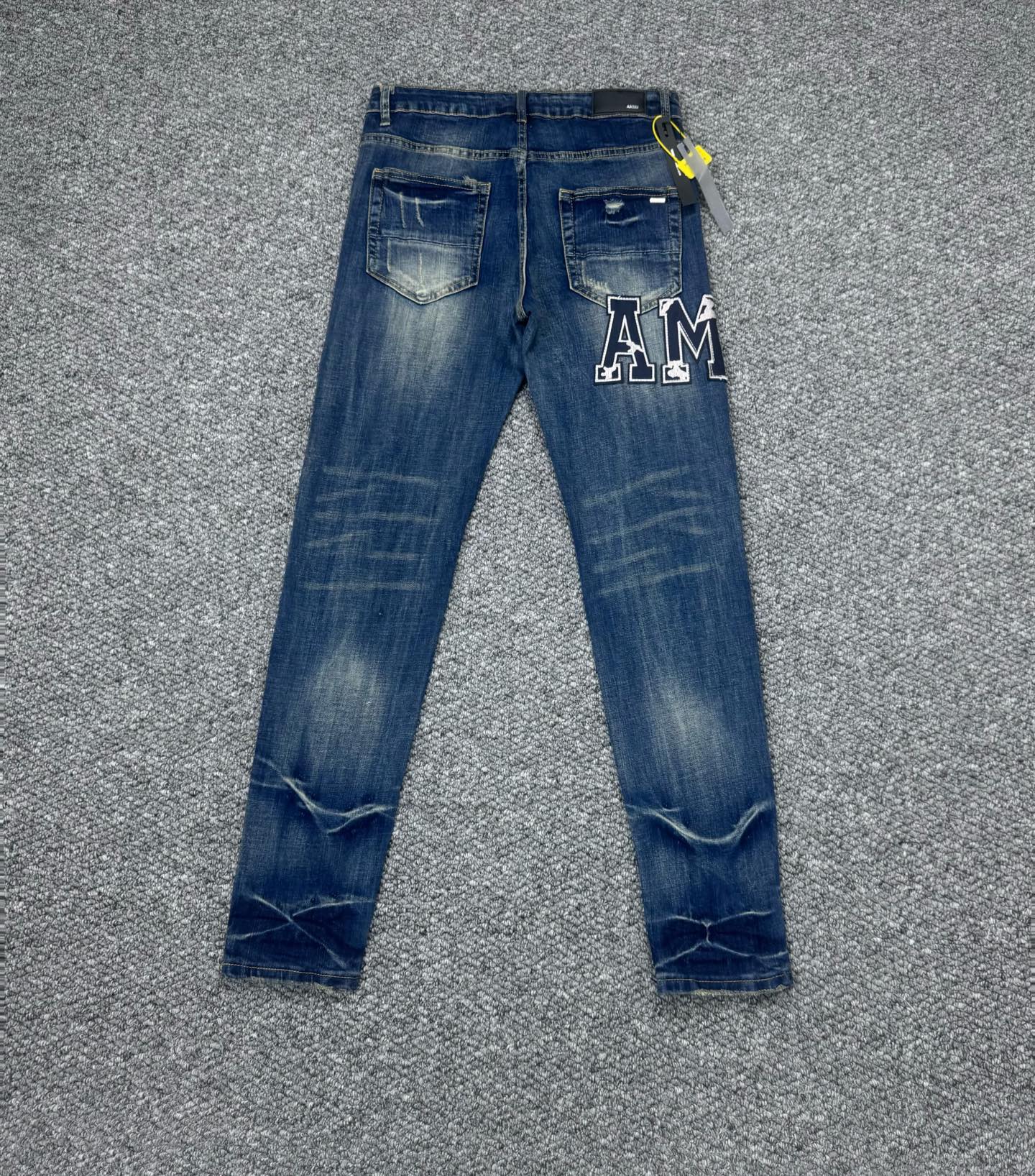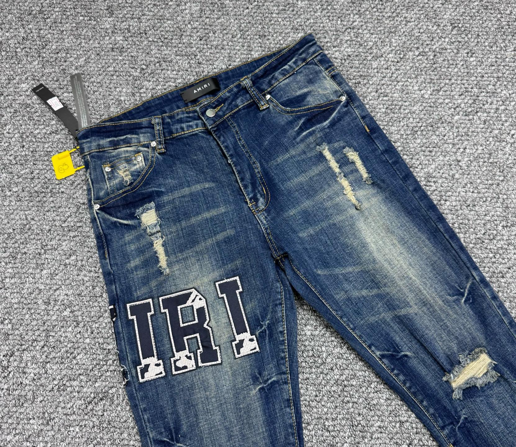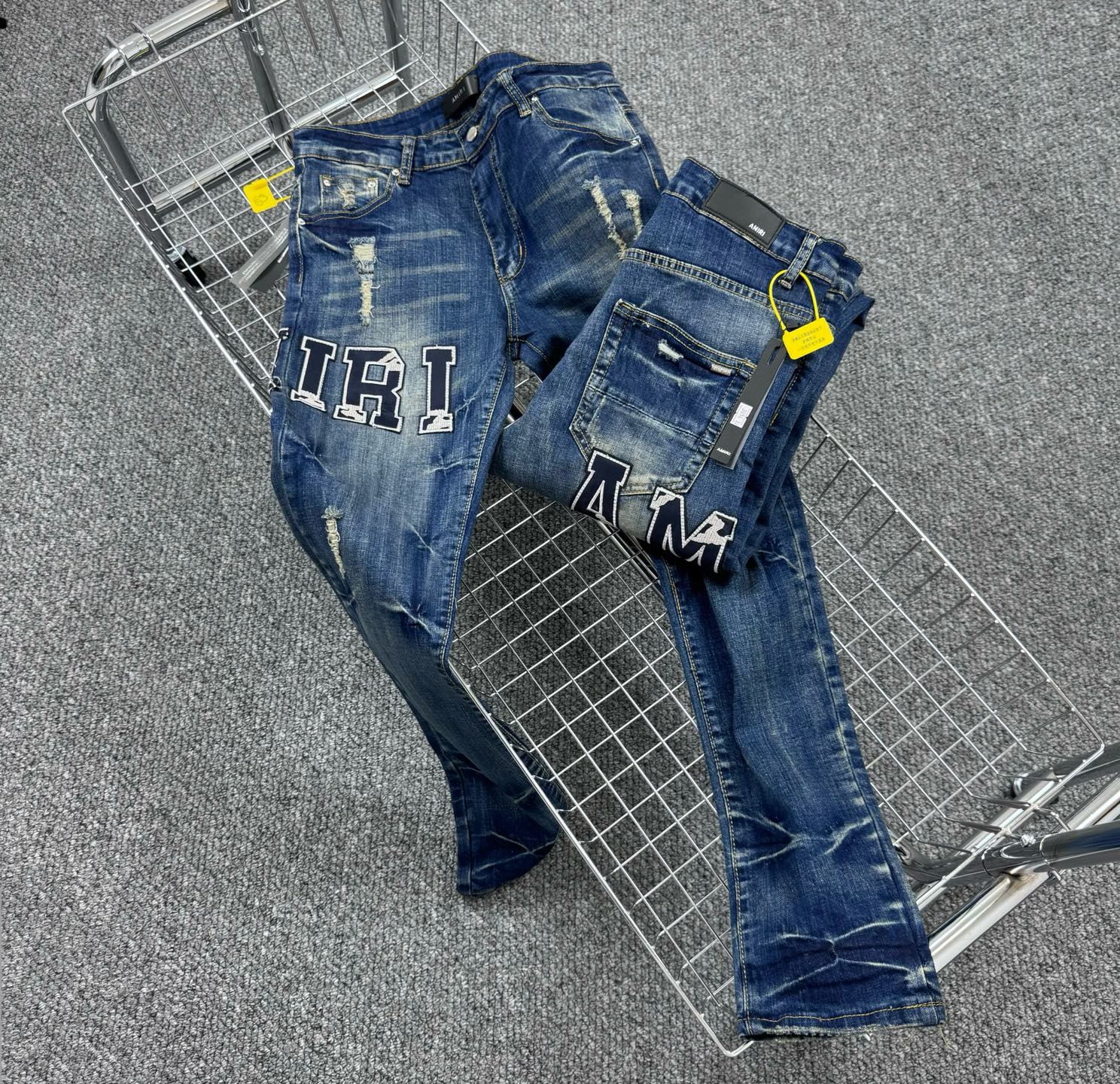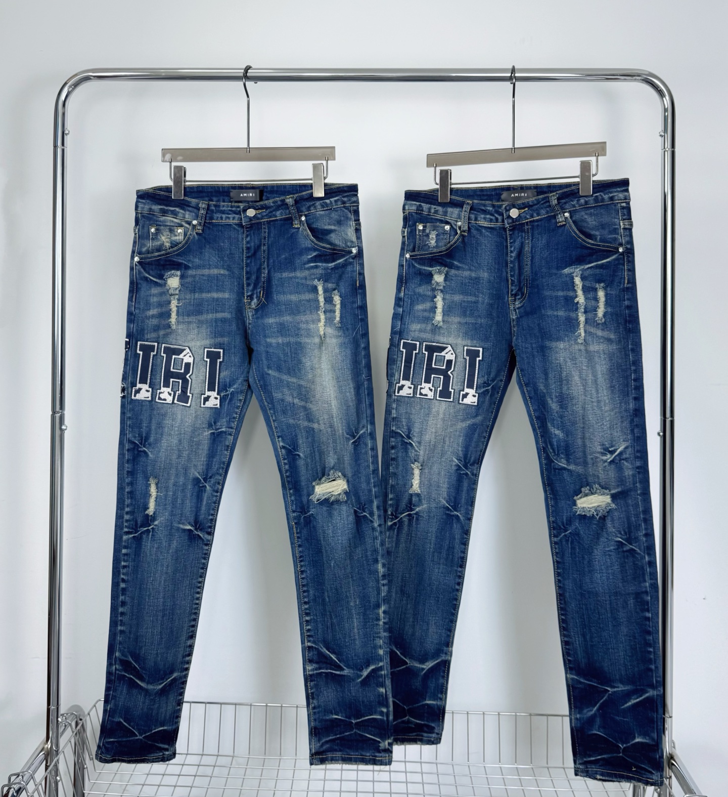 Crafted with high-quality denim, these Amiri jeans blend comfort with a cutting-edge aesthetic. The slim fit design ensures a modern silhouette, while the distressed detailing and embroidered logo add a touch of luxury streetwear.