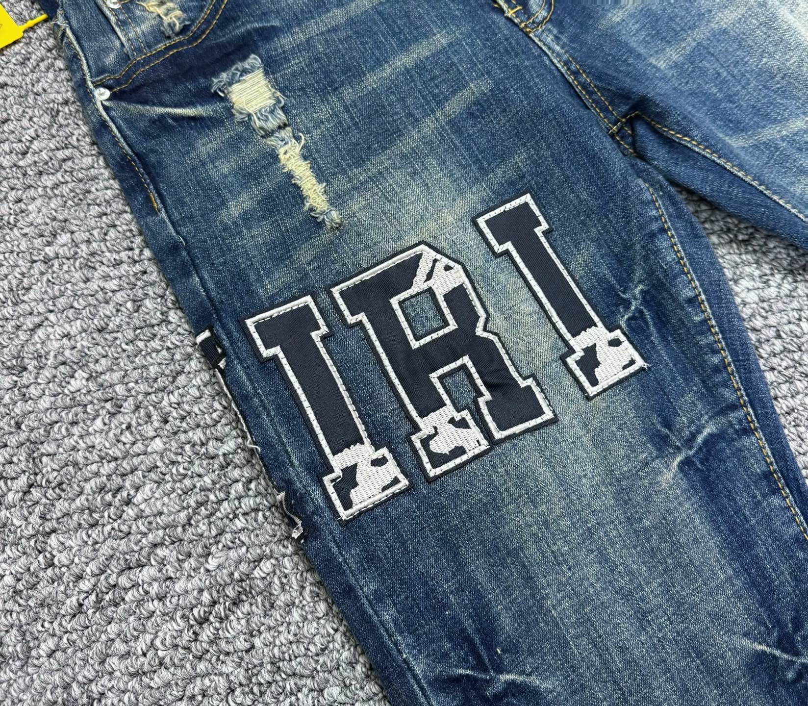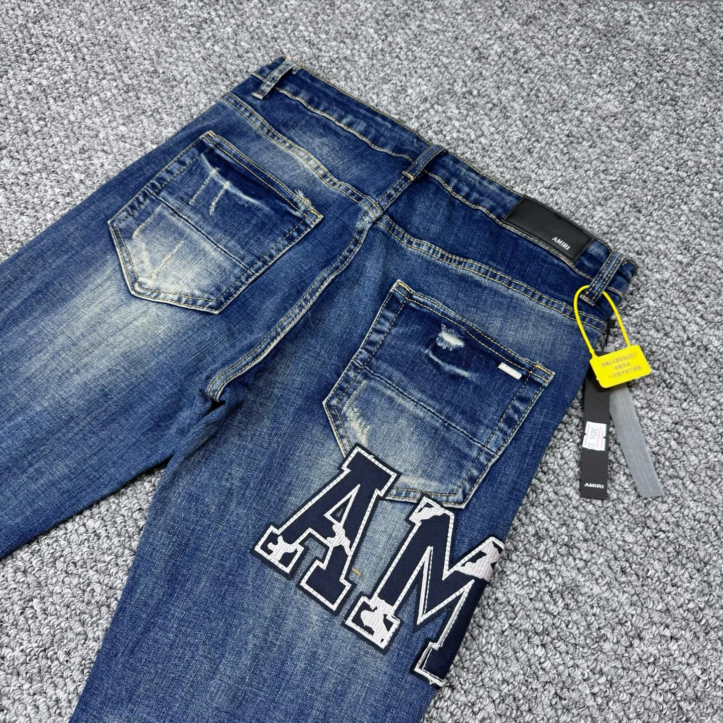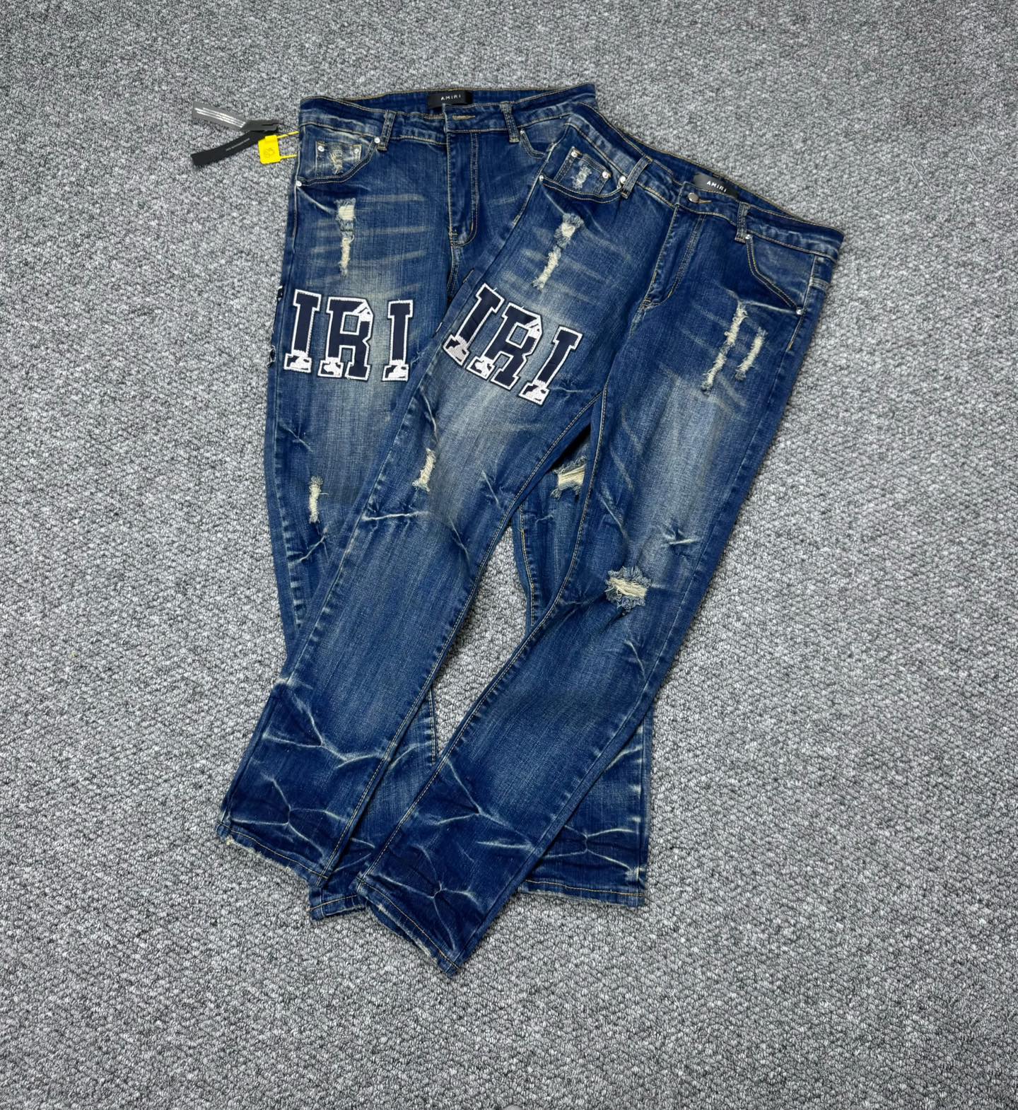 Amiri Men's Distressed Slim Fit Jeans with Embroidered Logo - Stylish Denim
