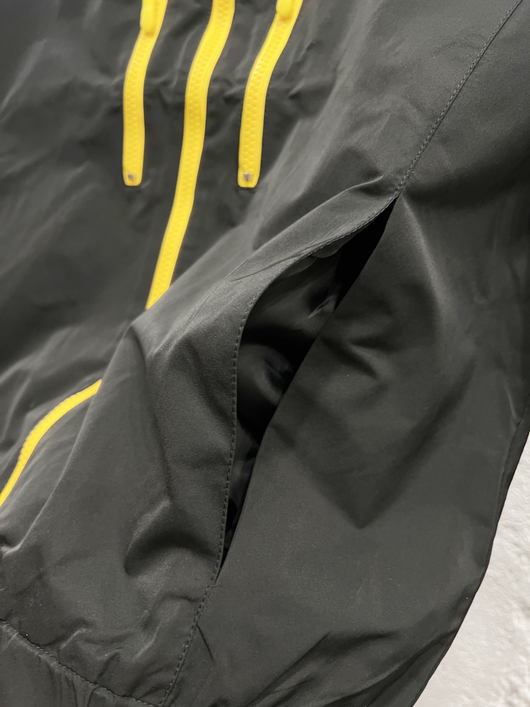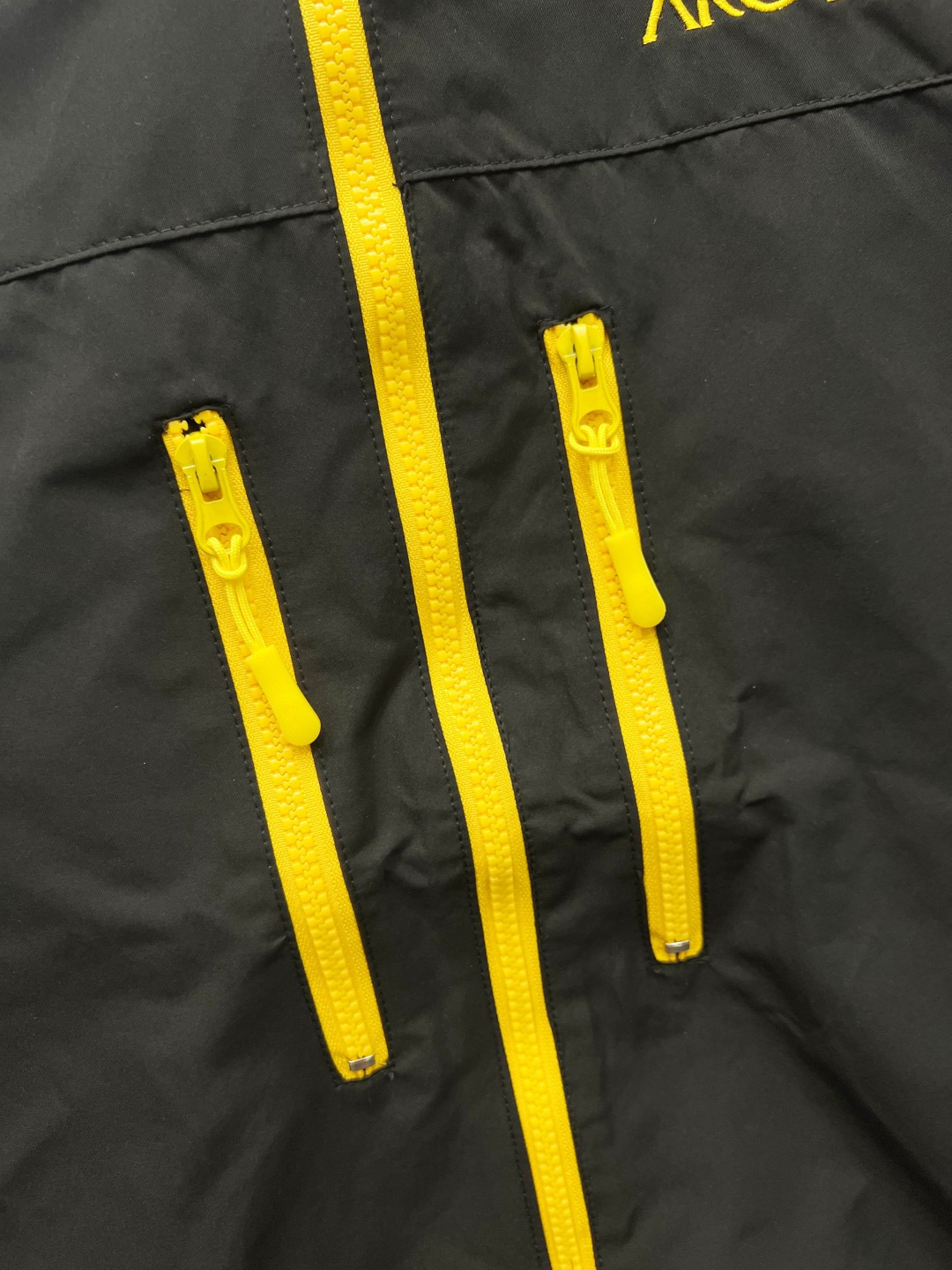 Stay protected in style with this Arc'teryx windproof jacket. Features a lightweight design and unique yellow accents for a modern look.