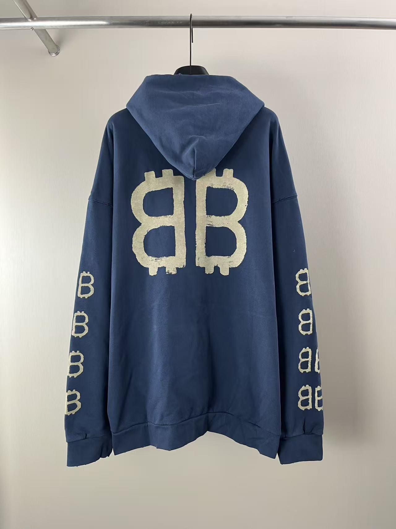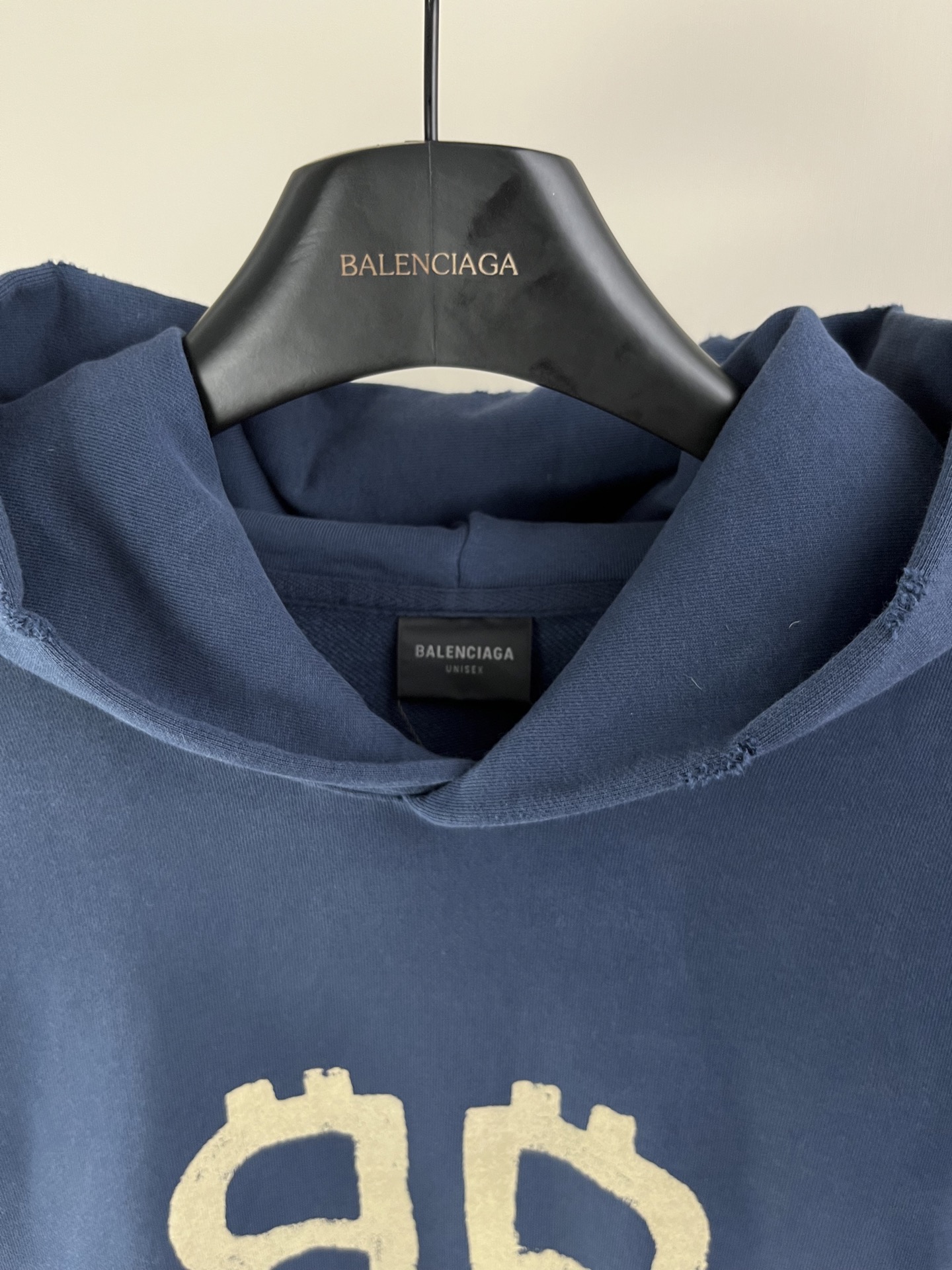 Tags: Balenciaga Hoodie, Blue Cotton Hoodie, Designer Hoodie, Distressed Hoodie, Double B Logo Hoodie