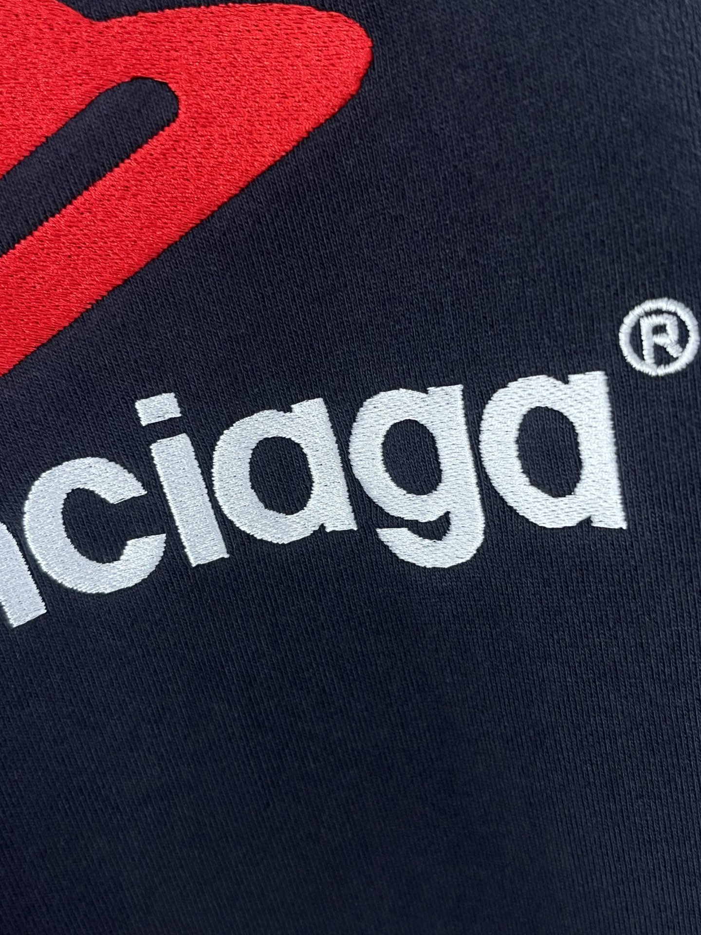 Elevate your style with the Balenciaga embroidered logo hoodie. Perfect for casual outings or making a bold statement, this hoodie is a must-have for fashion enthusiasts.