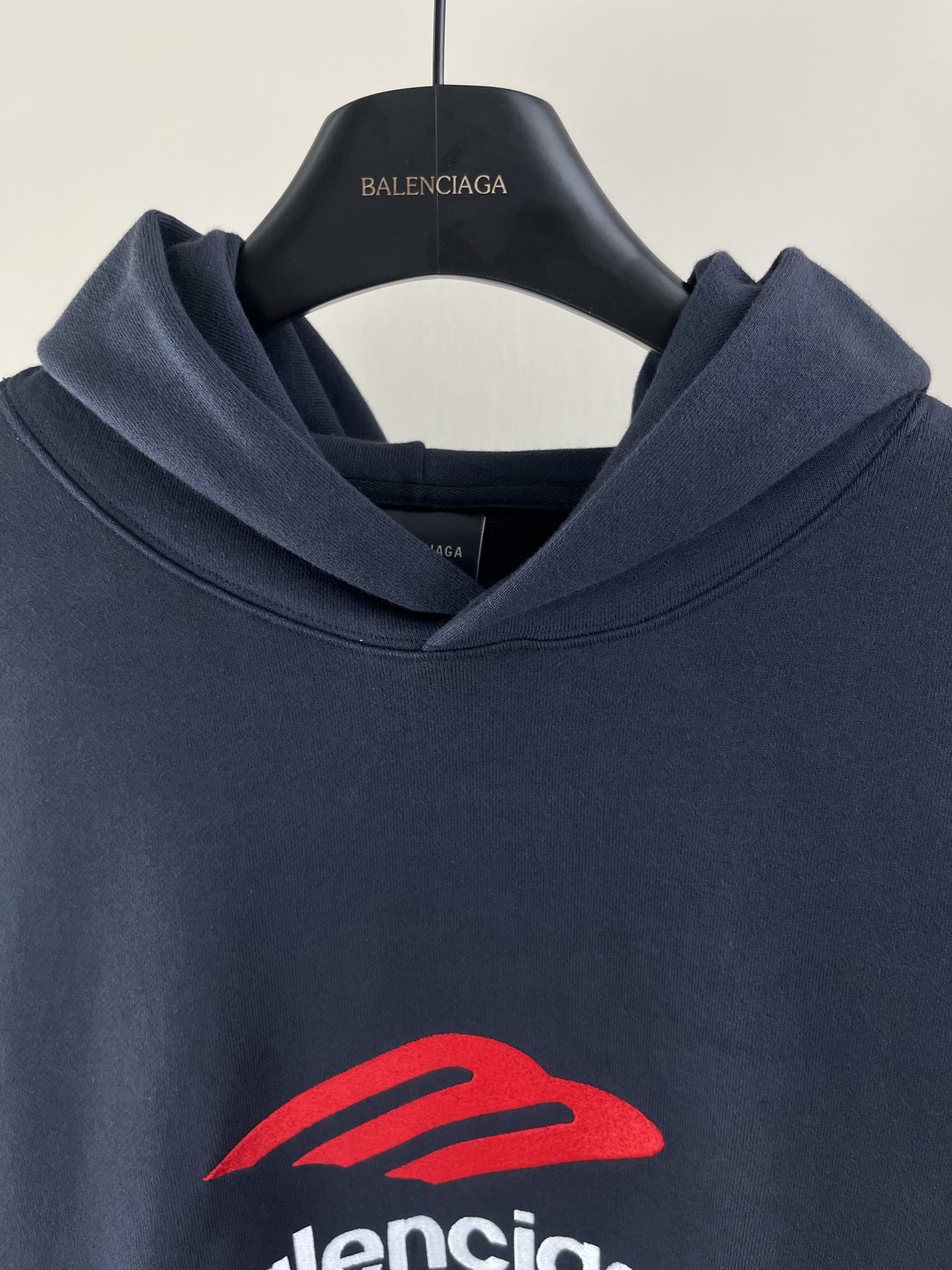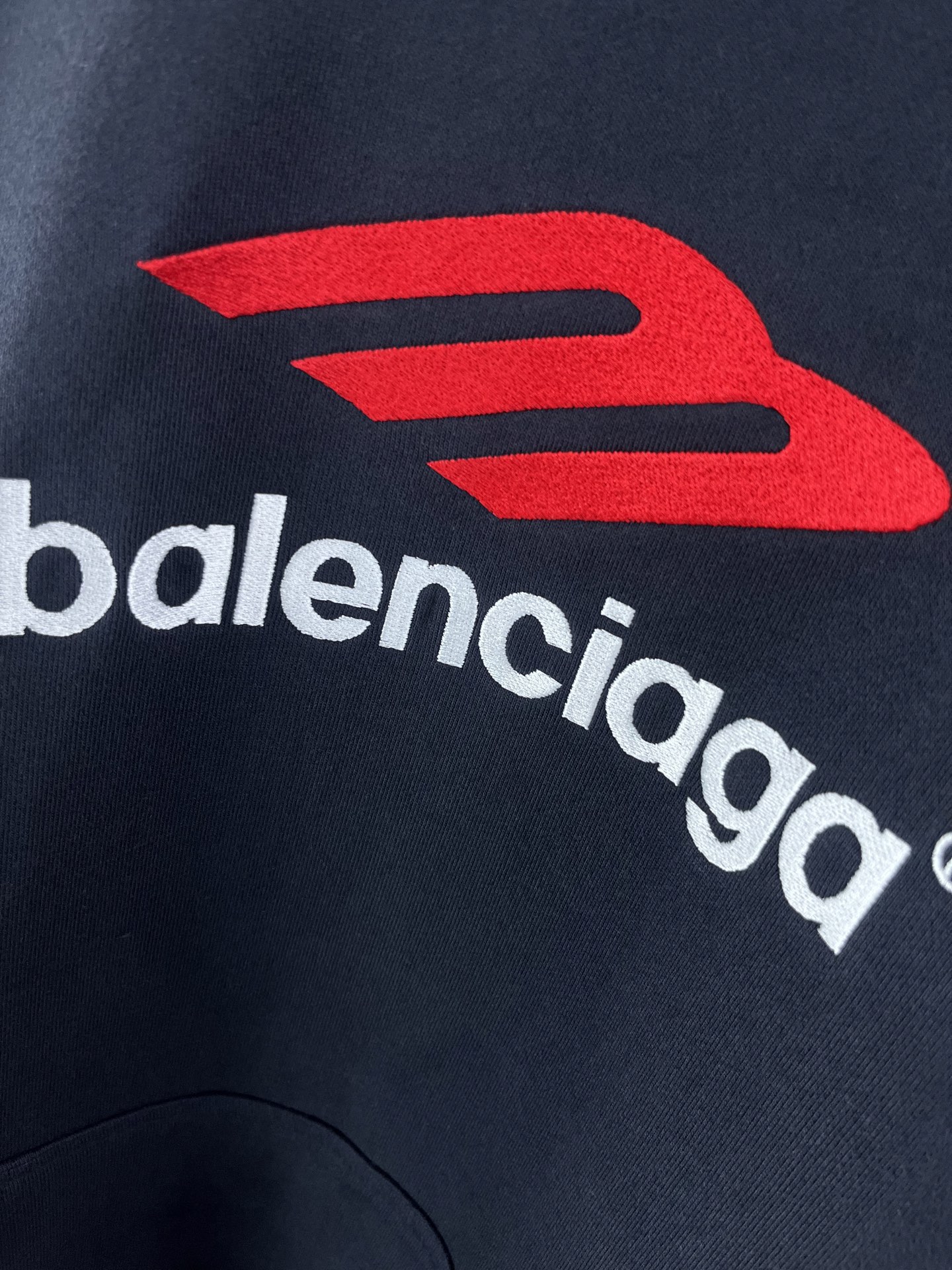 Tags: Balenciaga Hoodie, Cotton Blend Sweatshirt, Designer Hoodie, Embroidered Hoodie, Oversized Fit Hoodie, Streetwear Hoodie