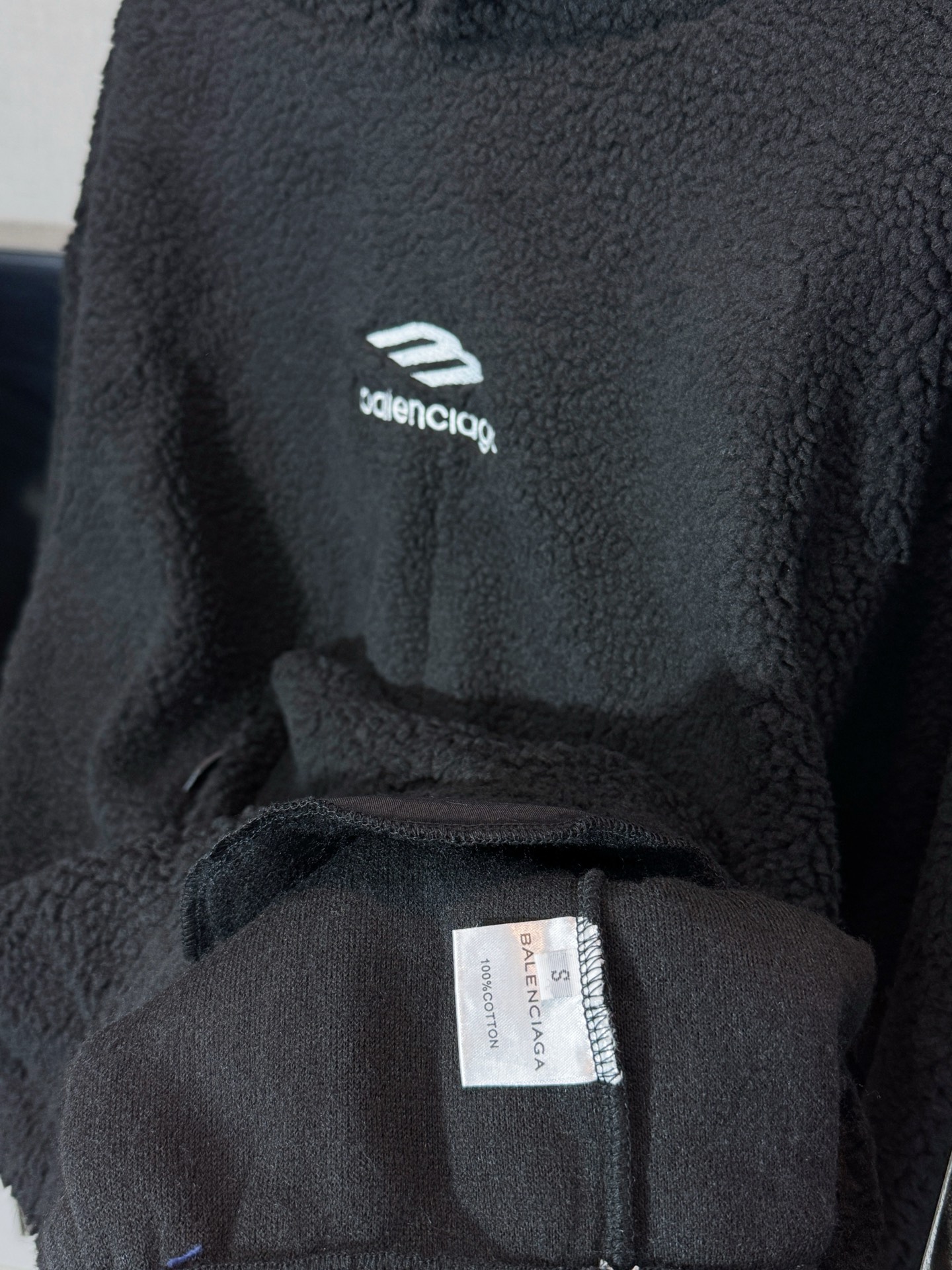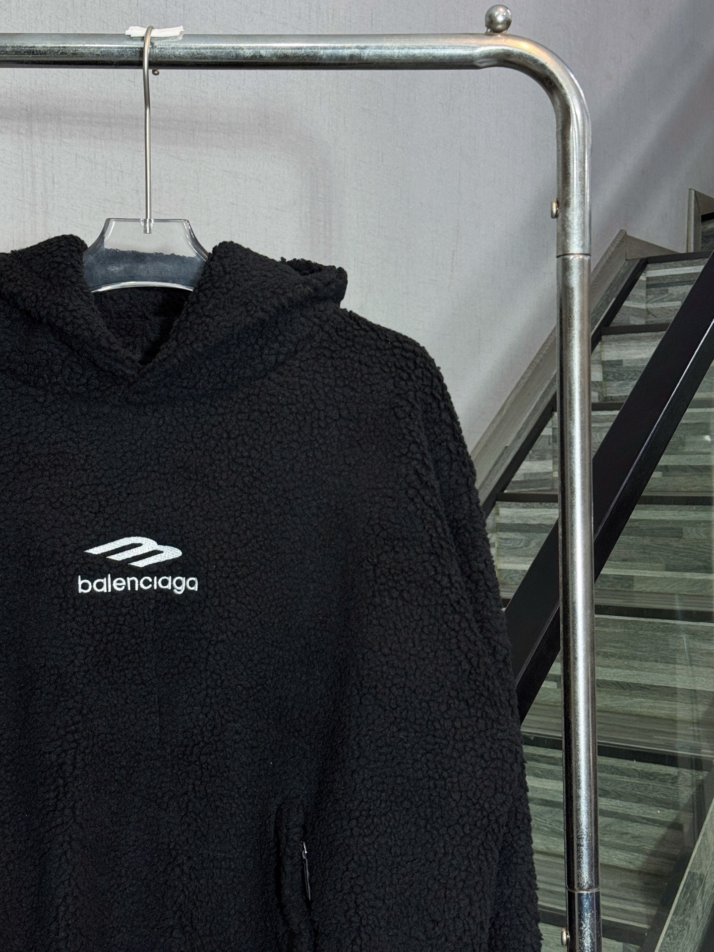 Tags: Balenciaga Hoodie, Embroidered Hoodie, Heavyweight Hoodie, Lamb Fleece Hoodie, Pullover Sweatshirt, Winter Hoodie