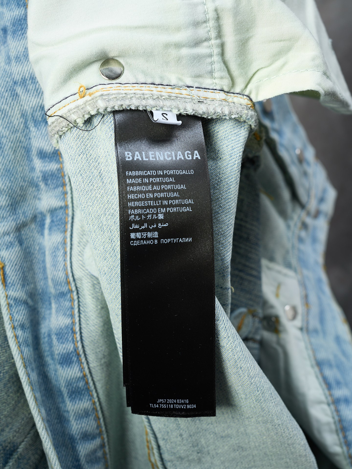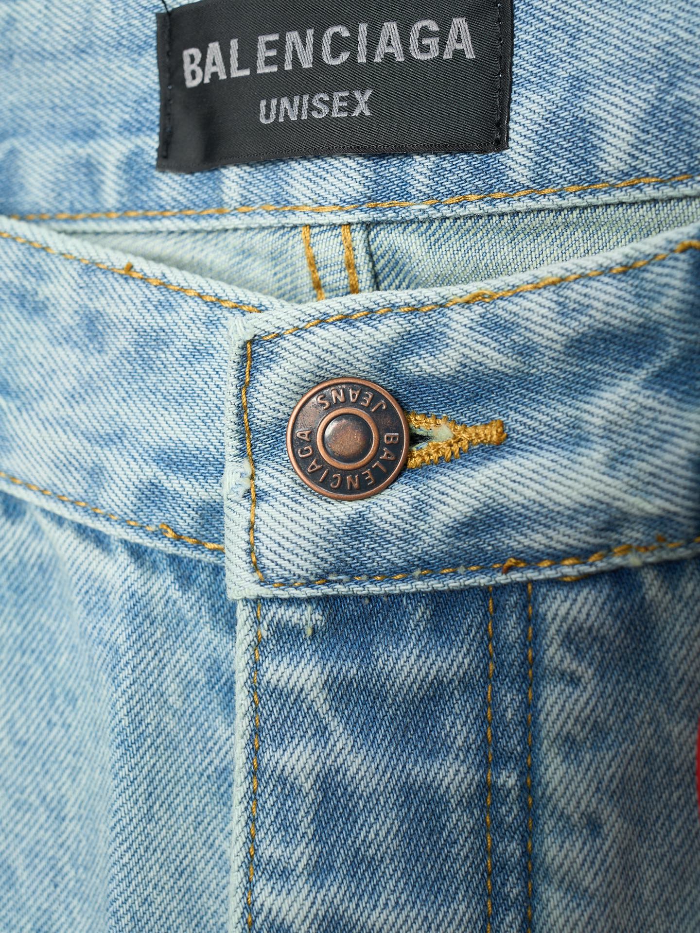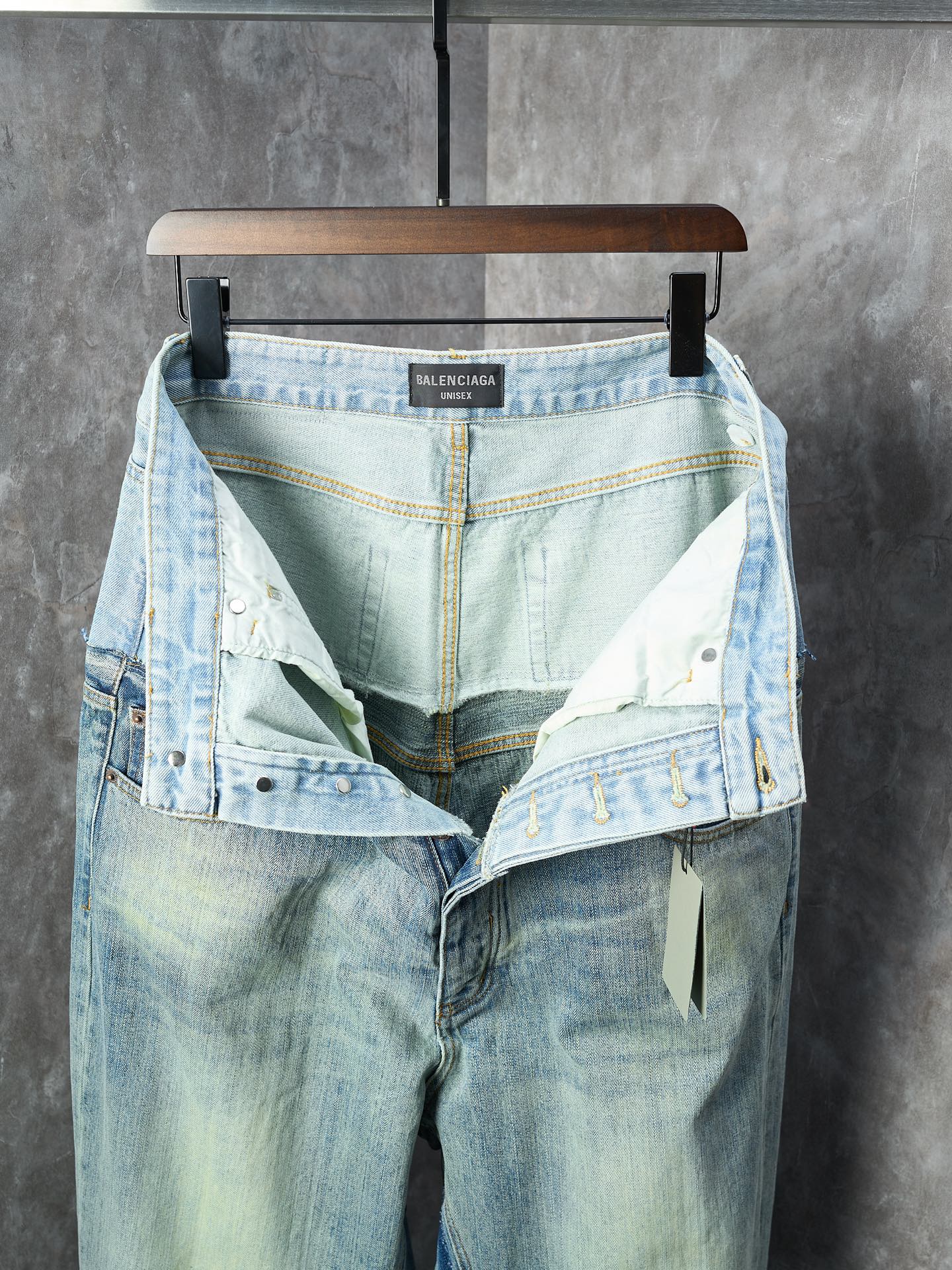 Balenciaga Multi-Pocket Two-Tone Jeans Distressed Denim Wide Leg Pants