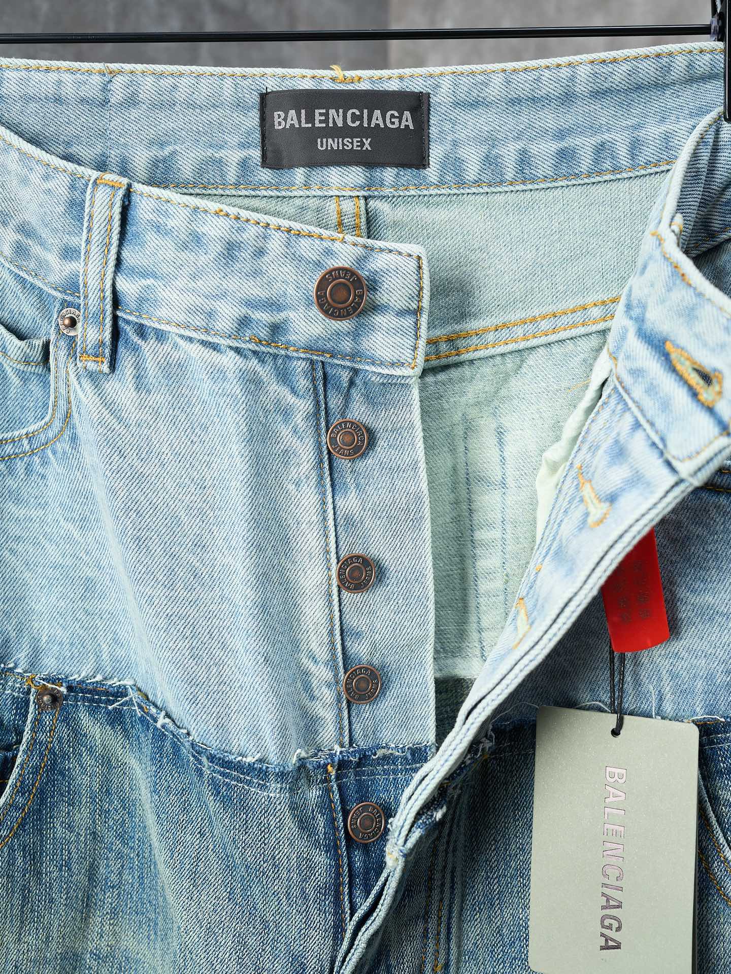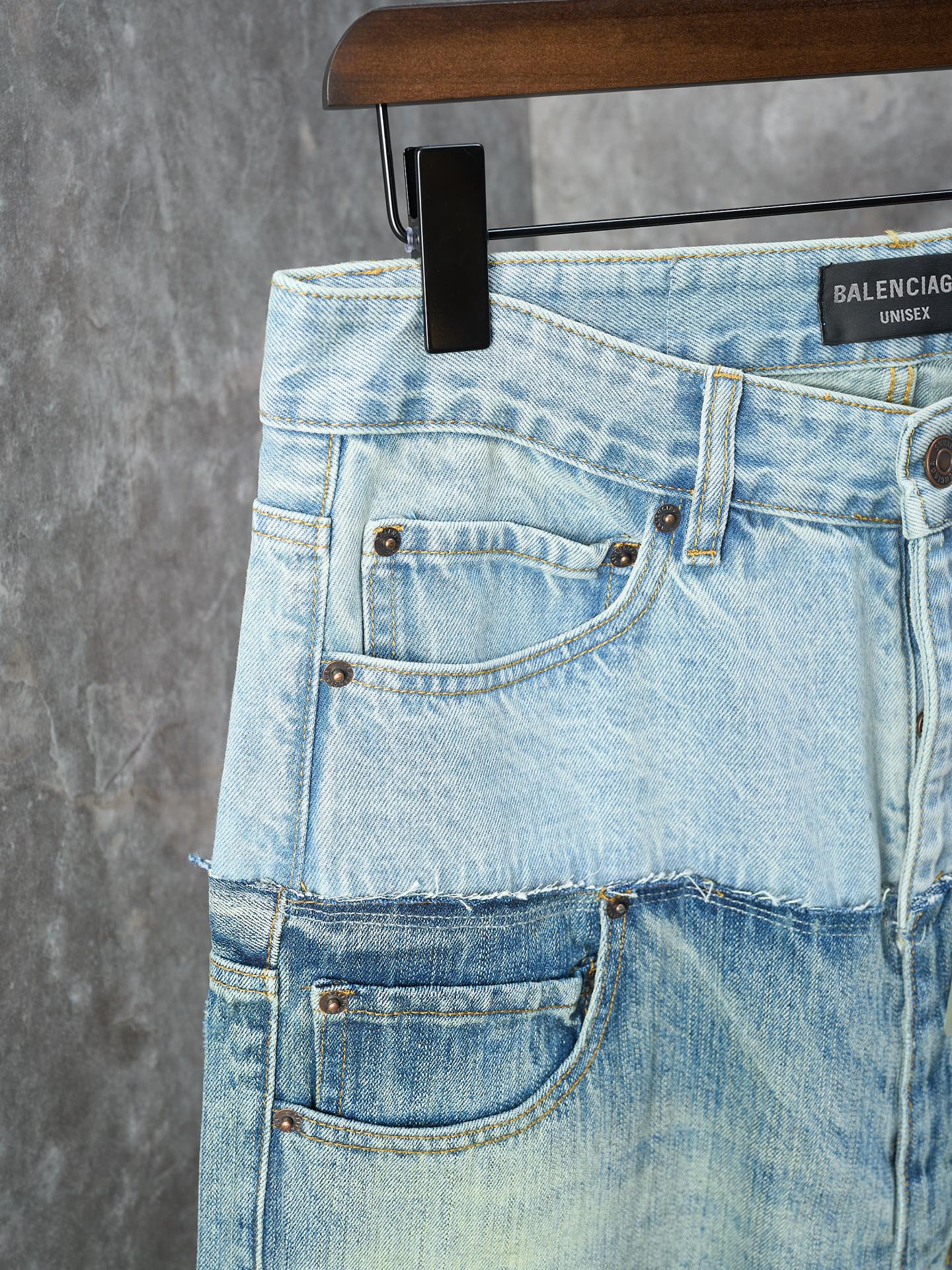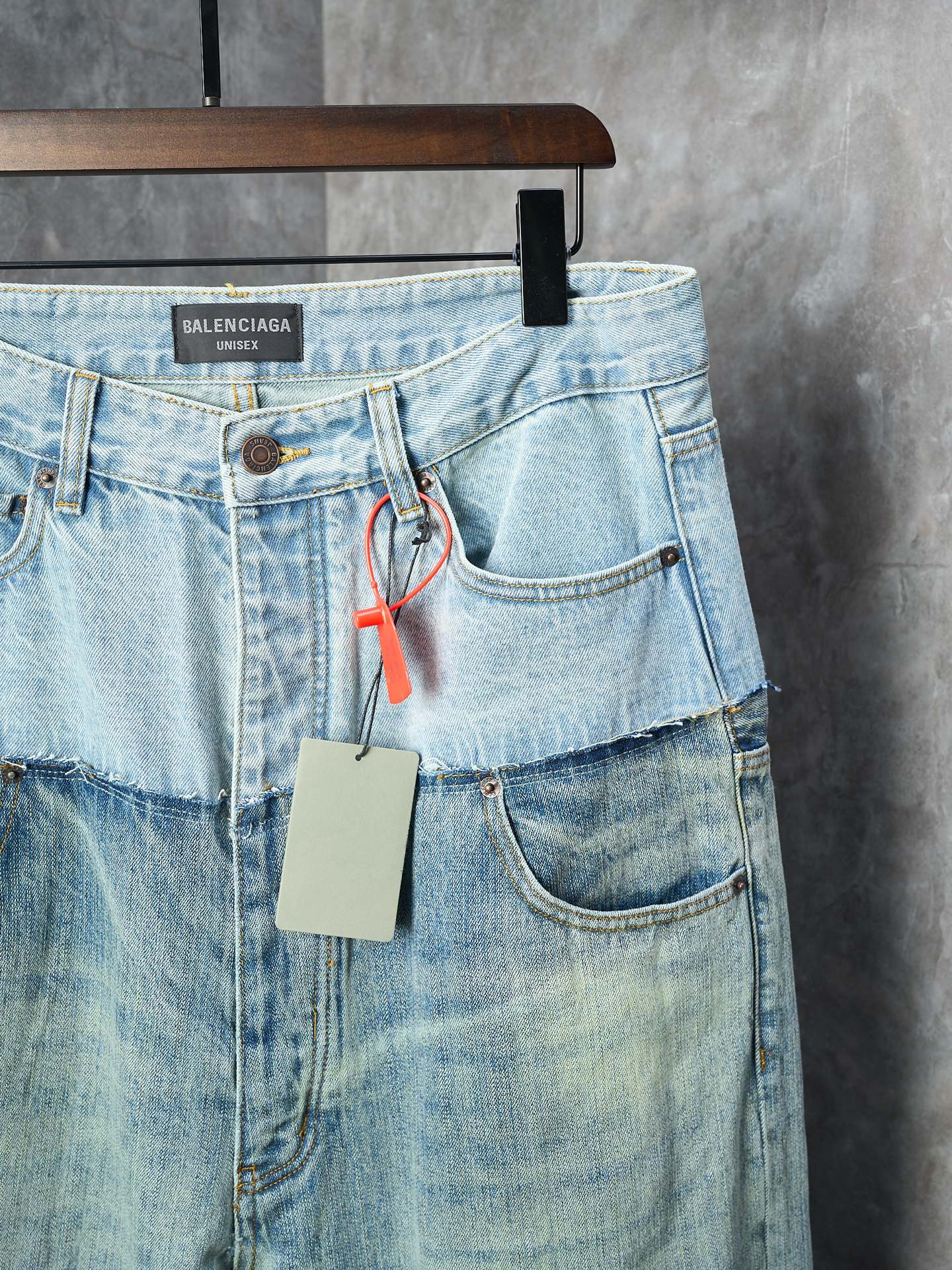 These Balenciaga multi-pocket two-tone jeans redefine denim wear with their unique design and high-quality construction.