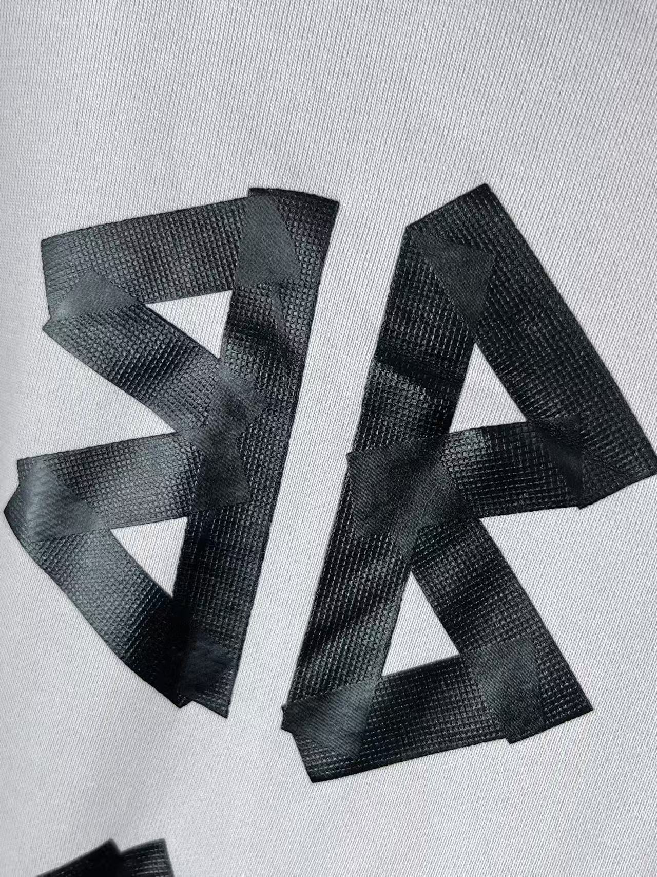 This Balenciaga hoodie is a blend of luxury and comfort. Featuring a unique silver tape logo print, it offers a vintage aesthetic with modern appeal.