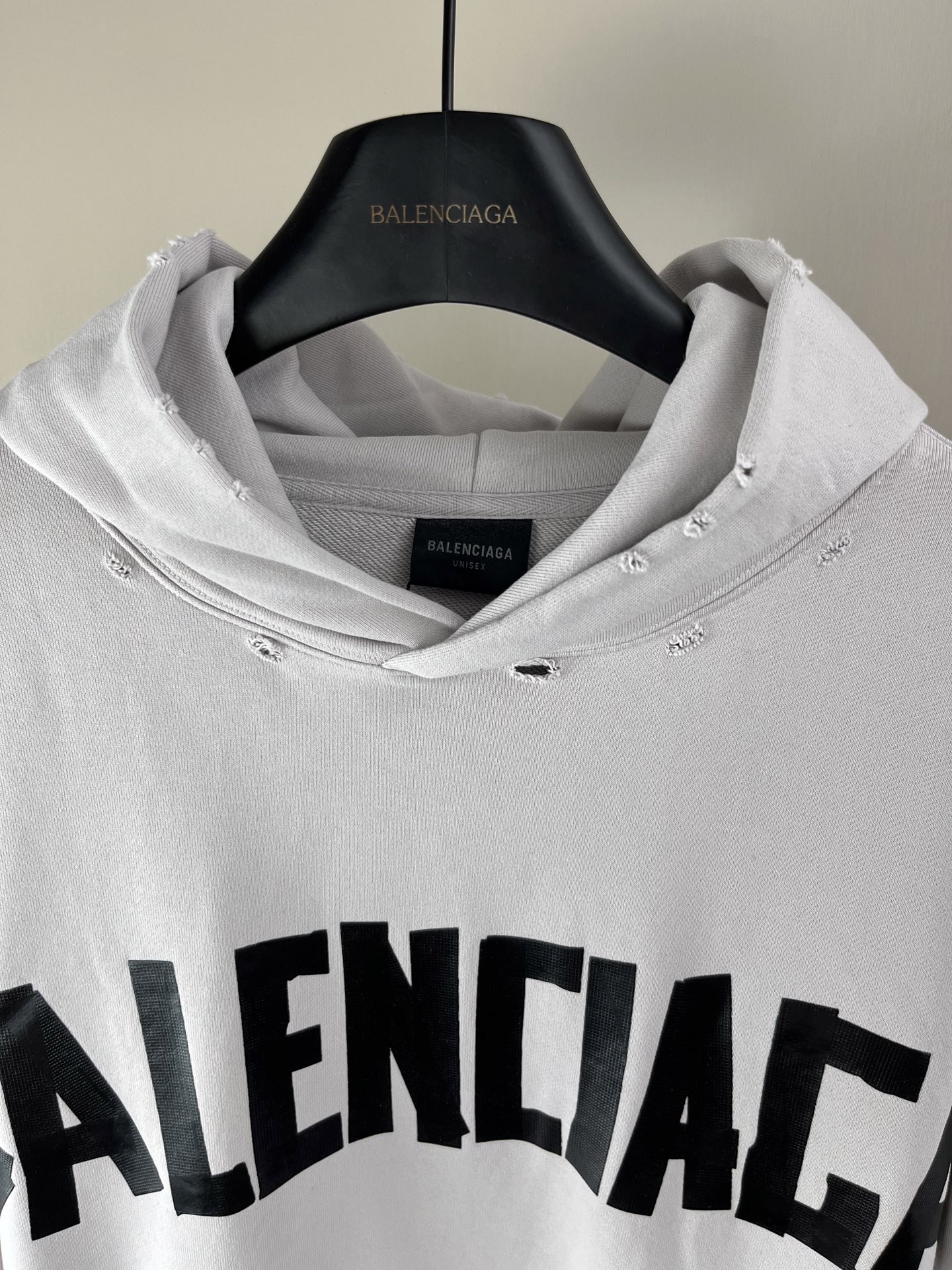 Tags: Balenciaga Hoodie, Designer Hoodie, Luxury Streetwear, Premium Cotton Hoodie, Silver Tape Logo Hoodie, Vintage Style Hoodie