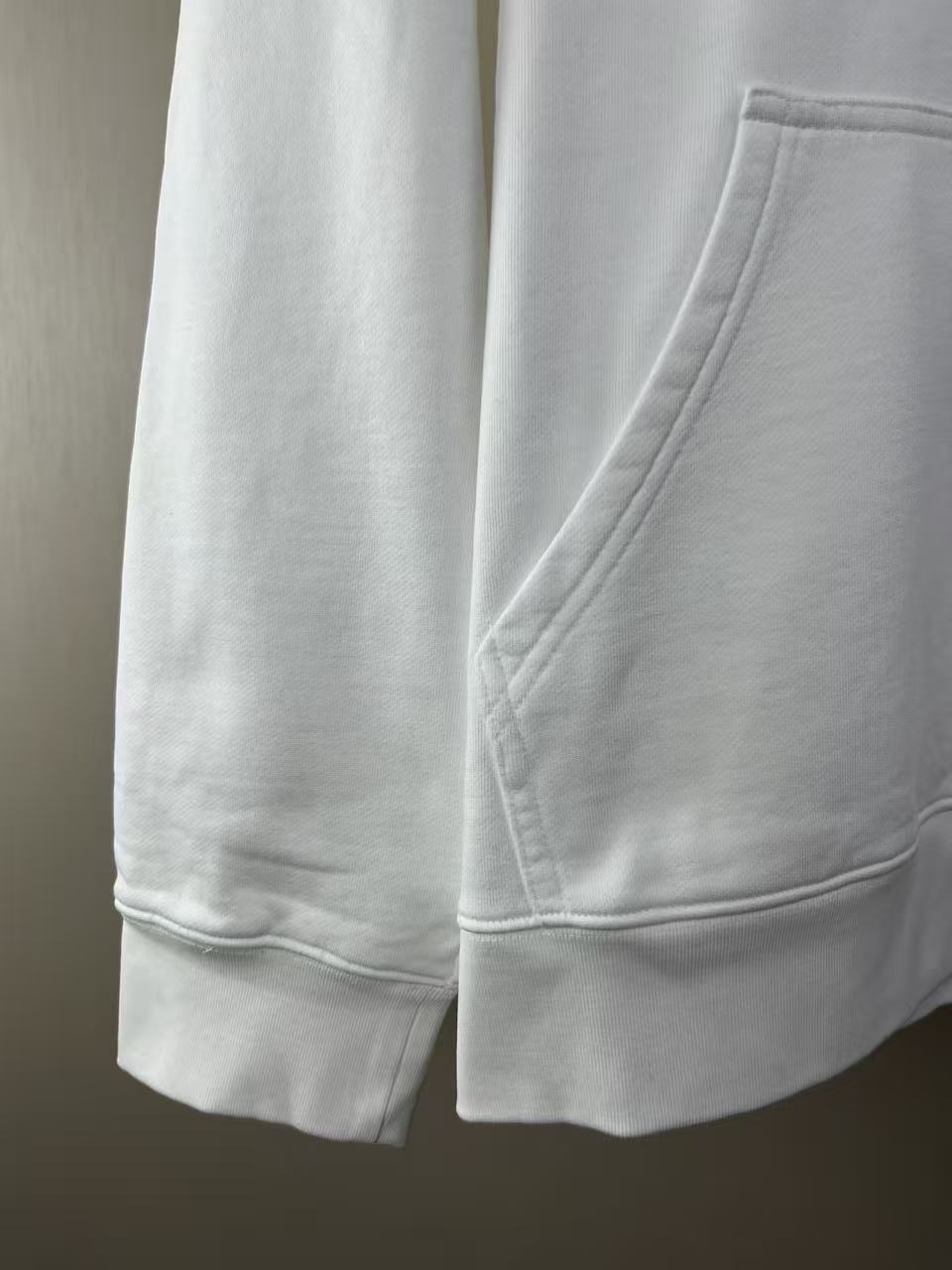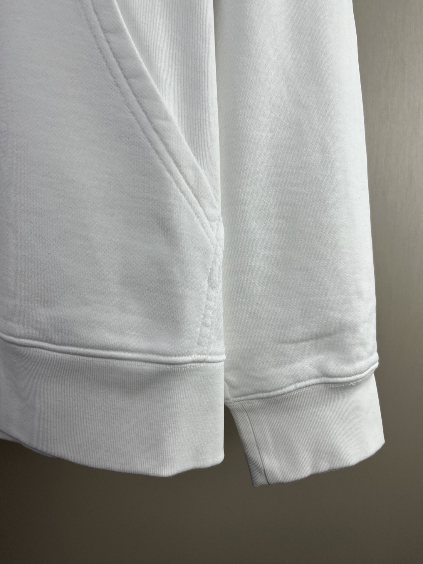Stay cozy in this Balenciaga white hoodie. Crafted from 480g cotton with intricate embroidery, it features an oversized fit for ultimate comfort. Unisex.