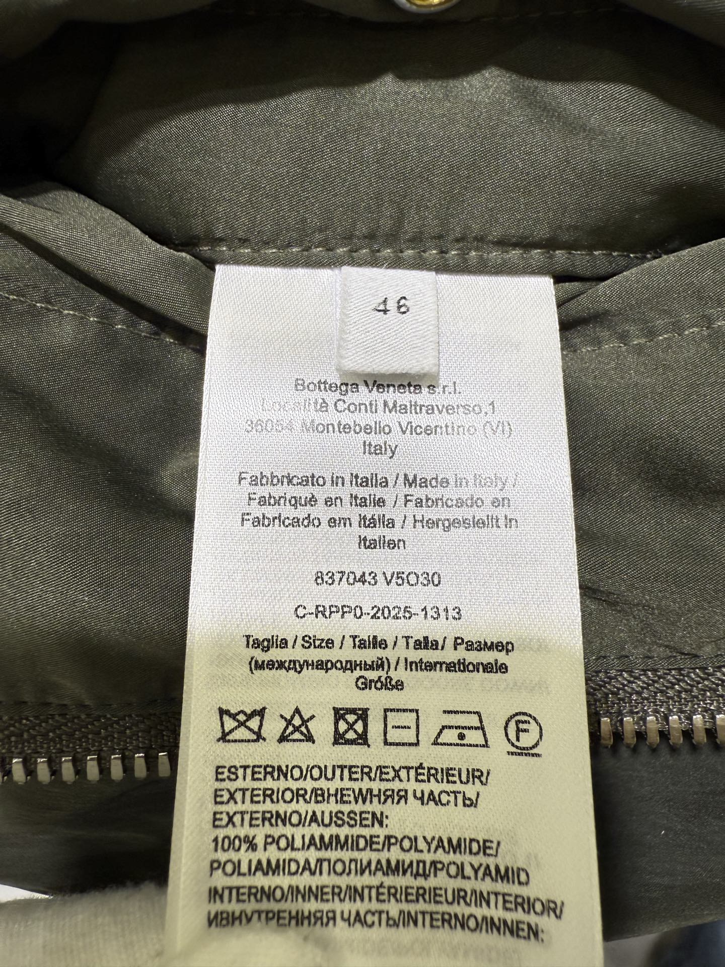 Introducing the Bottega Veneta Nylon Jacket, a perfect blend of high-tech material and iconic craftsmanship. This jacket features a detachable Intrecciato woven leather collar, offering versatility and a touch of luxury to your everyday style.