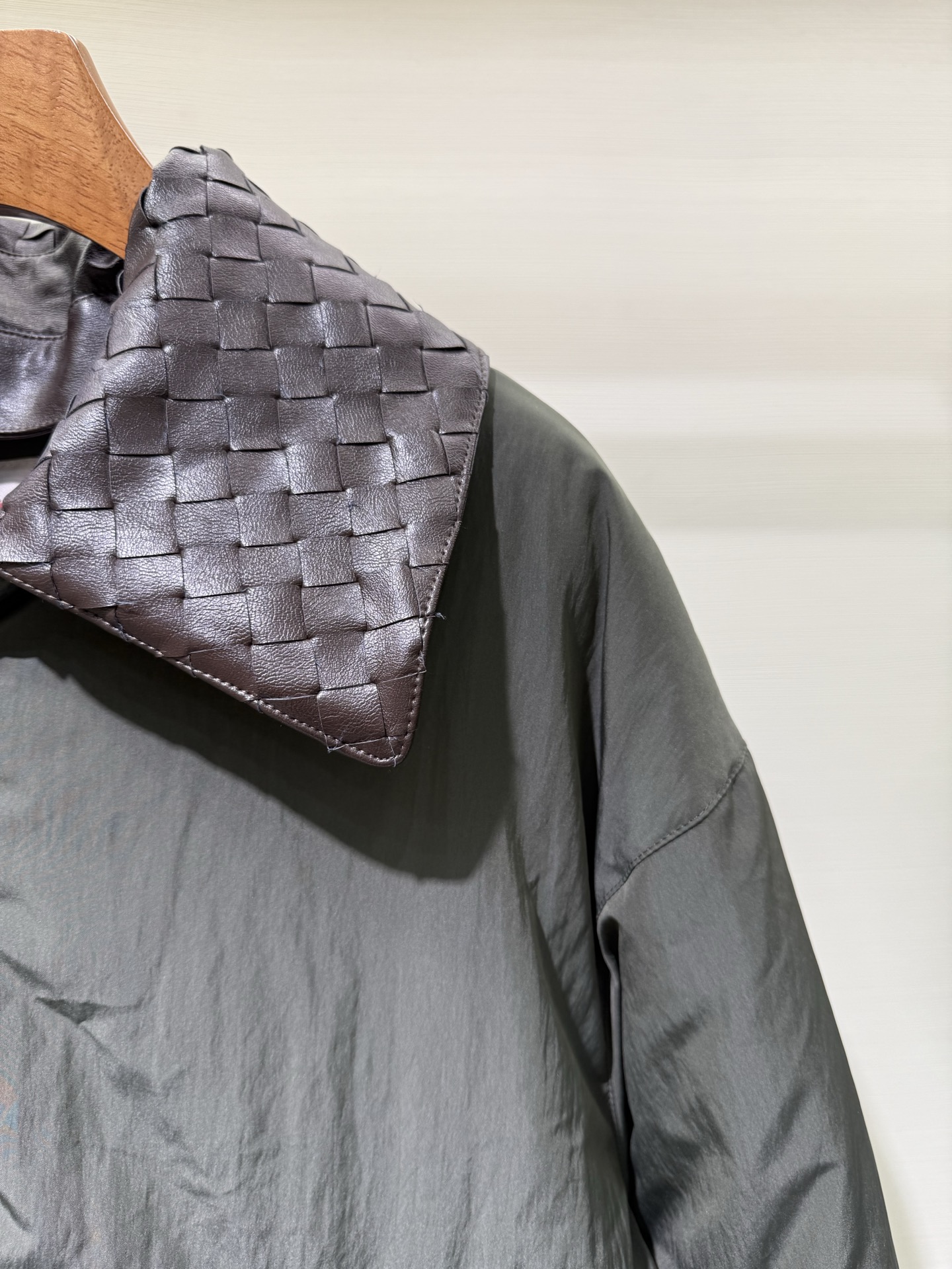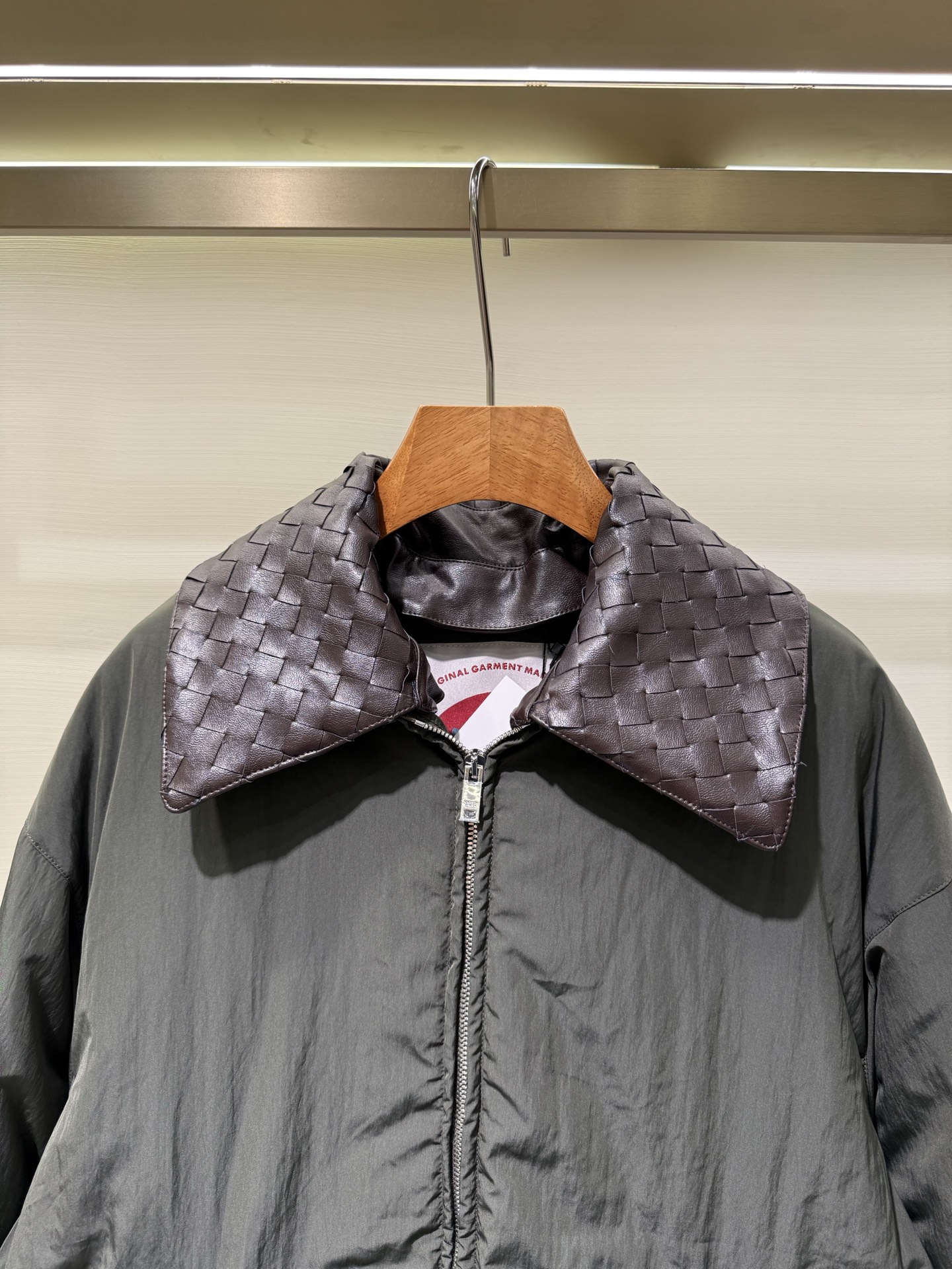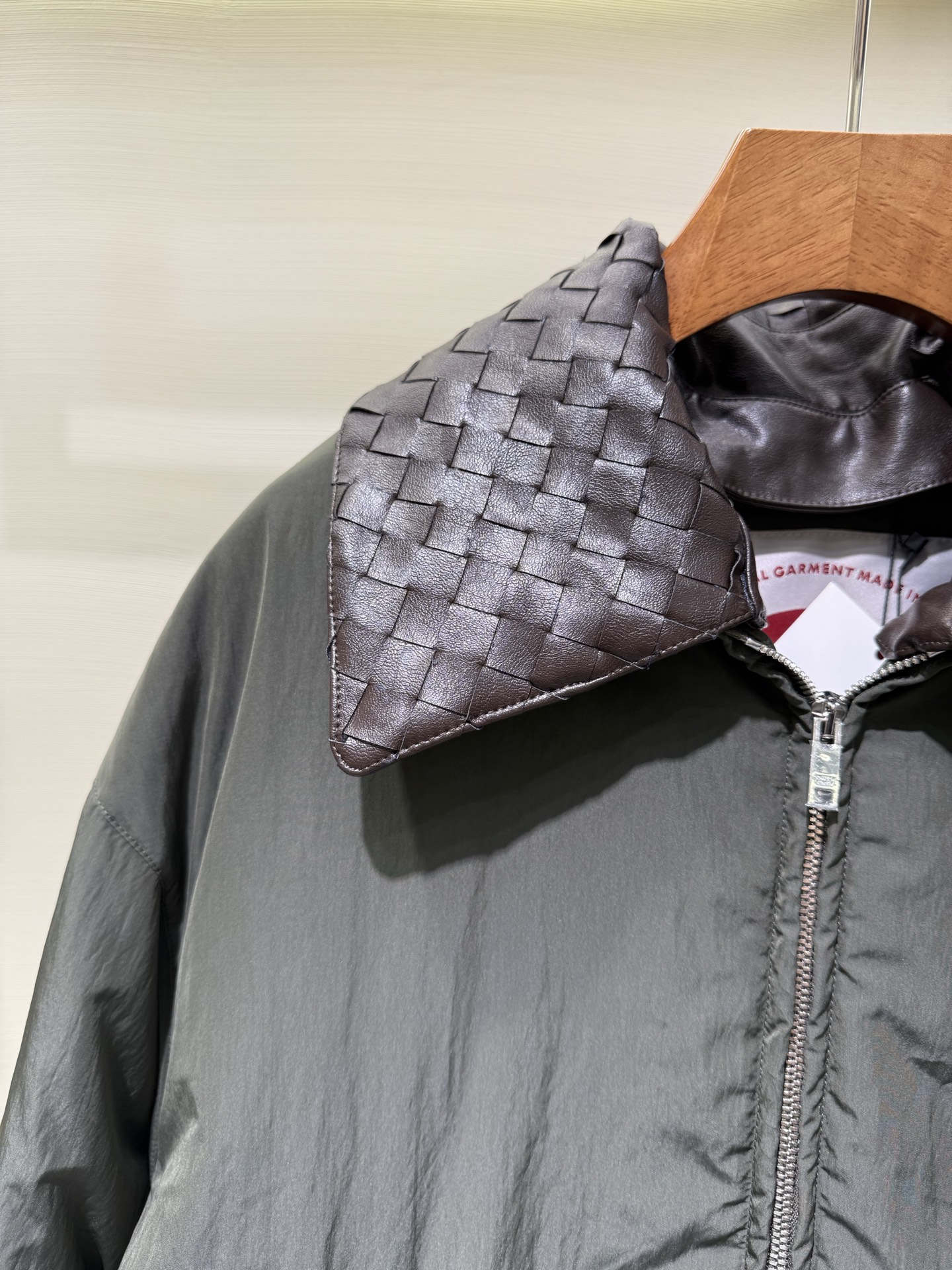 Tags: Bottega Veneta Jacket, Designer Nylon Jacket, Detachable Leather Collar Jacket, Intrecciato Leather Jacket, Luxury Outerwear, Nylon Goose Down Jacket