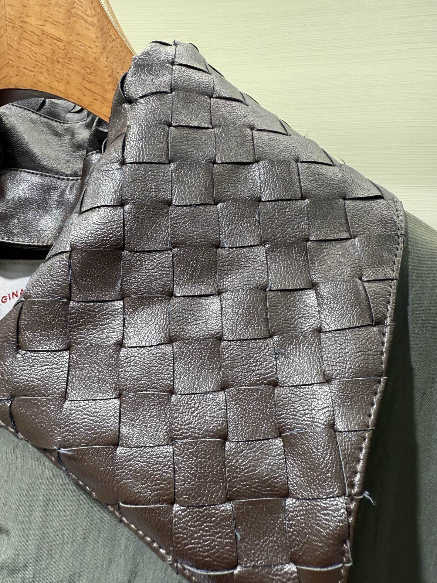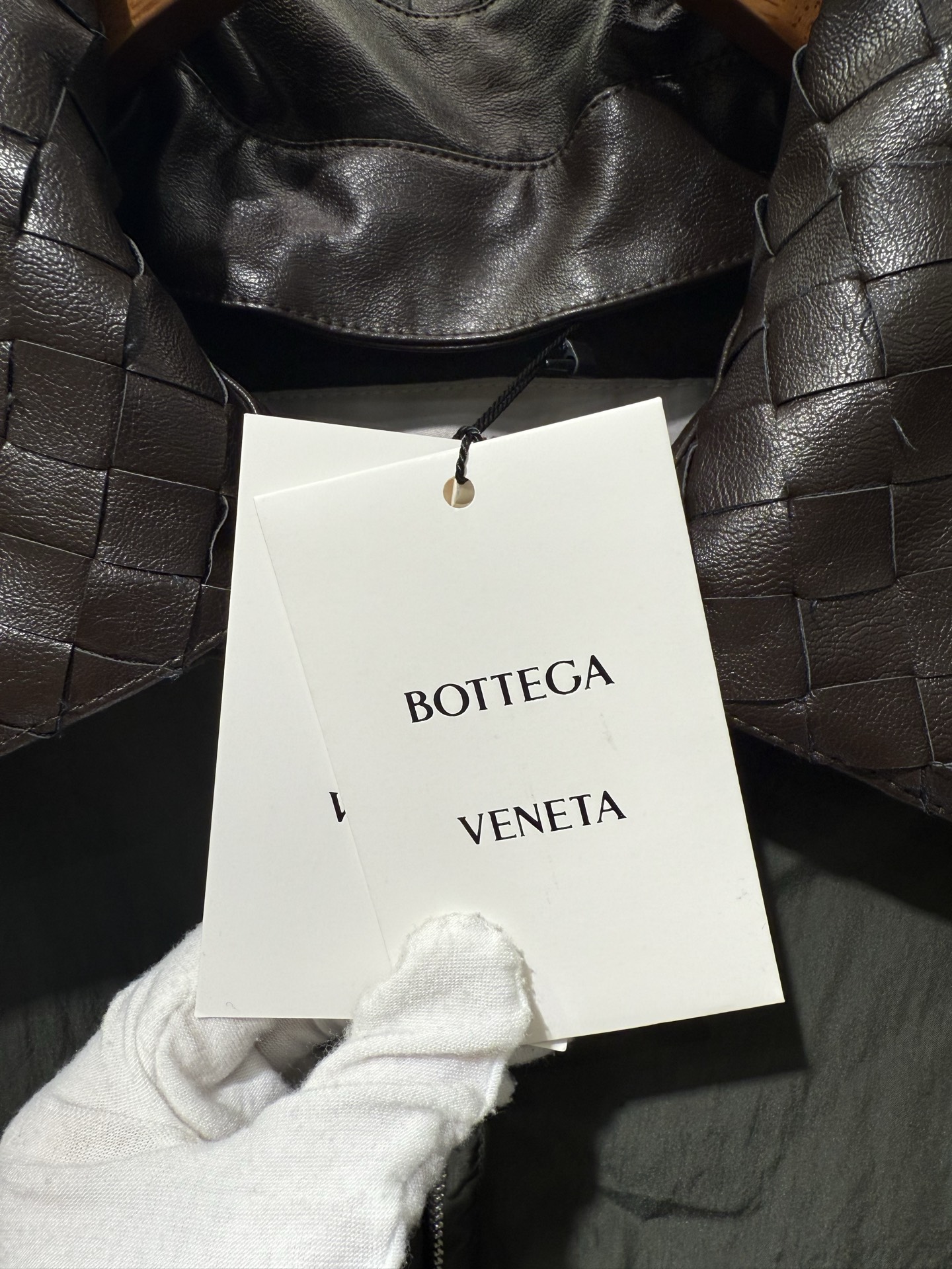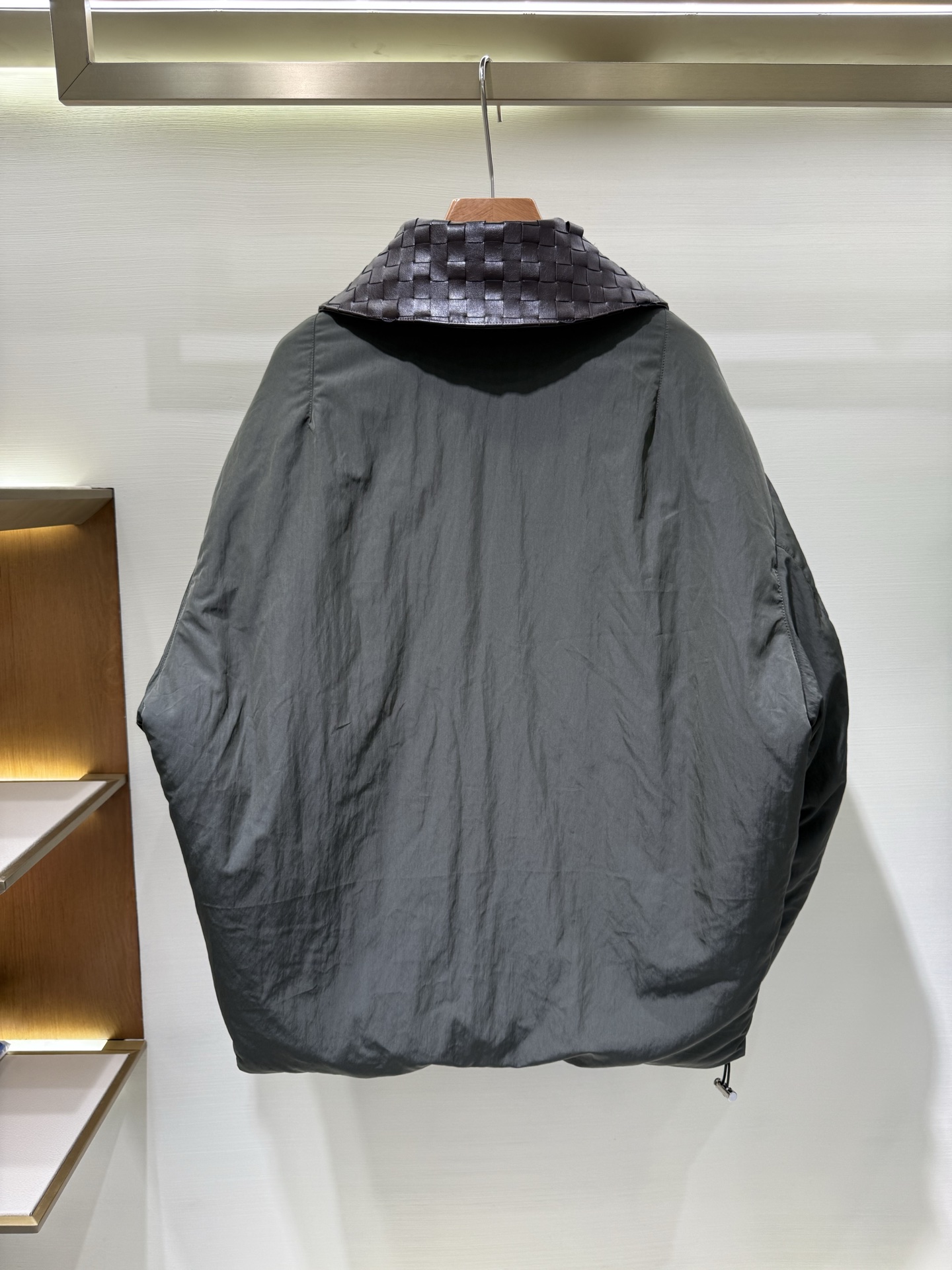 Tags: Bottega Veneta Jacket, Designer Nylon Jacket, Detachable Leather Collar Jacket, Intrecciato Leather Jacket, Luxury Outerwear, Nylon Goose Down Jacket