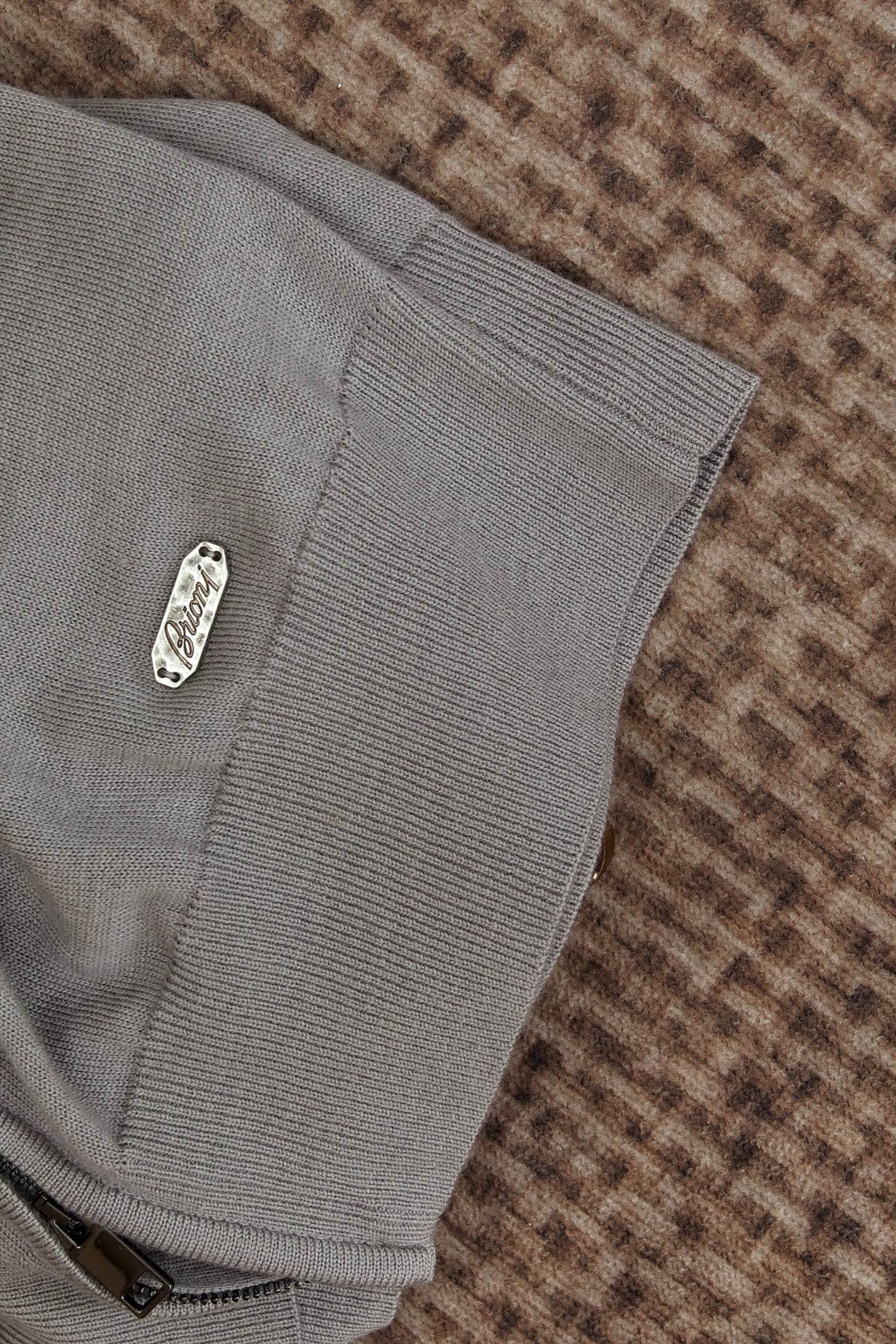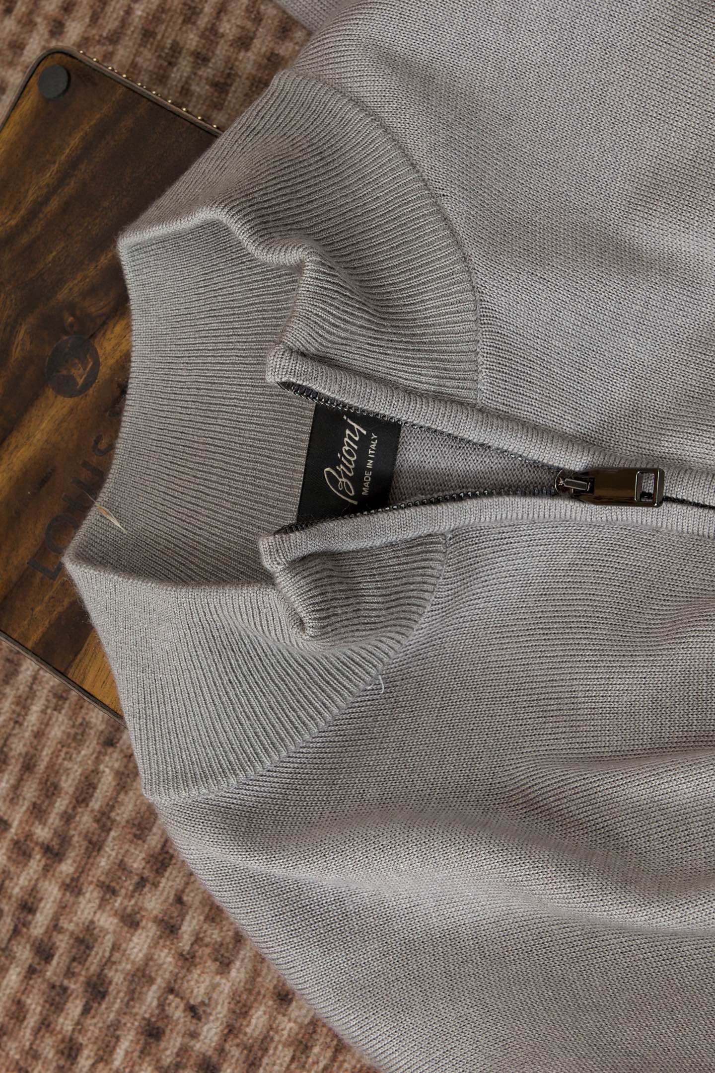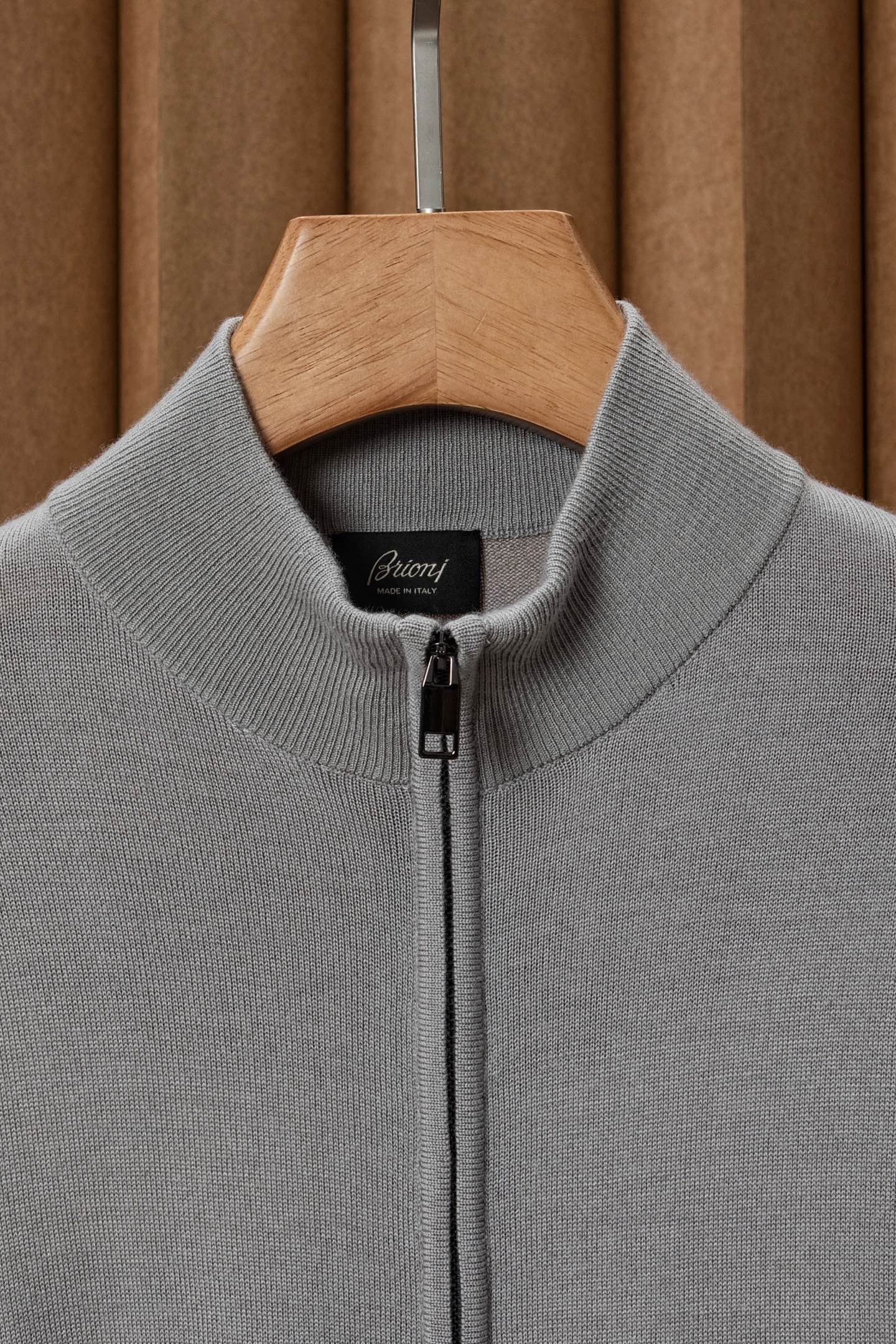 Tags: Brioni Wool Sweater, Full Zip Knitwear Jacket, Luxury Men's Knitwear, Men's Casual Cardigan, Men's Wool Cardigan Sweater, Slim Fit Stand Collar Sweater