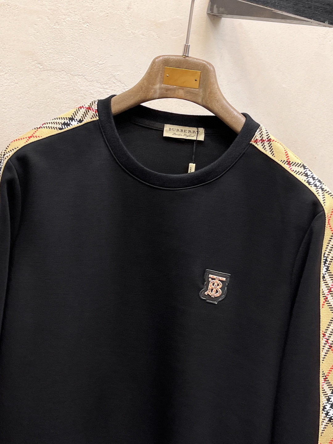 Burberry Black Cotton Blend Sweatshirt & Jogger Set with Vintage Check Trim