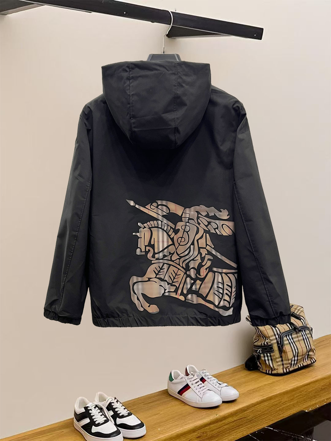 Burberry Men's 2025 Fall/Winter Black Hooded Jacket - Comfortable & Breathable