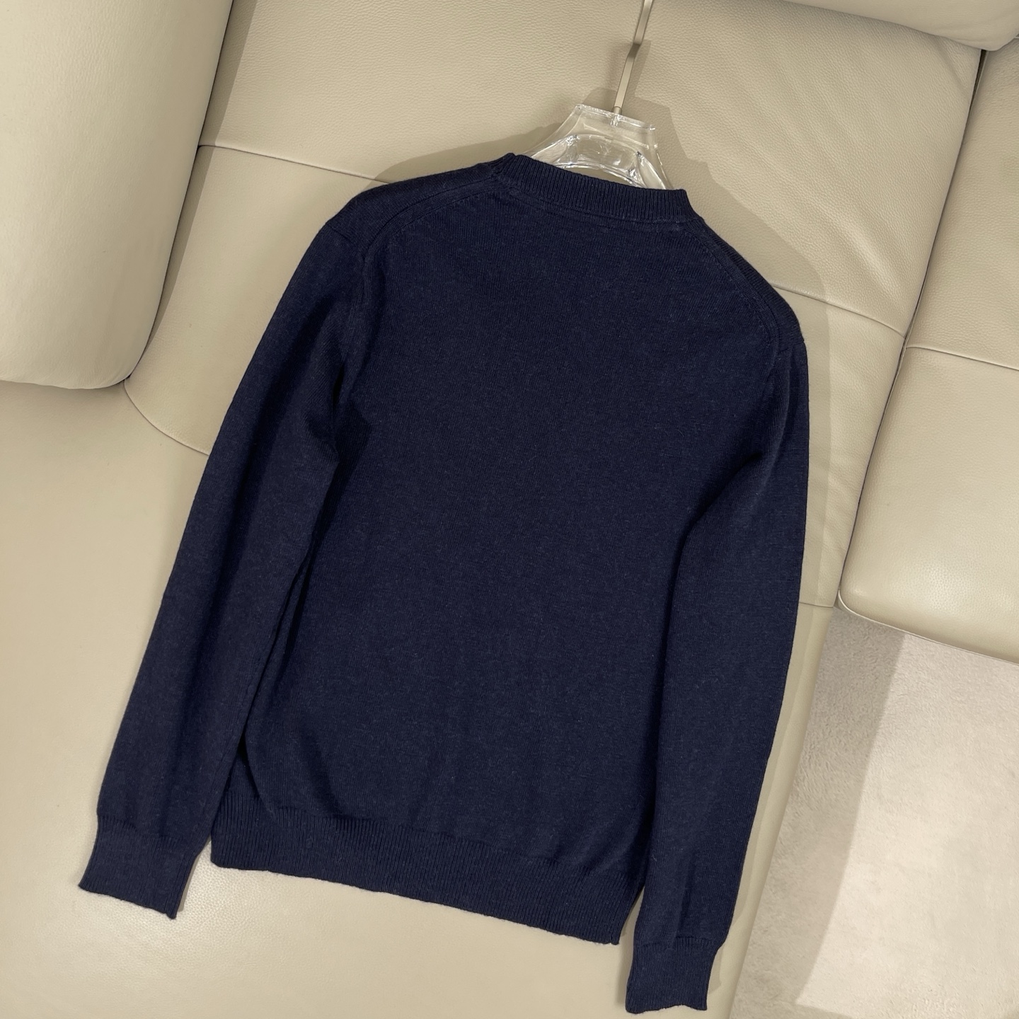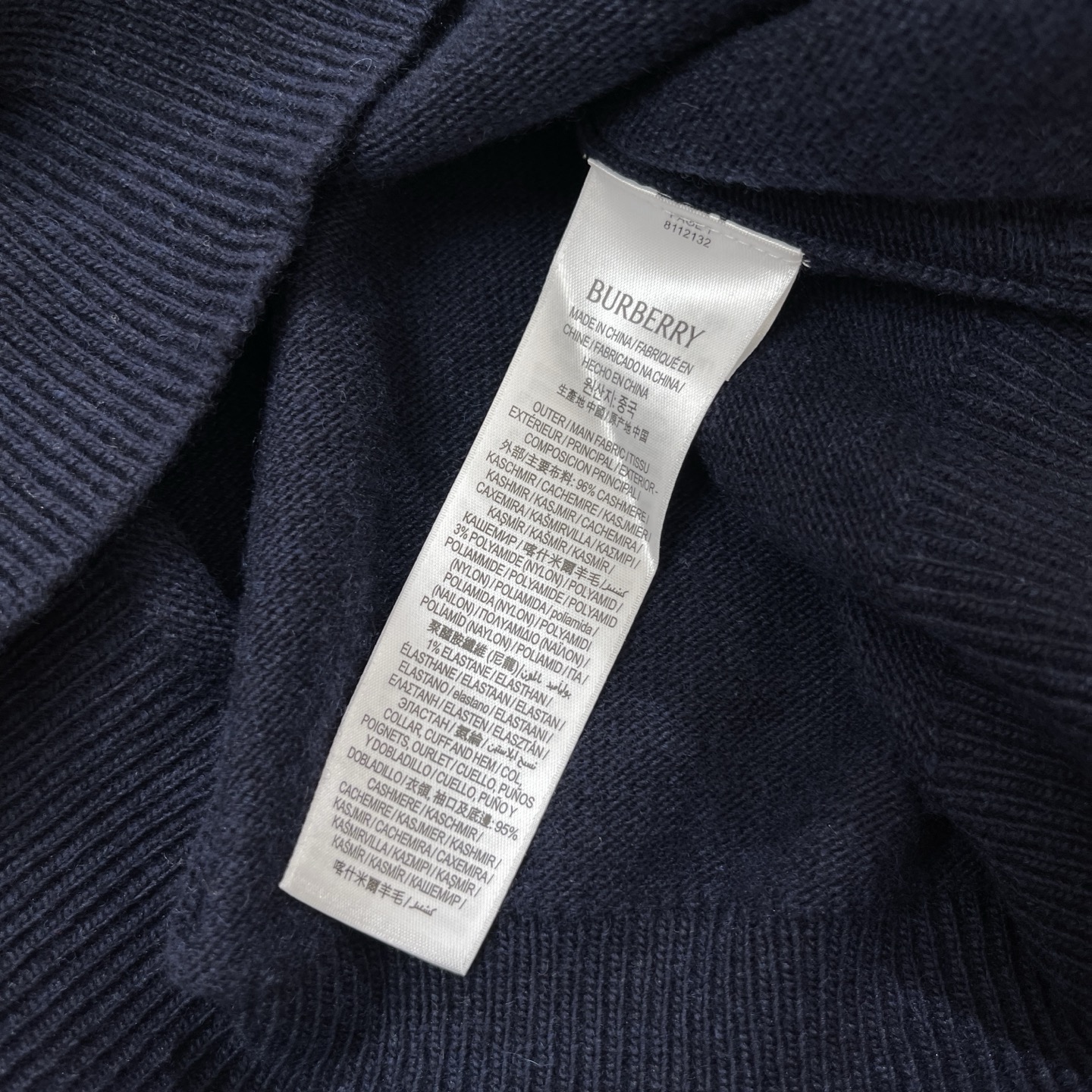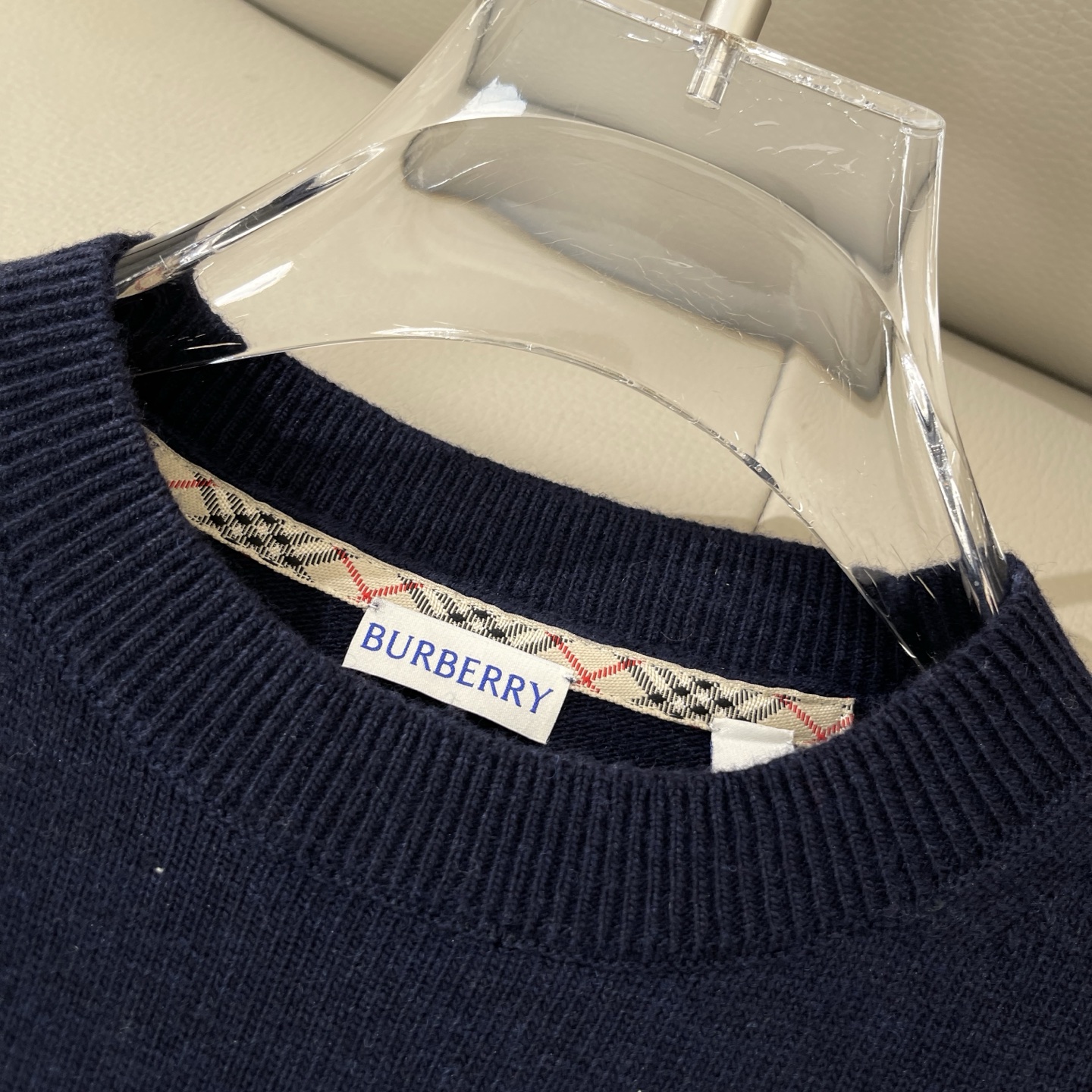 Tags: Burberry Wool Sweater, Designer Wool Sweater, Embroidered Logo Sweater, Luxury Men's Knitwear, Men's Crew Neck Sweater, Navy Wool Sweater