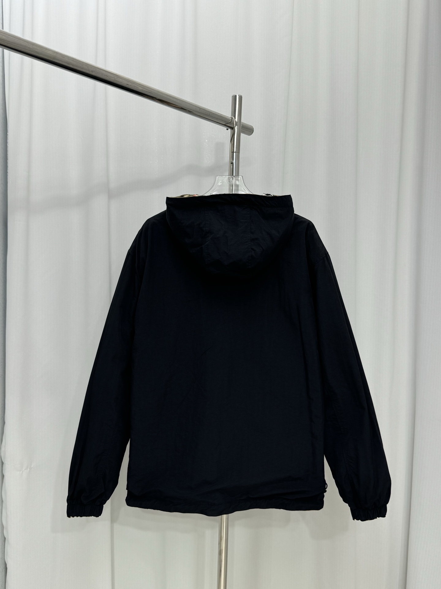 Tags: Burberry Hooded Jacket, Check Pattern Jacket, Designer Outerwear, Lightweight Hooded Coat, Reversible Nylon Jacket