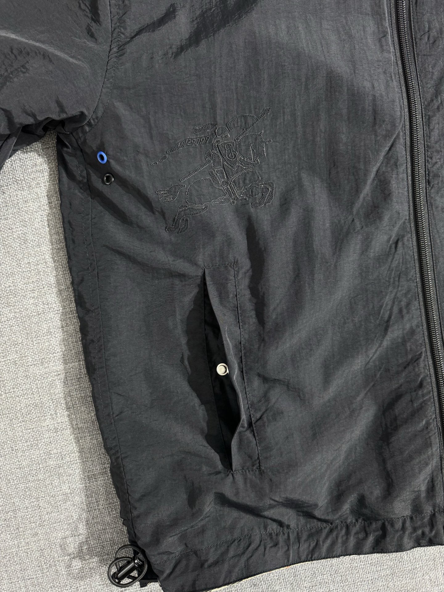 This stylish Burberry jacket offers versatility and iconic design. It's perfect for adding a touch of luxury to any casual outfit.