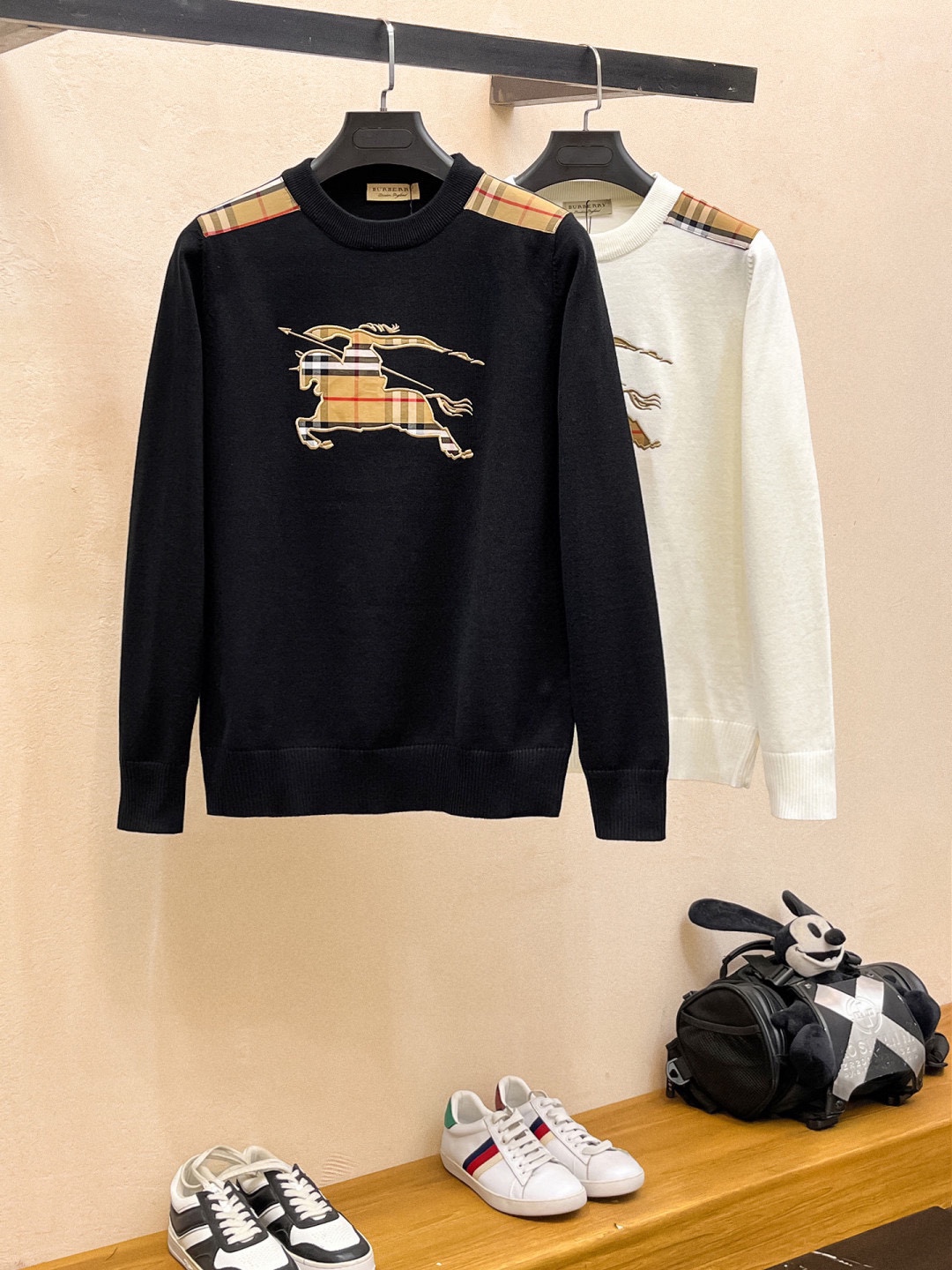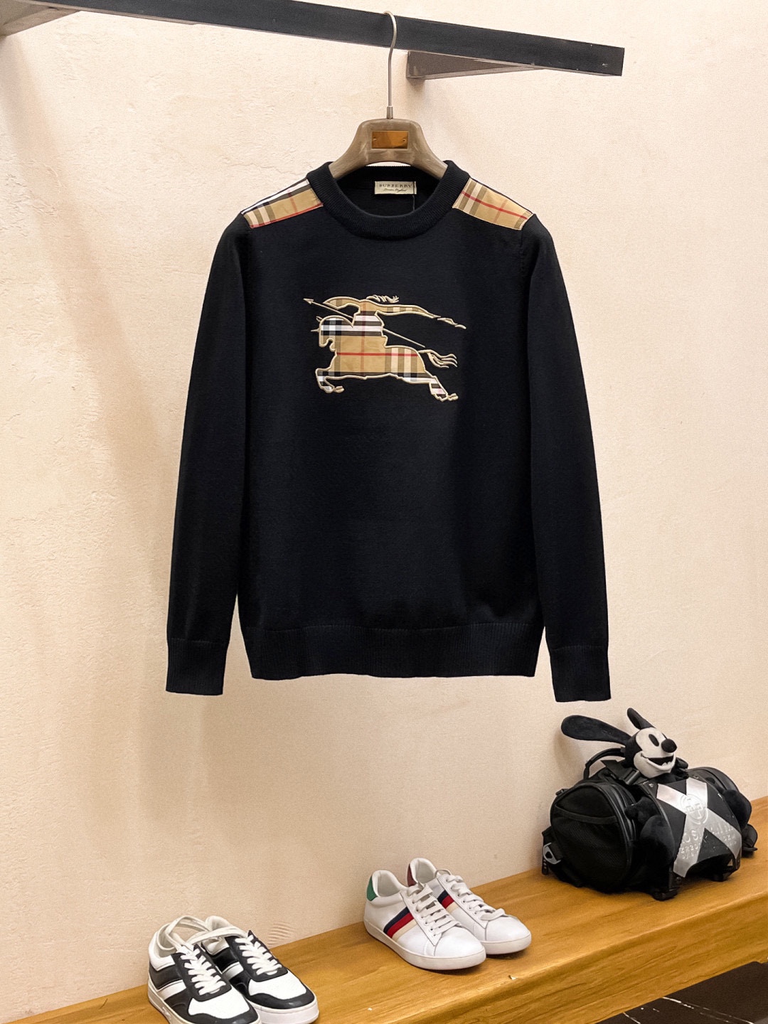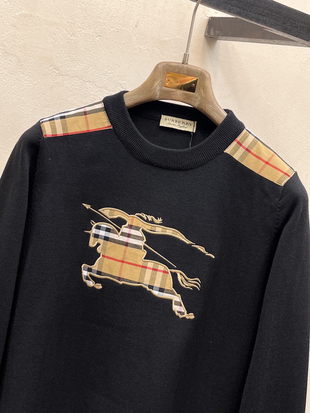 - Design: Features the iconic Burberry check pattern on the shoulders and logo.
