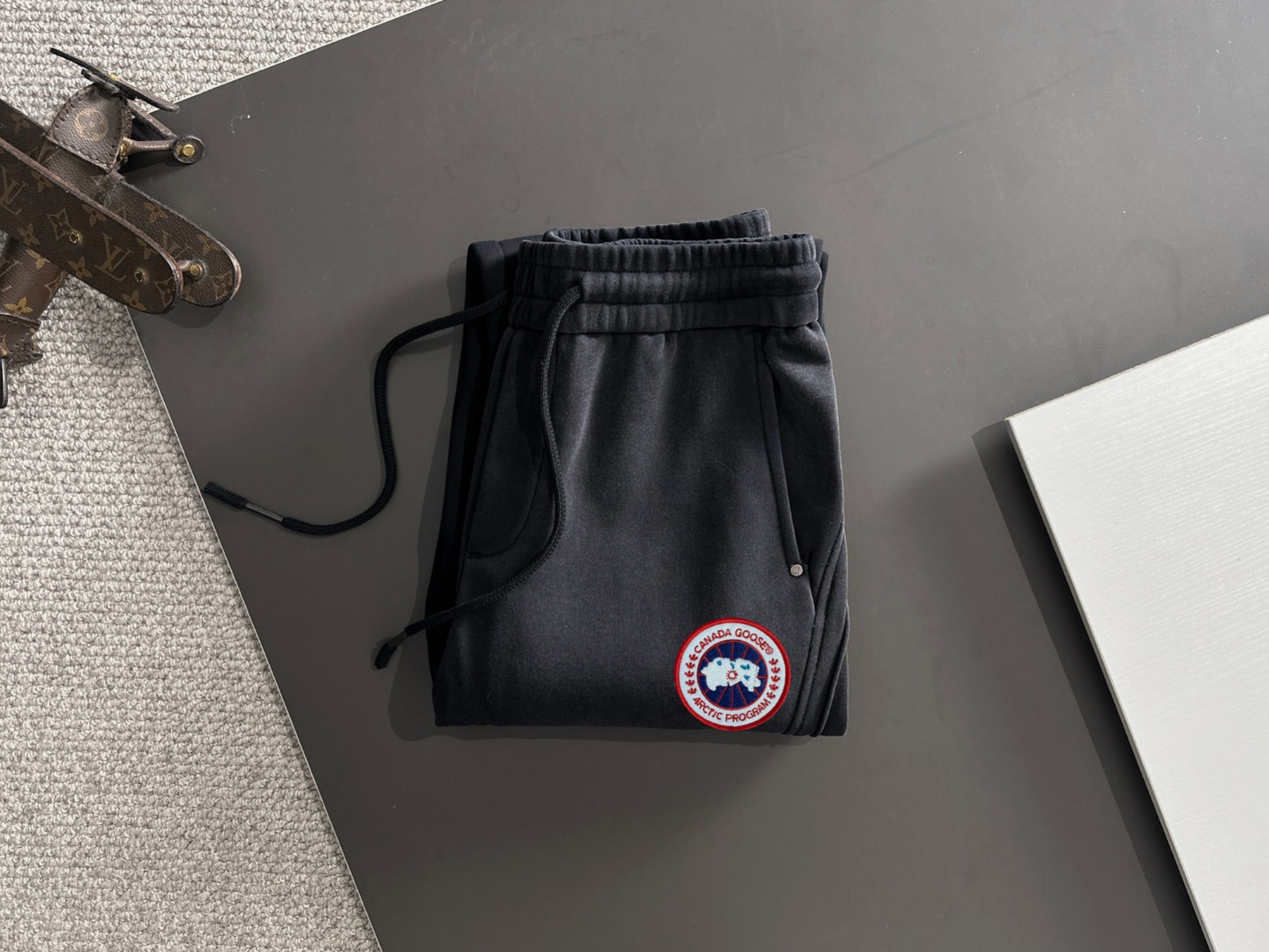 Tags: Canada Goose Sweatpants, Elastic Waistband Pants, Thickened Casual Trousers, Winter Fleece Sweatpants