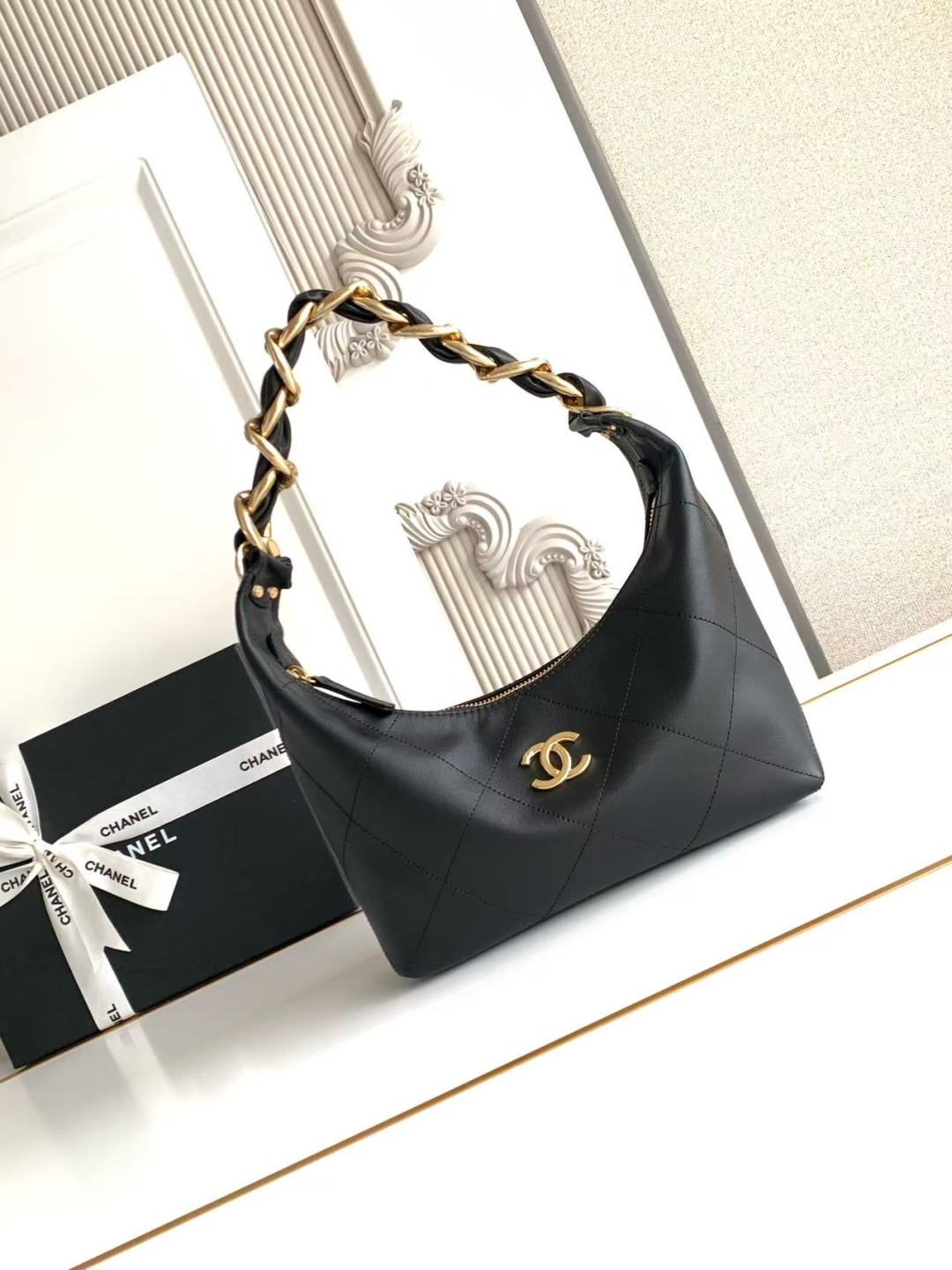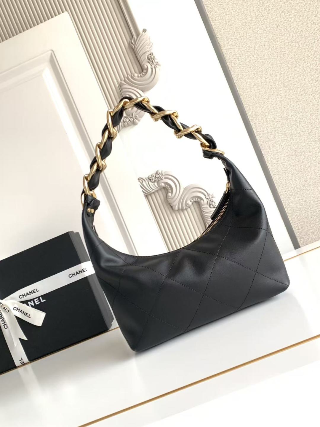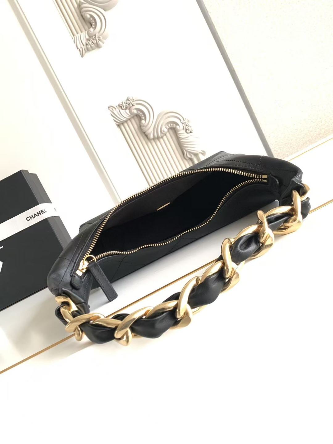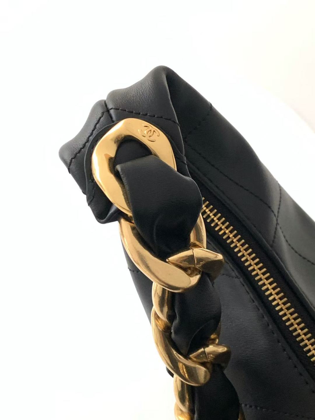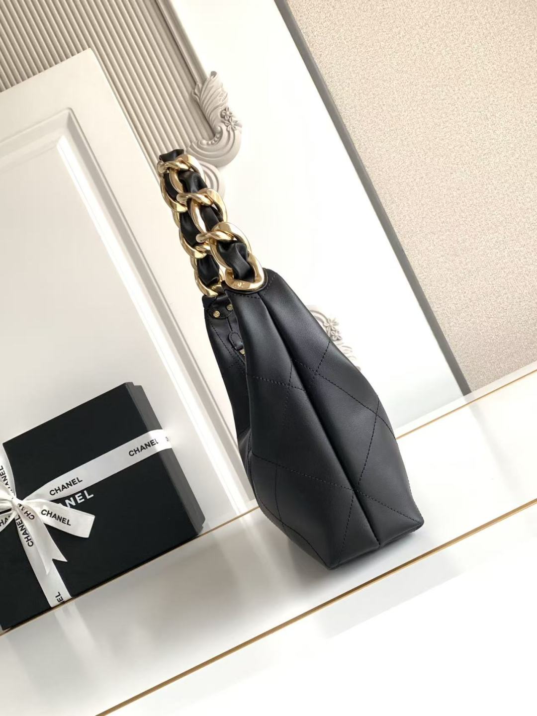 Tags: Chanel Hobo Bag, Designer Shoulder Bag, Elegant Leather Bag, Gold Chain Bag, Luxury Underarm Bag