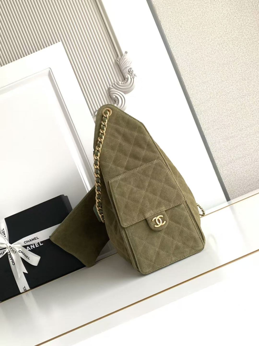 Tags: Chanel Hobo Bag, Drawstring Hobo Bag, Gold Chain Bag, Olive Green Bag, Quilted Hobo Bag, Suede Shoulder Bag