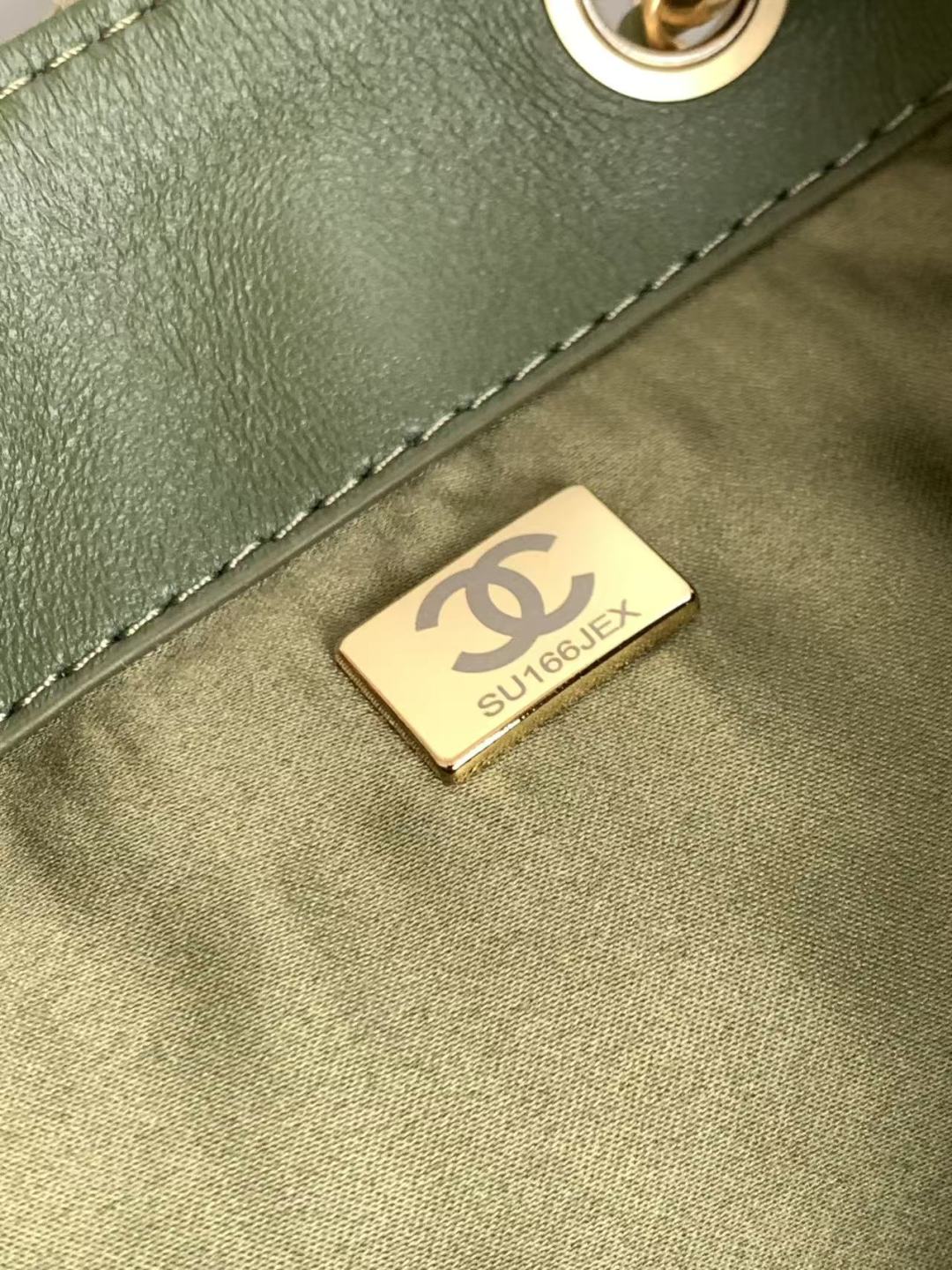 Chanel 25 Hobo Bag Olive Green Suede Gold Hardware, Shoulder Bag 40x30x15cm