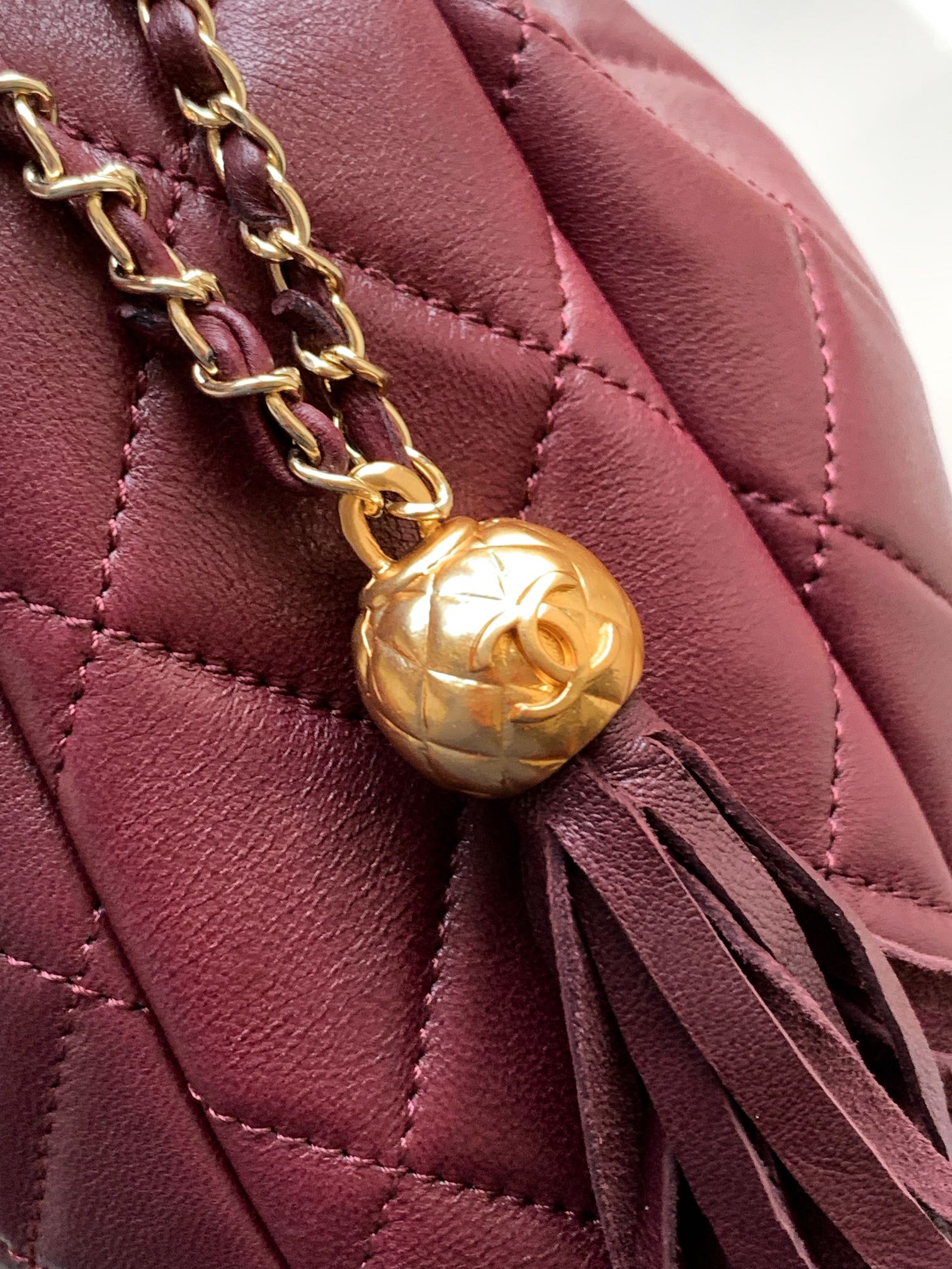 Chanel 25A Bucket Bag with Double Pendant - Wine Red Lambskin Leather