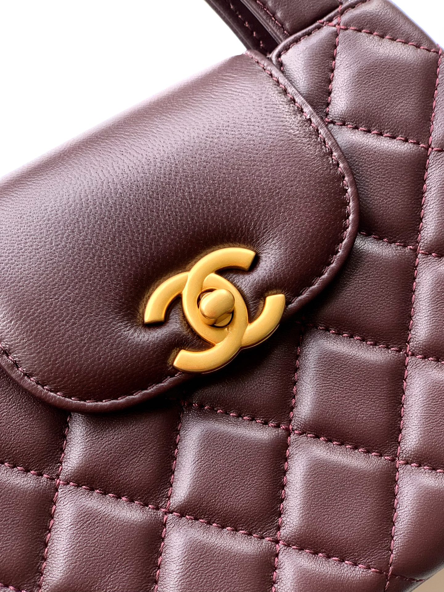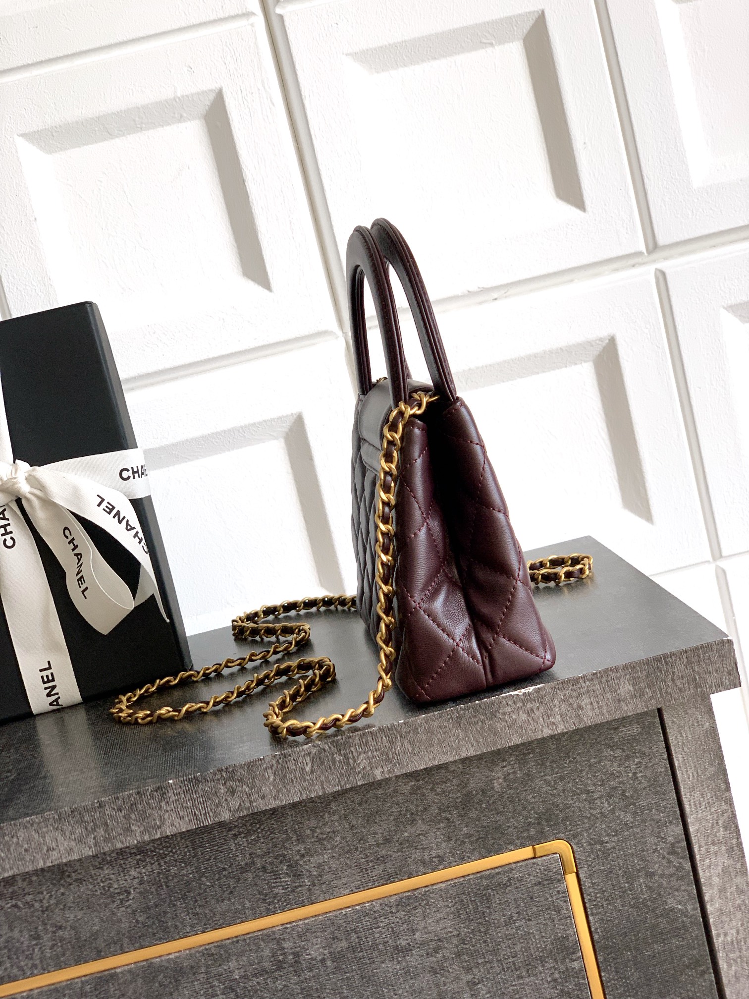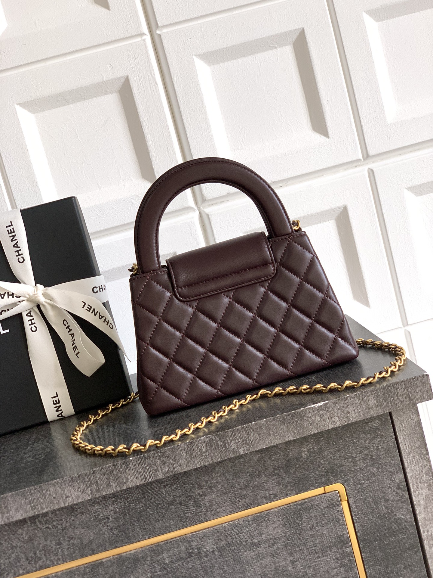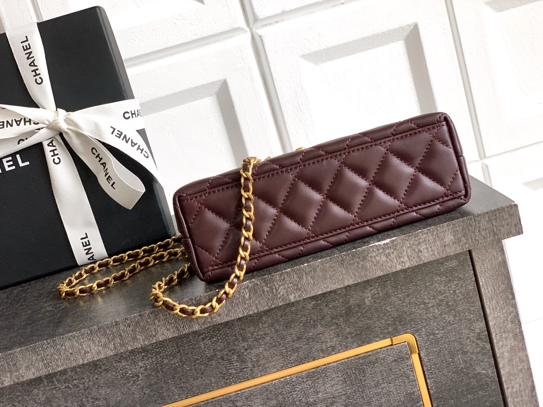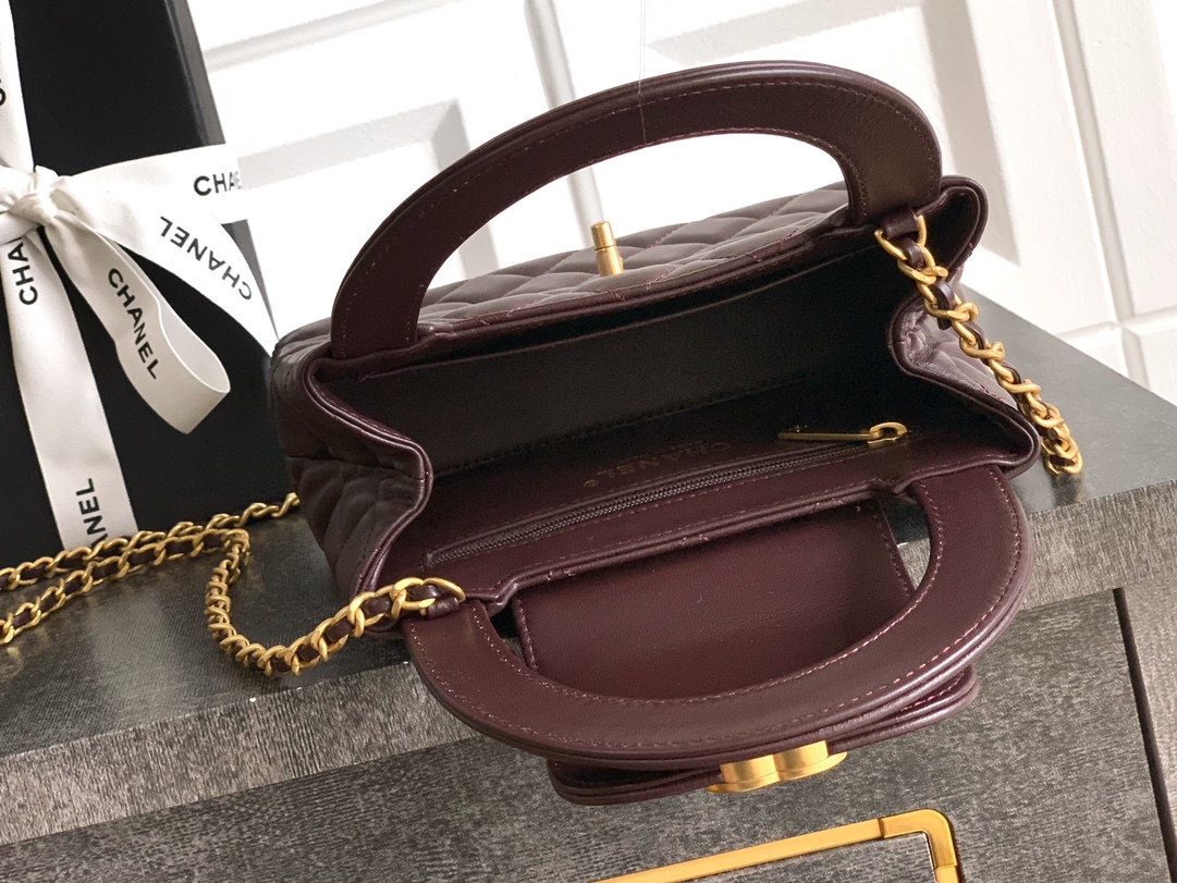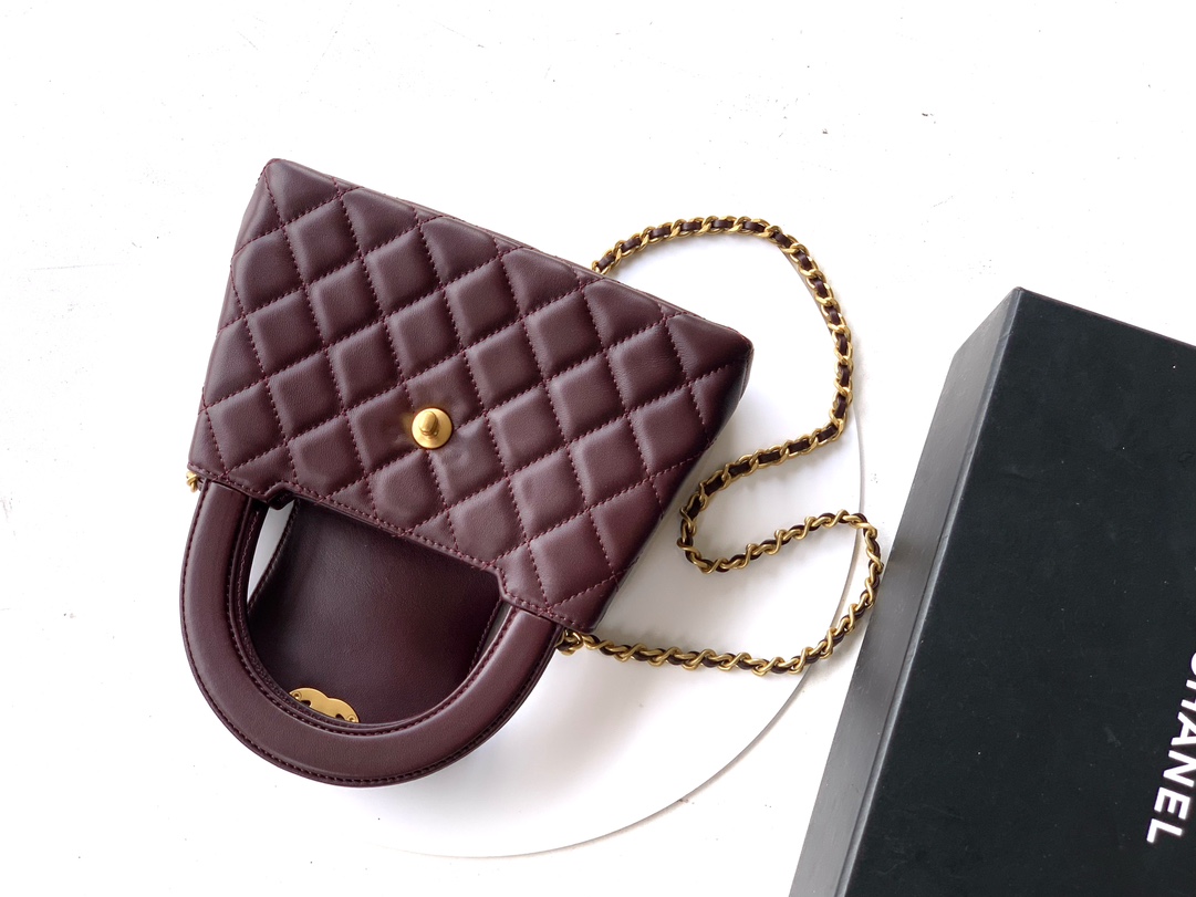 Tags: Chain Handle Bag, Chanel Kelly Bag, Designer Top Handle Bag, Small Quilted Bag, Wine Red Lambskin Bag