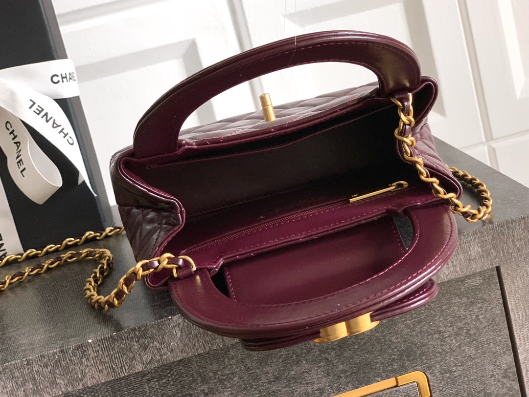 The Chanel 25A Kelly bag is a timeless piece that combines vintage charm with modern functionality. This deep brown wine red handbag is a must-have for fashion enthusiasts.