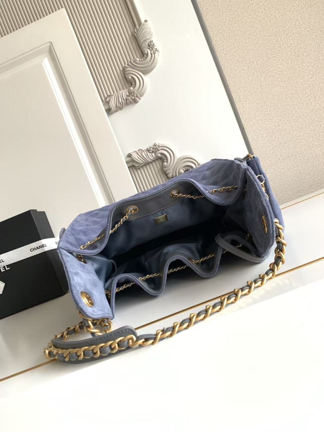 Chanel 25c Suede Hobo Bag with Gold Chain and Coin Accents - Blue