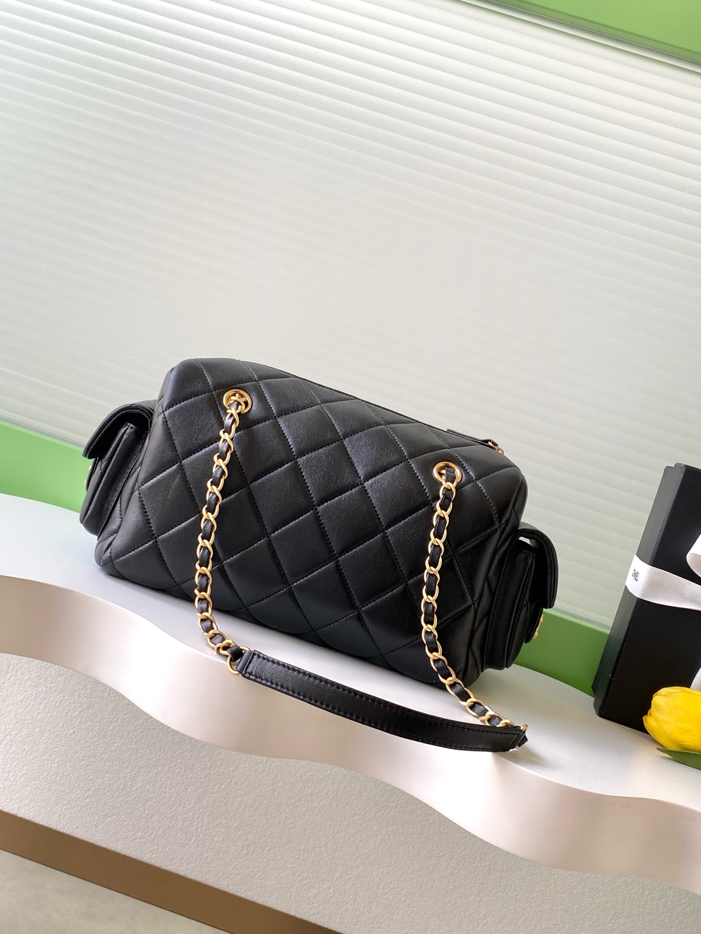 Tags: Black Lambskin Bag, chanel bowling bag, Designer Shoulder Bag, Gold Hardware Bag, Luxury Handbag, Quilted Leather Bag