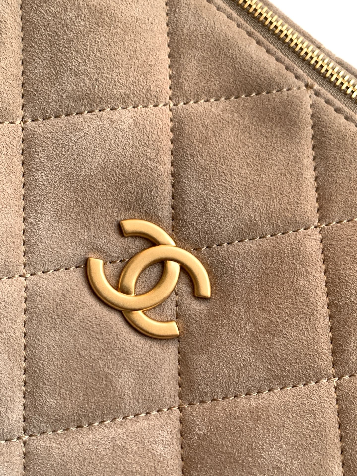 I absolutely love this Chanel bowling bag! The suede is so soft and the brushed gold hardware is stunning. It's the perfect size for everyday use and I get so many compliments on it.
