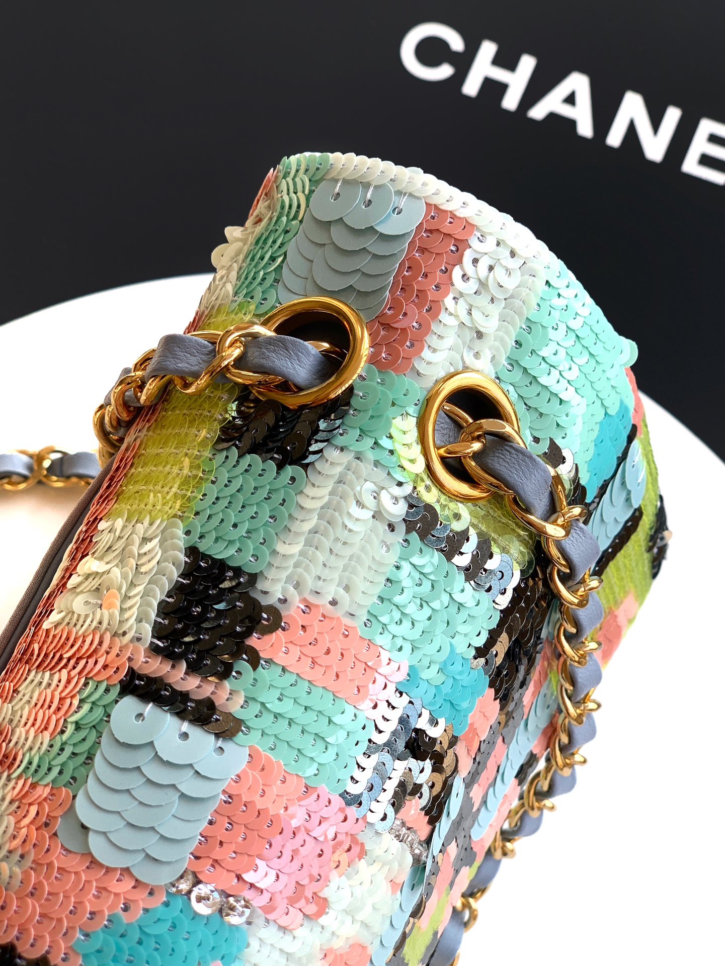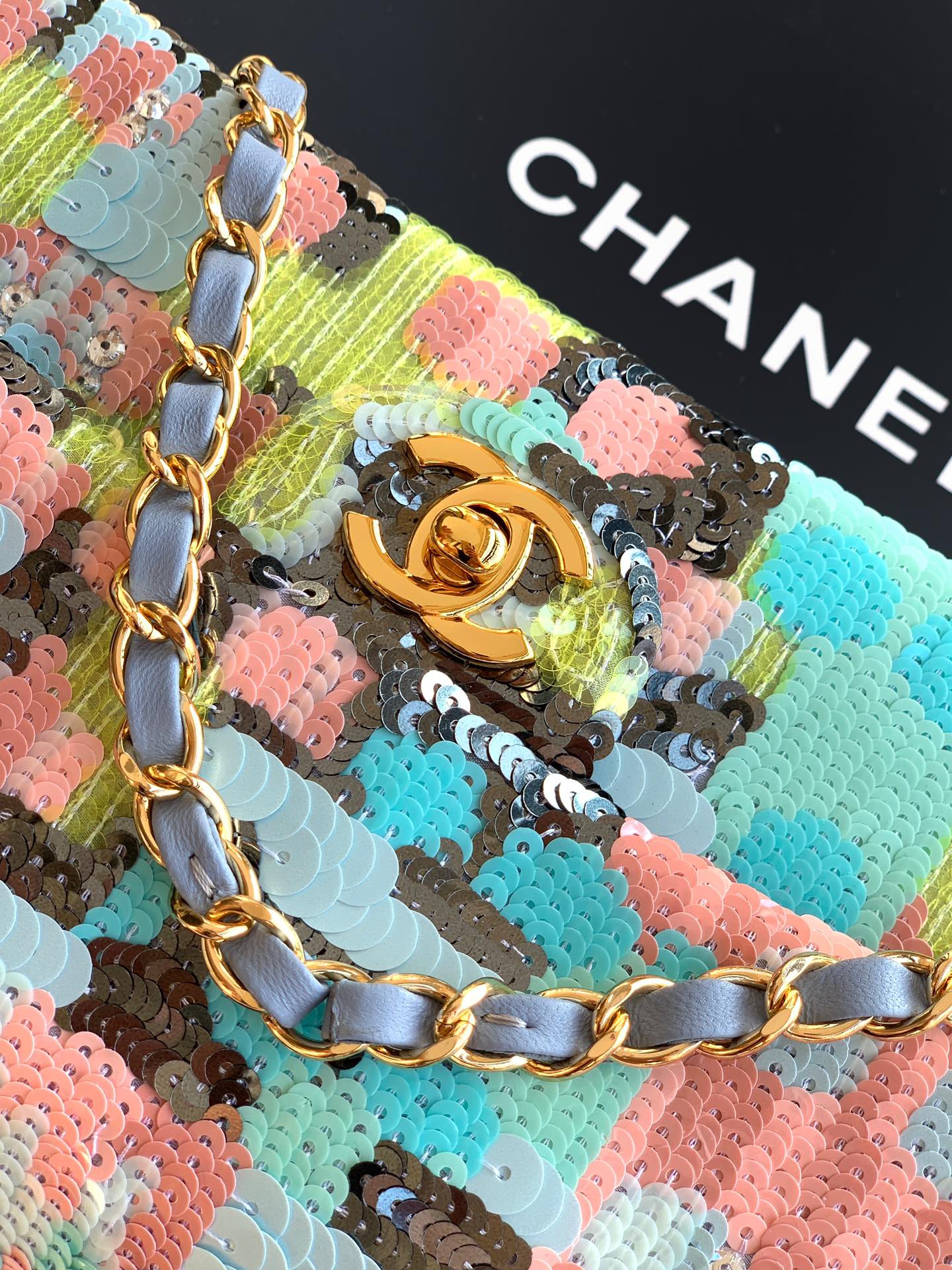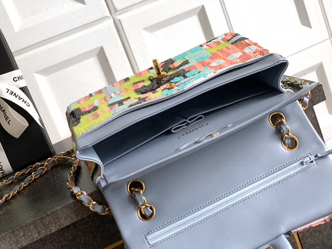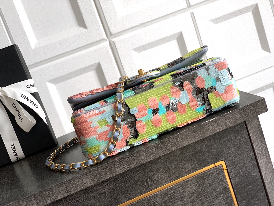 Chanel 25p Sequin Flap Bag, Luxury Handmade Embroidery, Evening Clutch