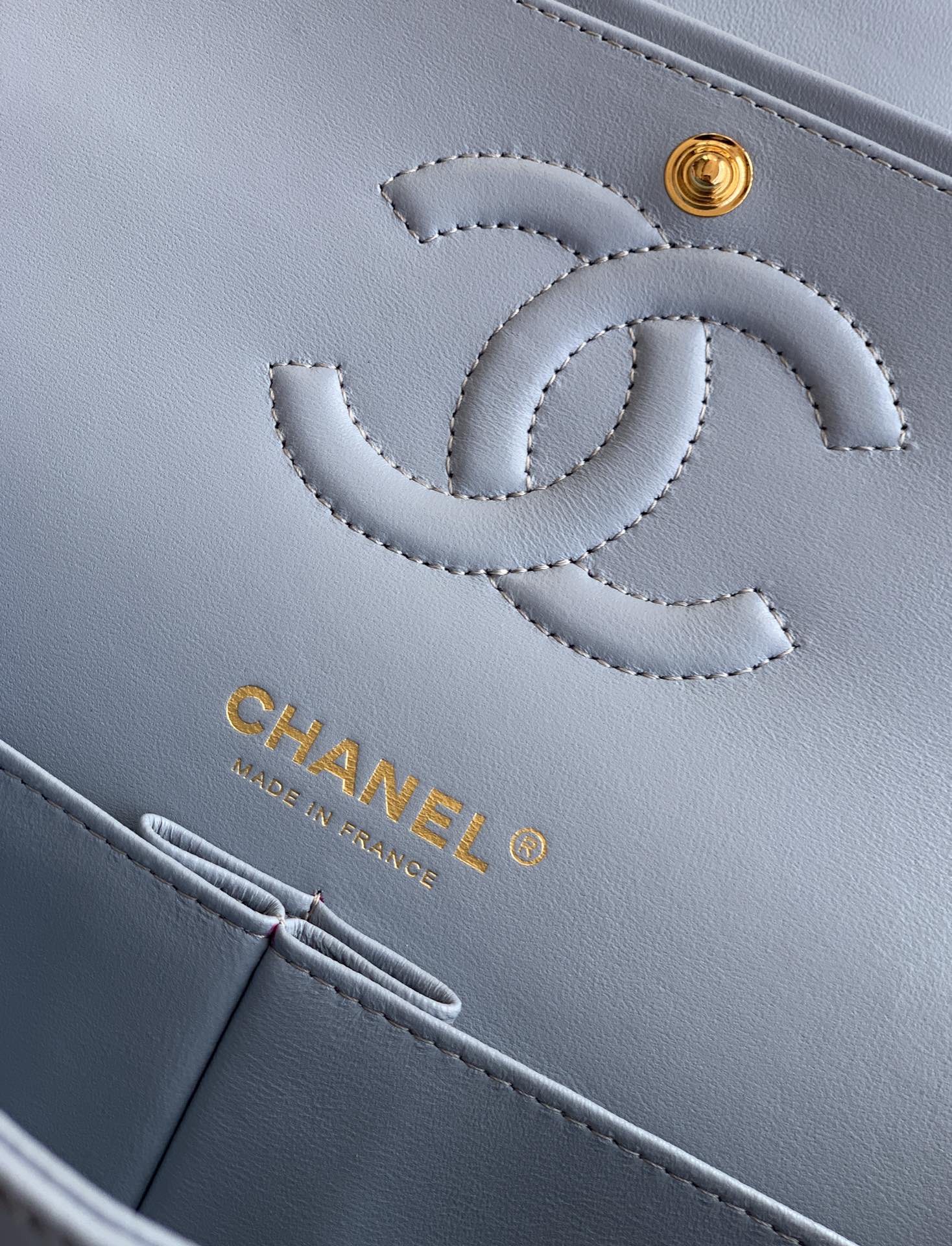 - Classic flap design with signature Chanel elements.