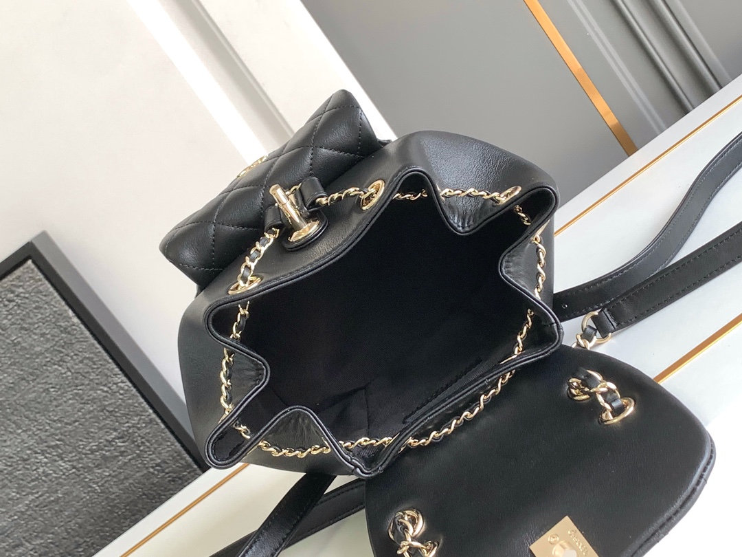 Tags: Black Leather Backpack, Chanel Backpack, Designer Backpack, Luxury Backpack, Quilted Leather Backpack