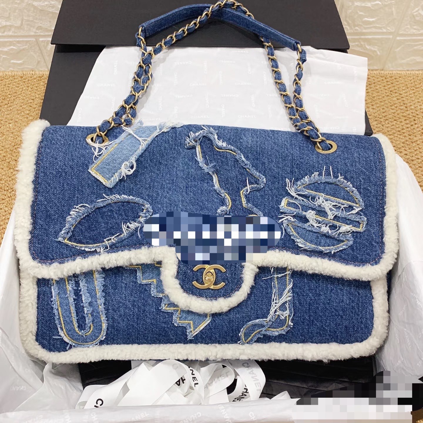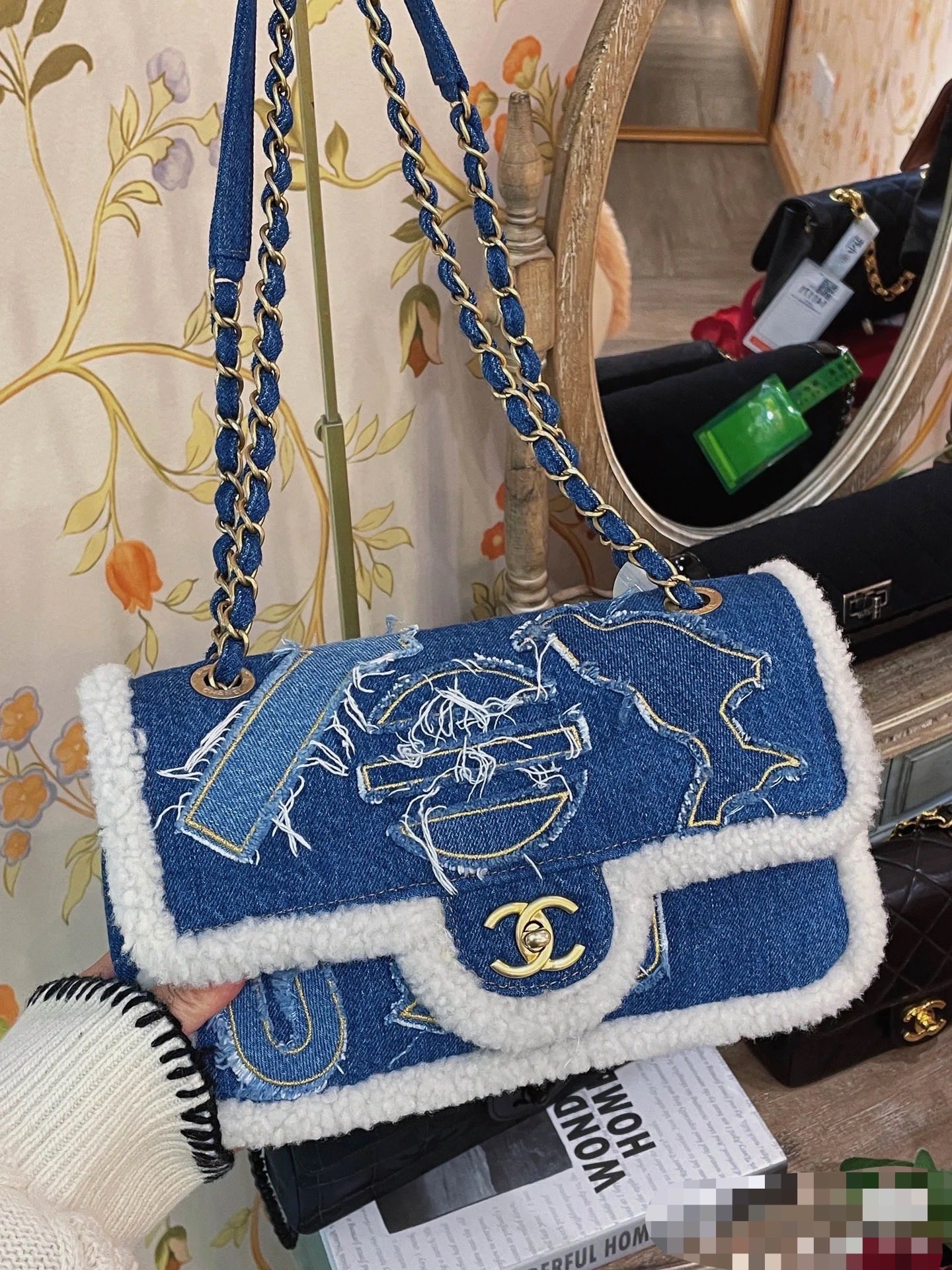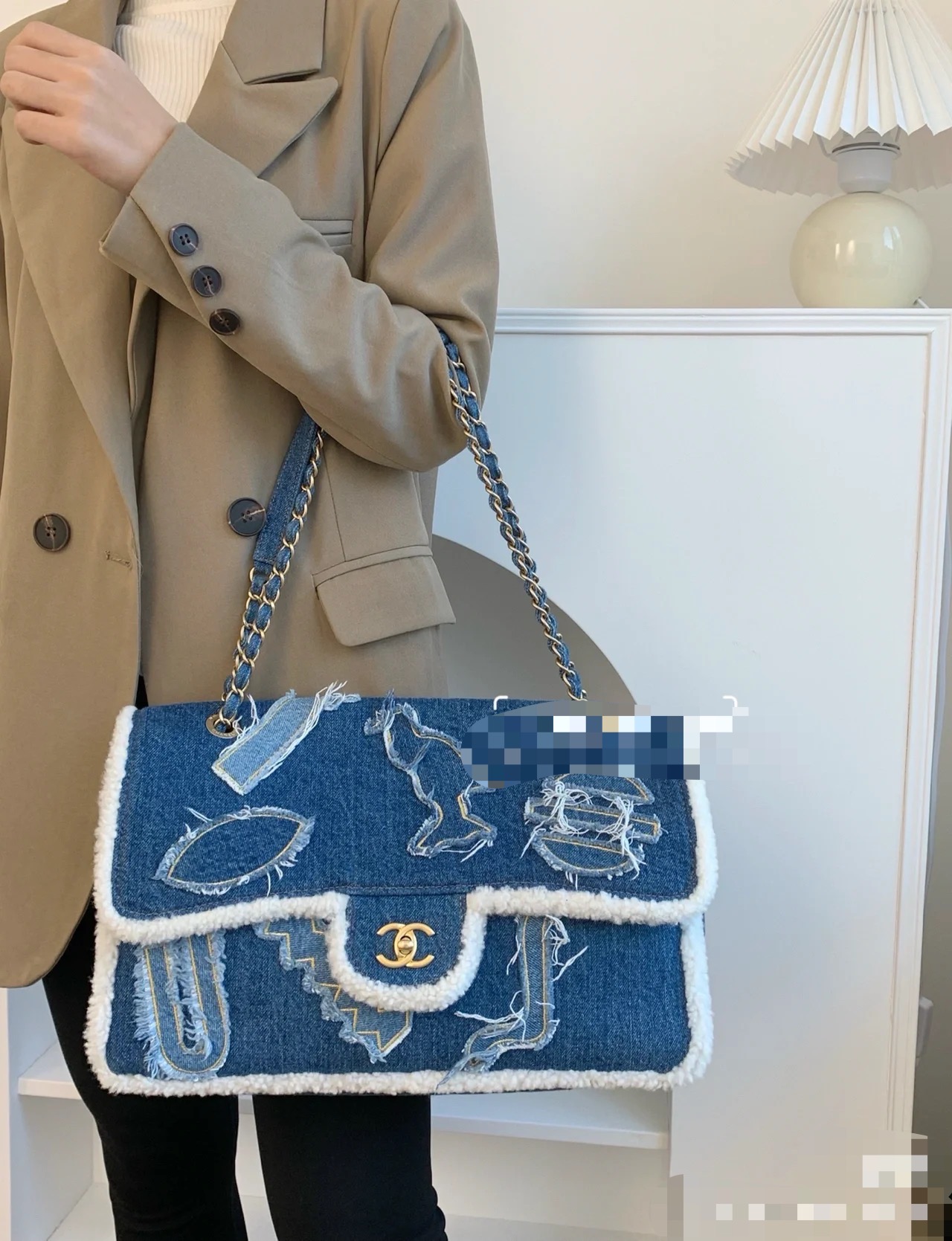 Tags: Chanel CF Bag, Denim Lambswool Bag, Designer Flap Bag, Limited Edition Chanel, Medium Chanel Bag