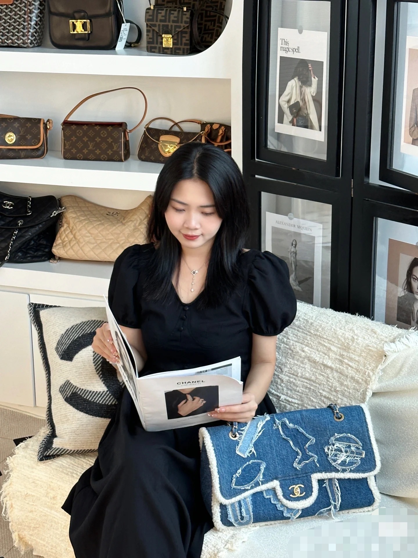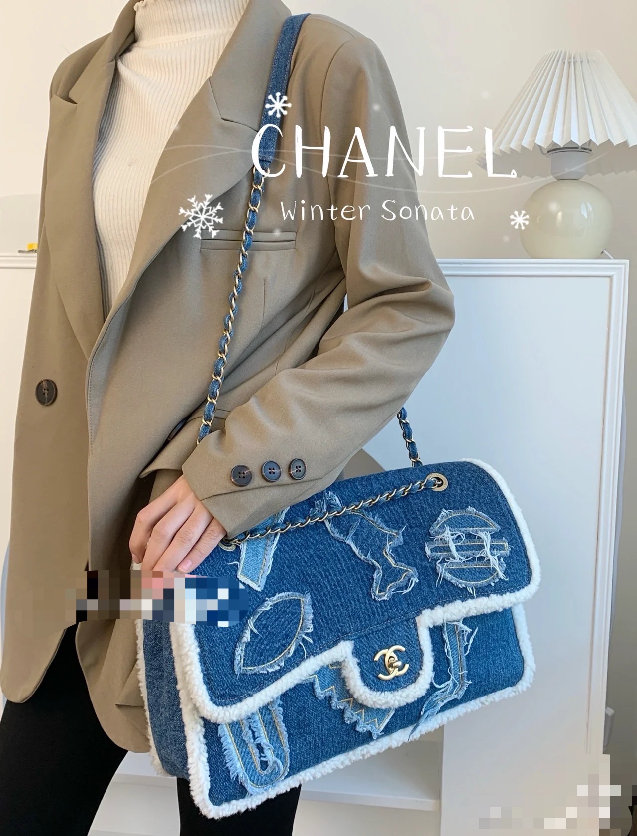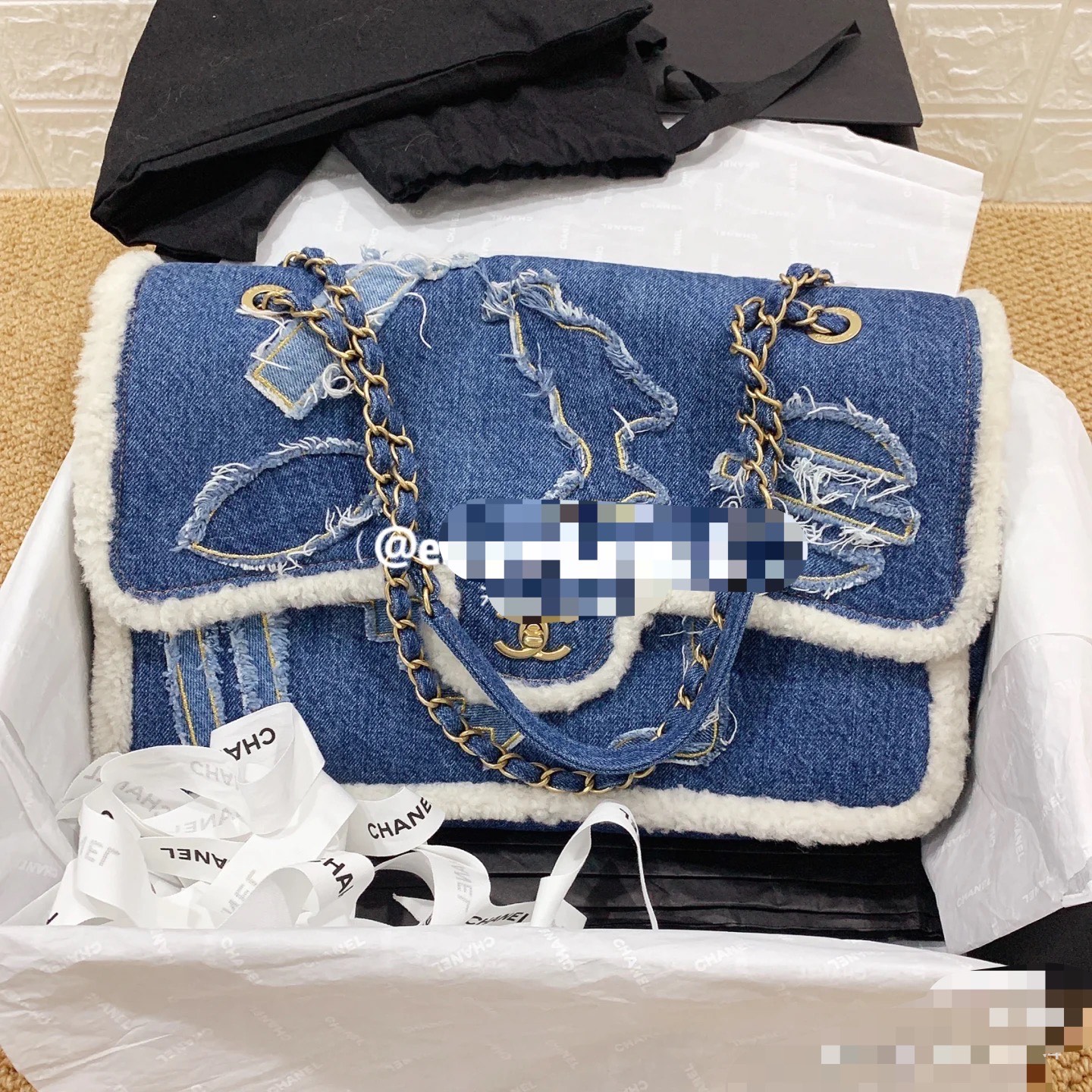 Tags: Chanel CF Bag, Denim Lambswool Bag, Designer Flap Bag, Limited Edition Chanel, Medium Chanel Bag