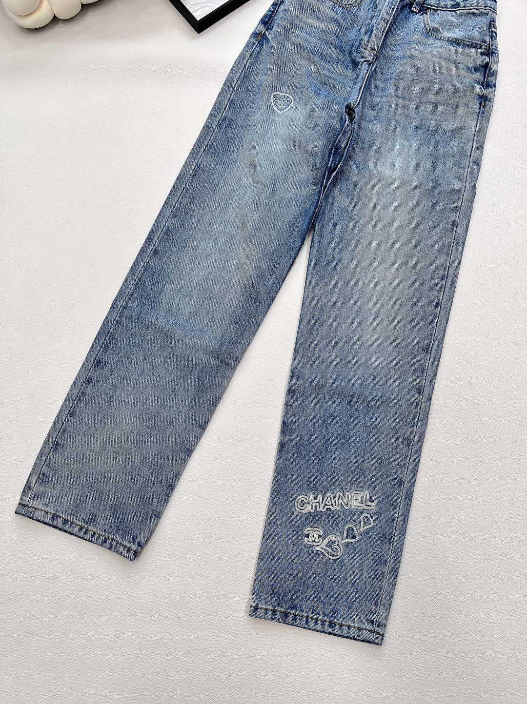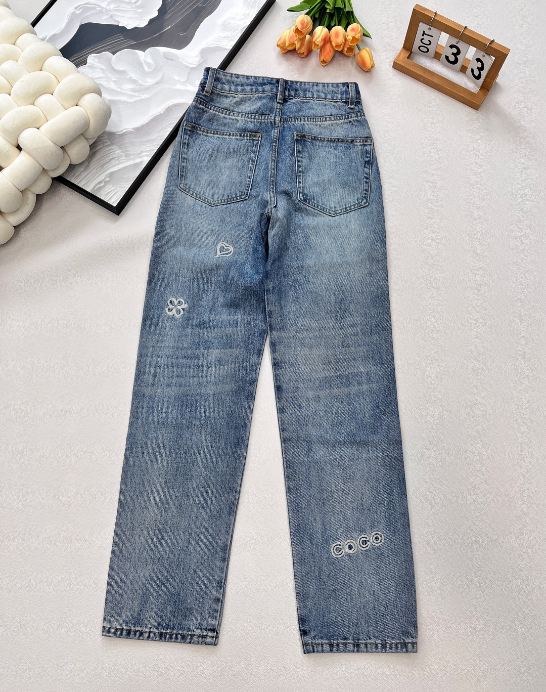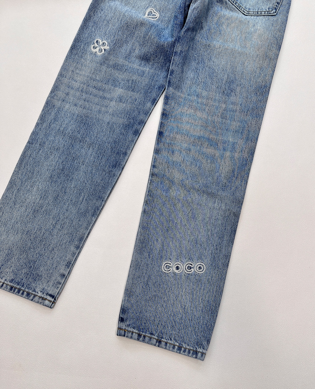 Chanel New Embroidery Straight-Leg Jeans High-Waisted Loose Fit Denim Pants