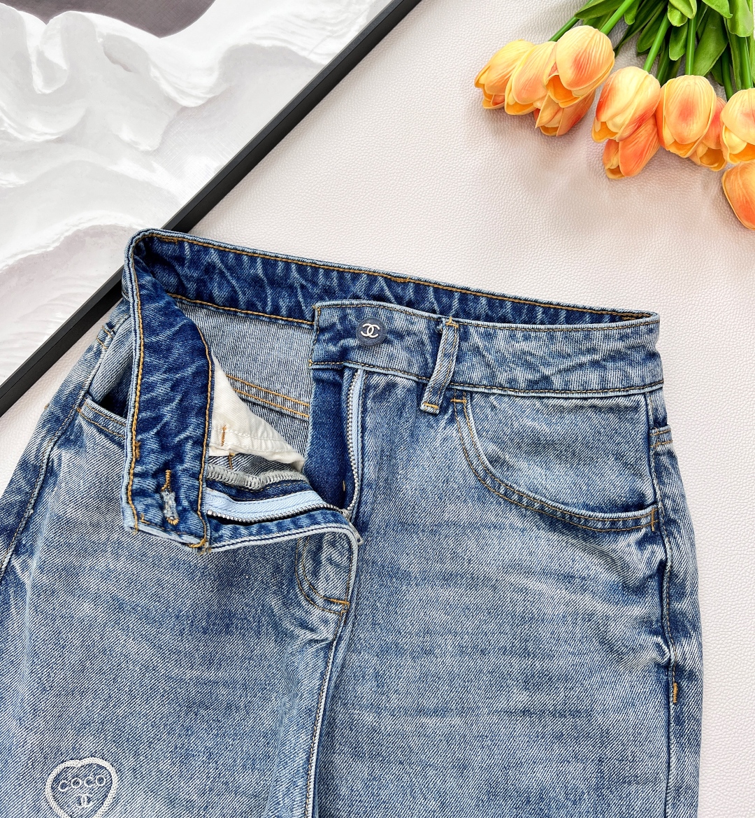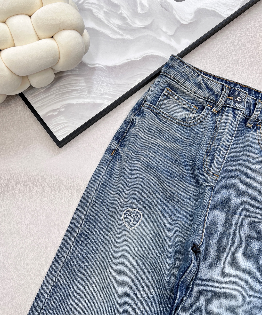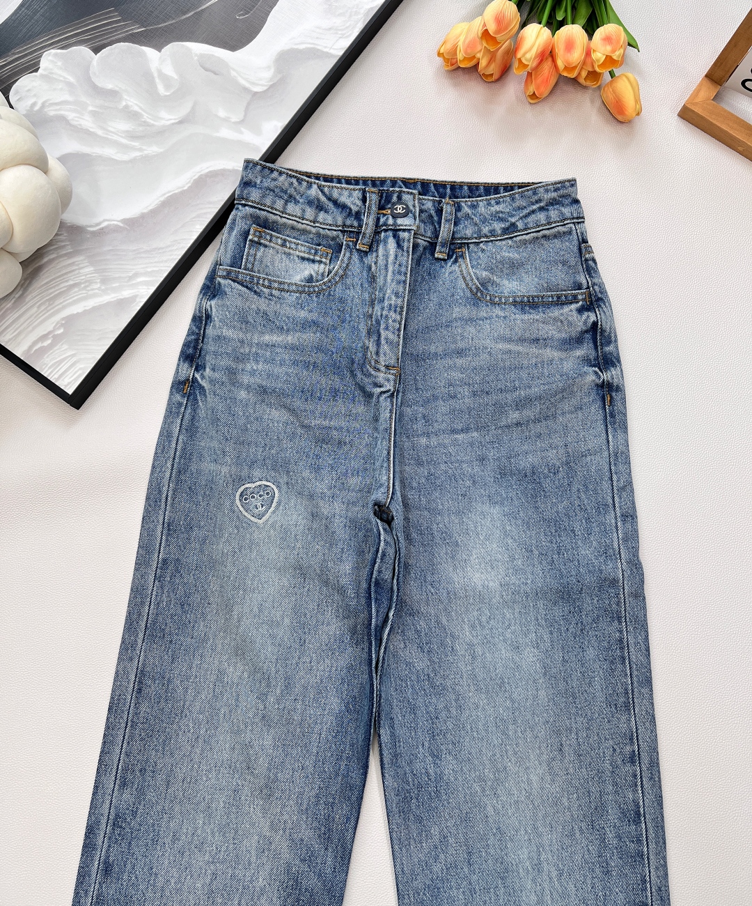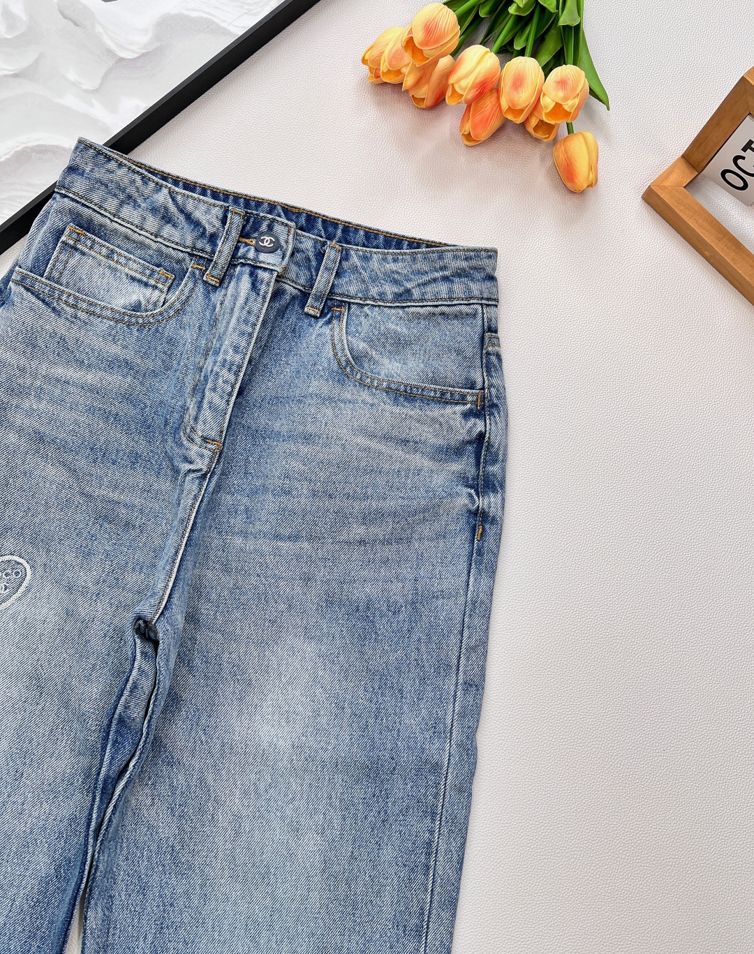Chanel New Embroidery Straight-Leg Jeans High-Waisted Loose Fit Denim Pants