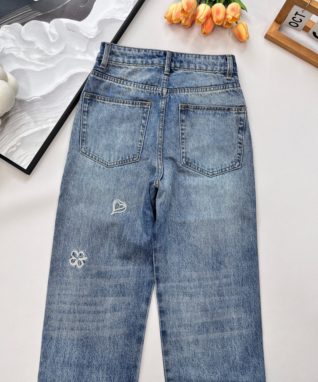 Tags: Embroidered Jeans, High Waisted Jeans, Loose Fit Jeans, Straight Leg Denim, Vintage Wash Jeans
