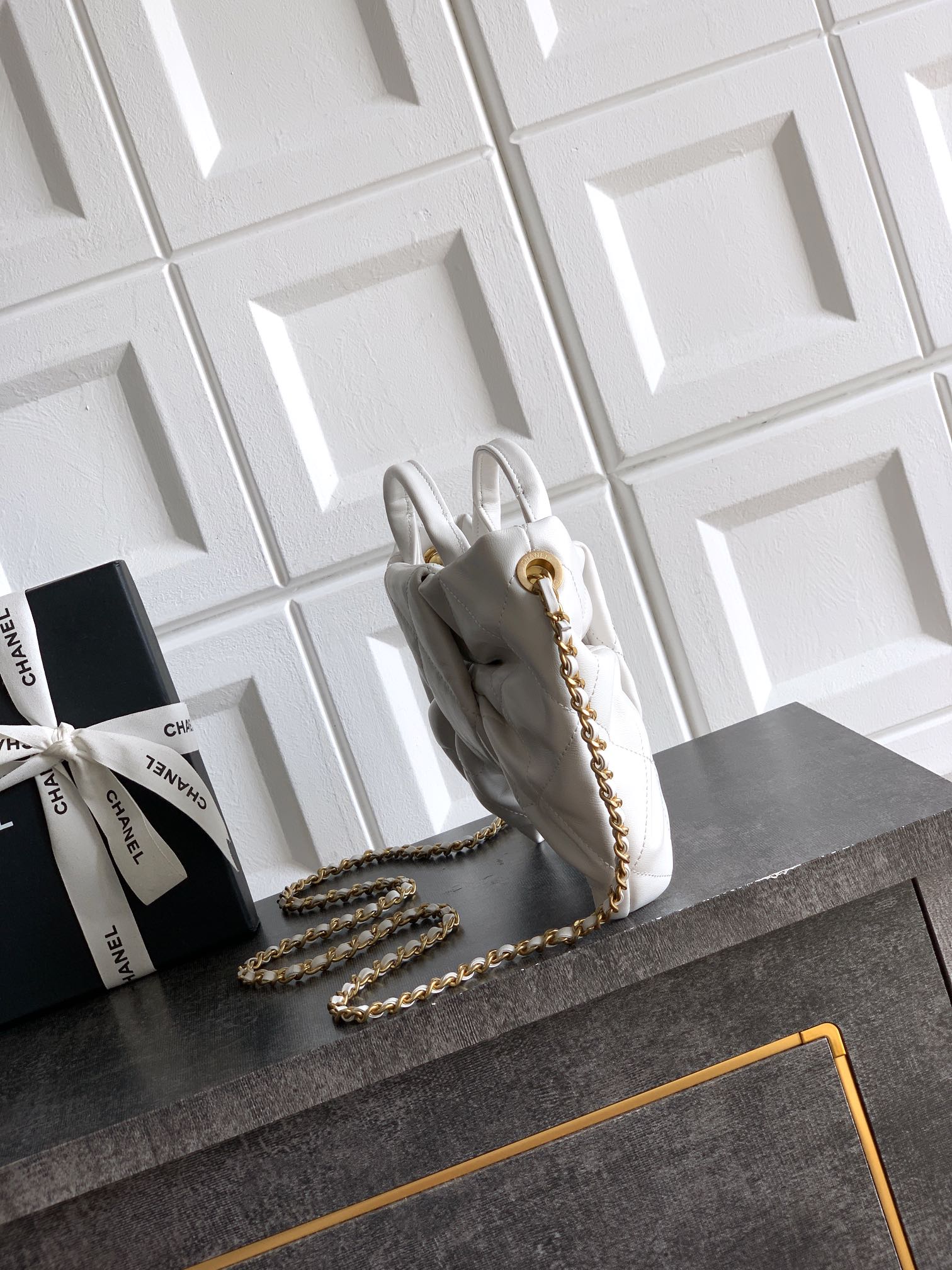 Tags: Chain Strap Handbag, Chanel Bow Bag, Lambskin Flap Bag, Luxury Bow Purse, Quilted Leather Bag, White Designer Bag
