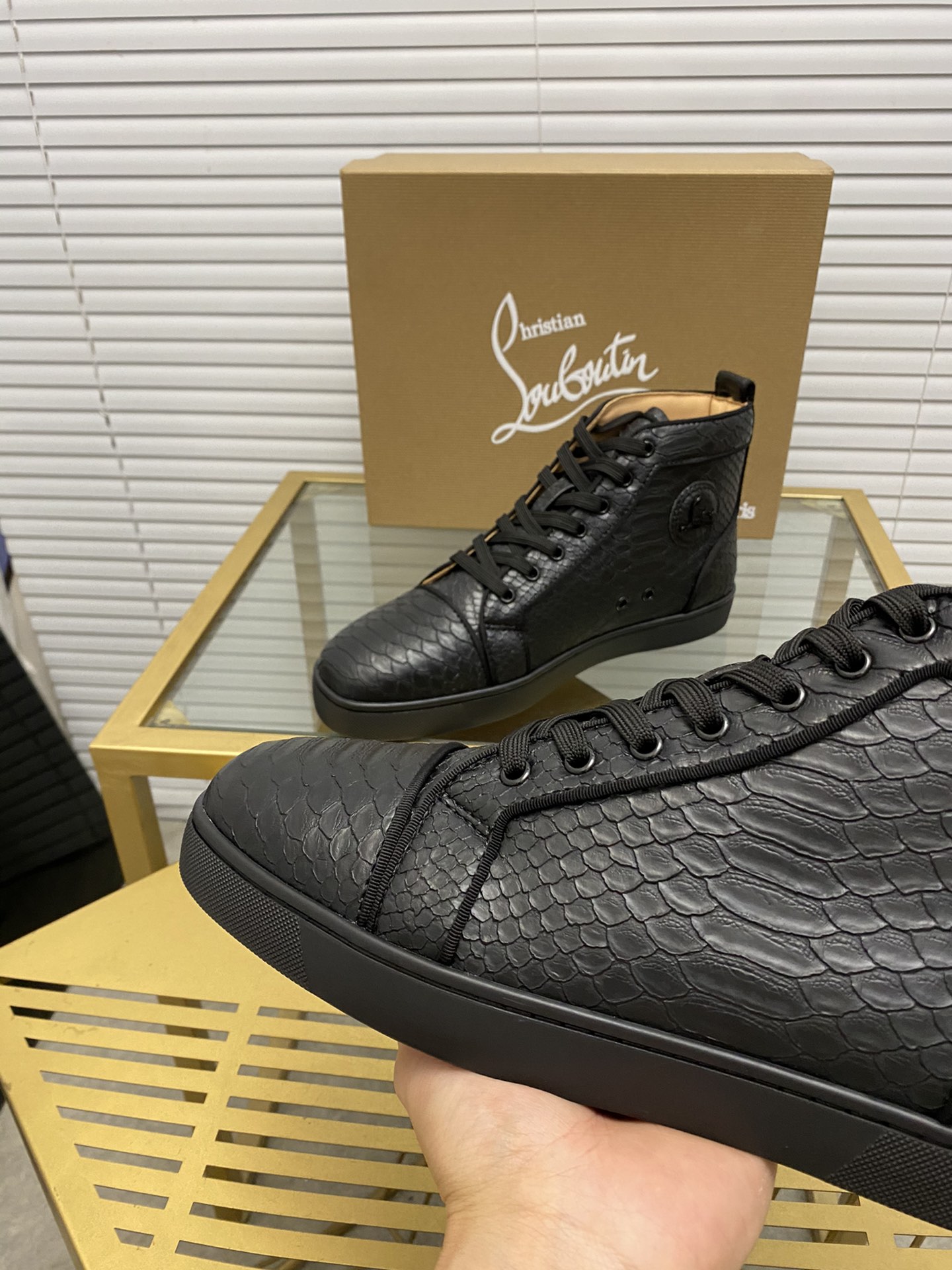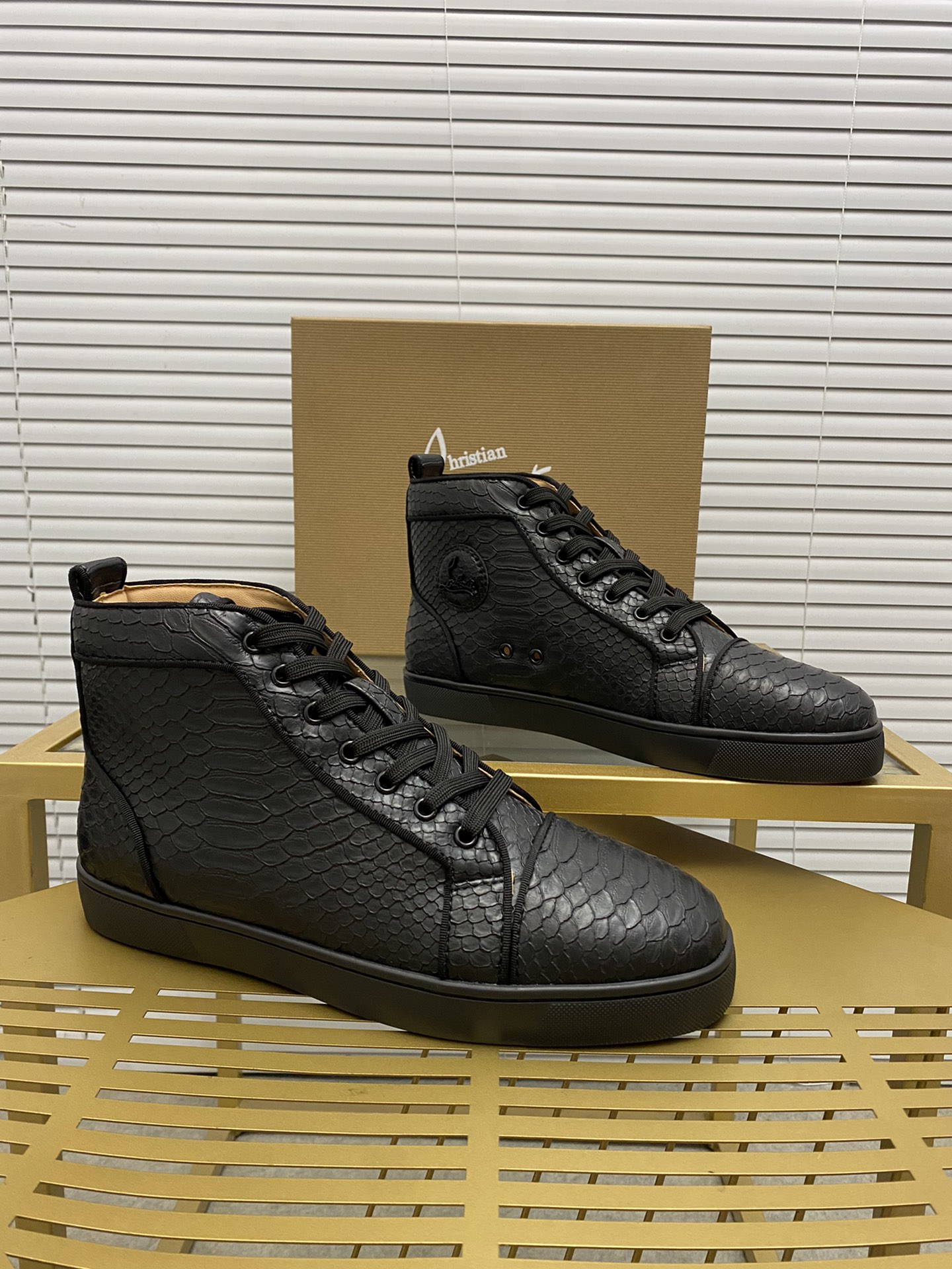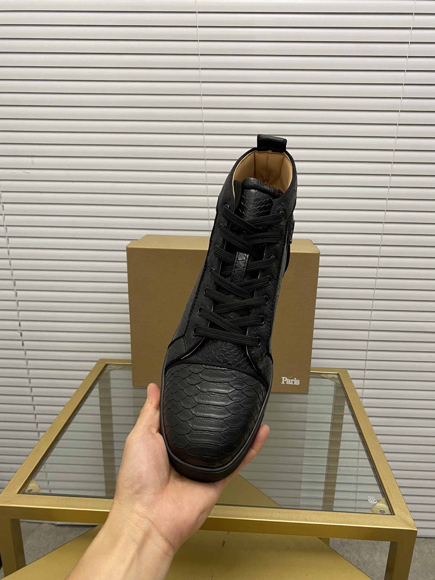 Christian Louboutin Black Leather High-Top Sneakers for Women & Men