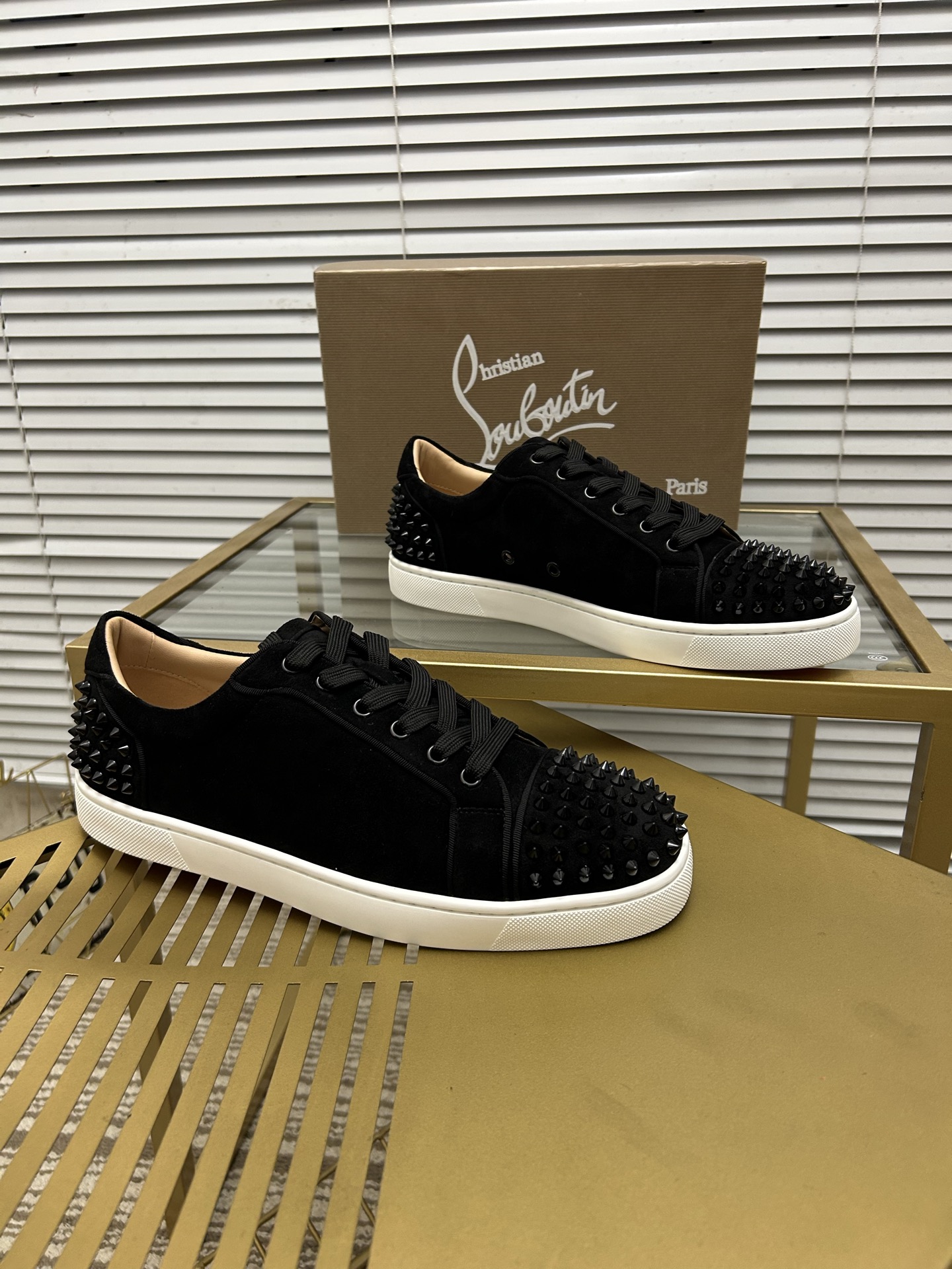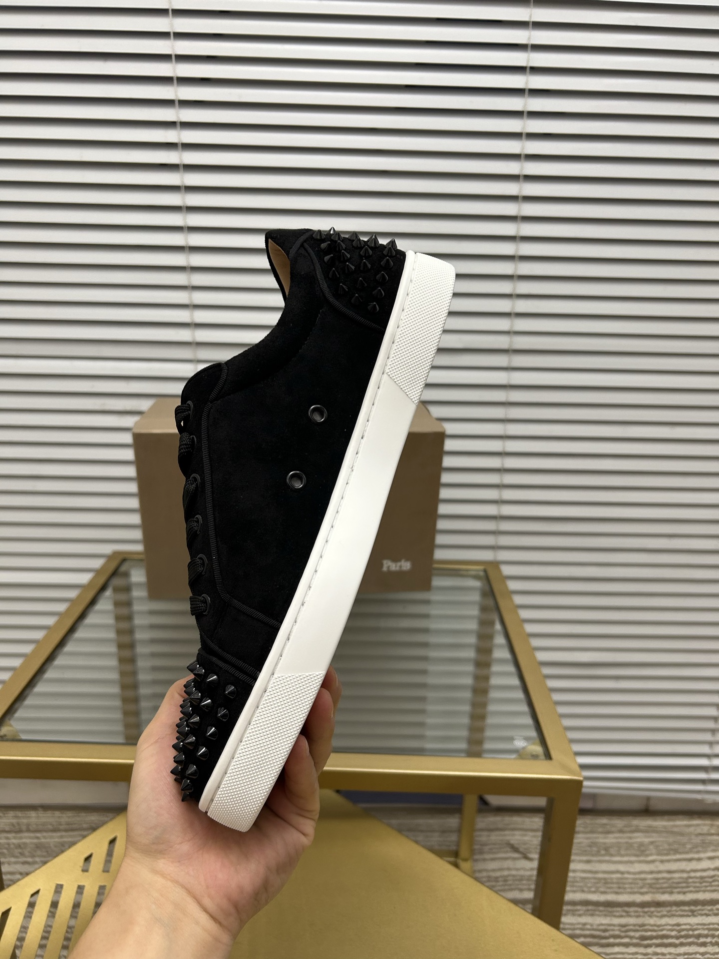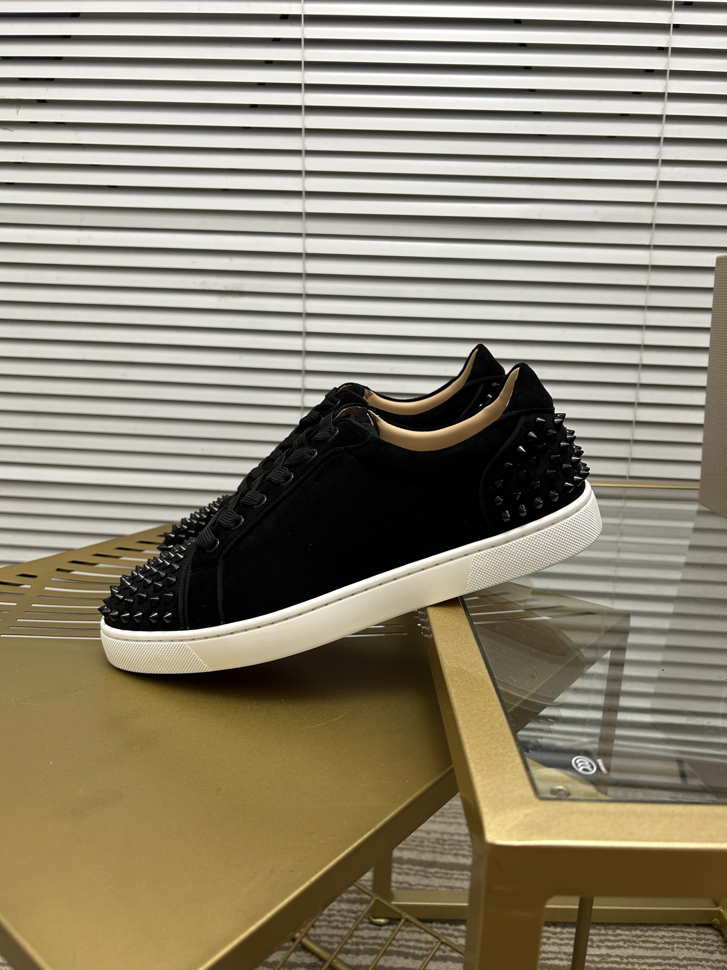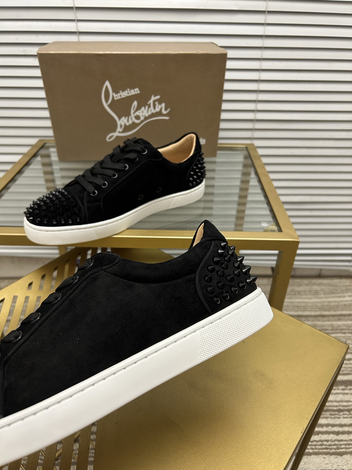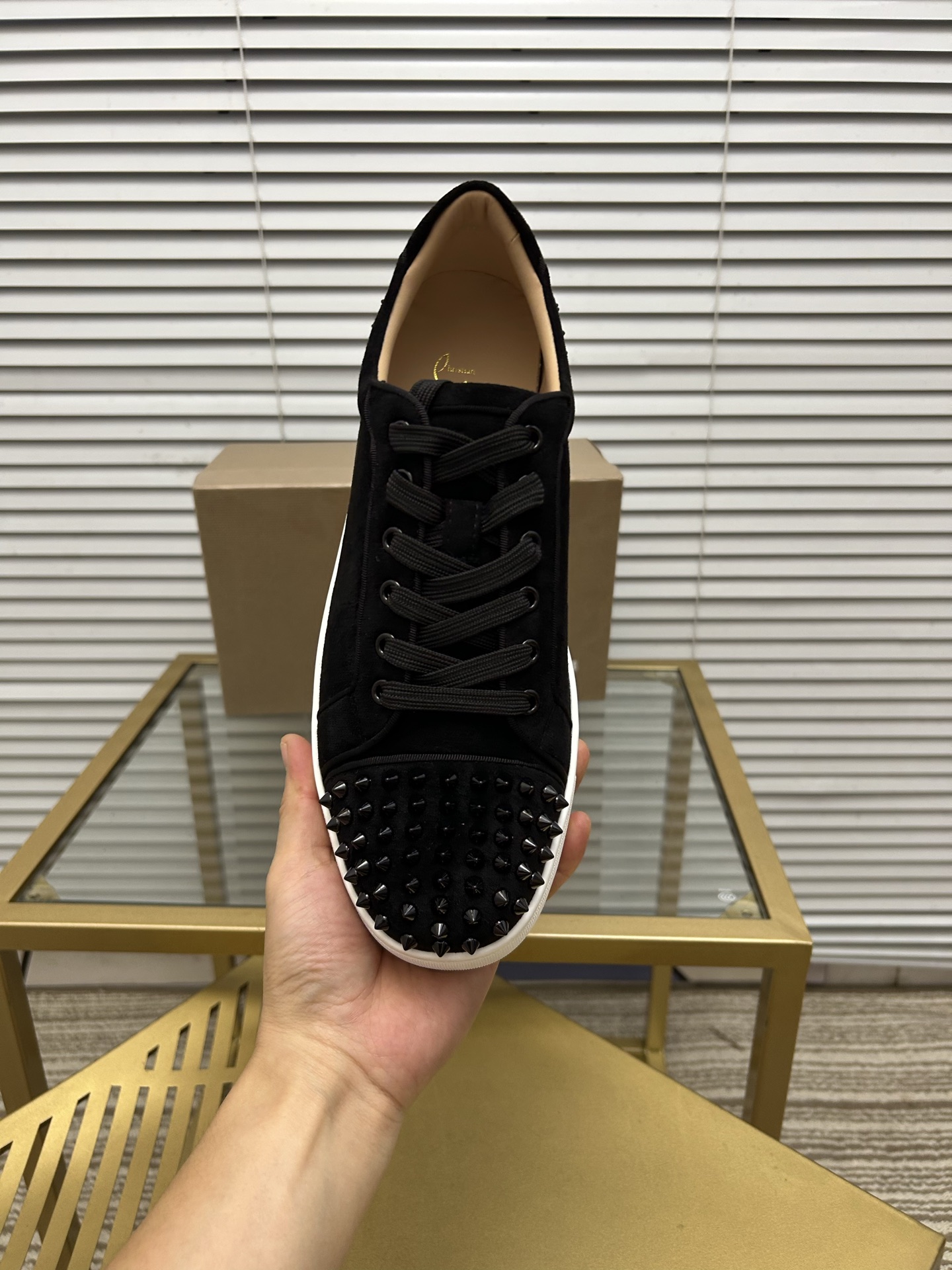 Christian Louboutin Black Suede Spike Sneakers Casual Shoes For Women & Men