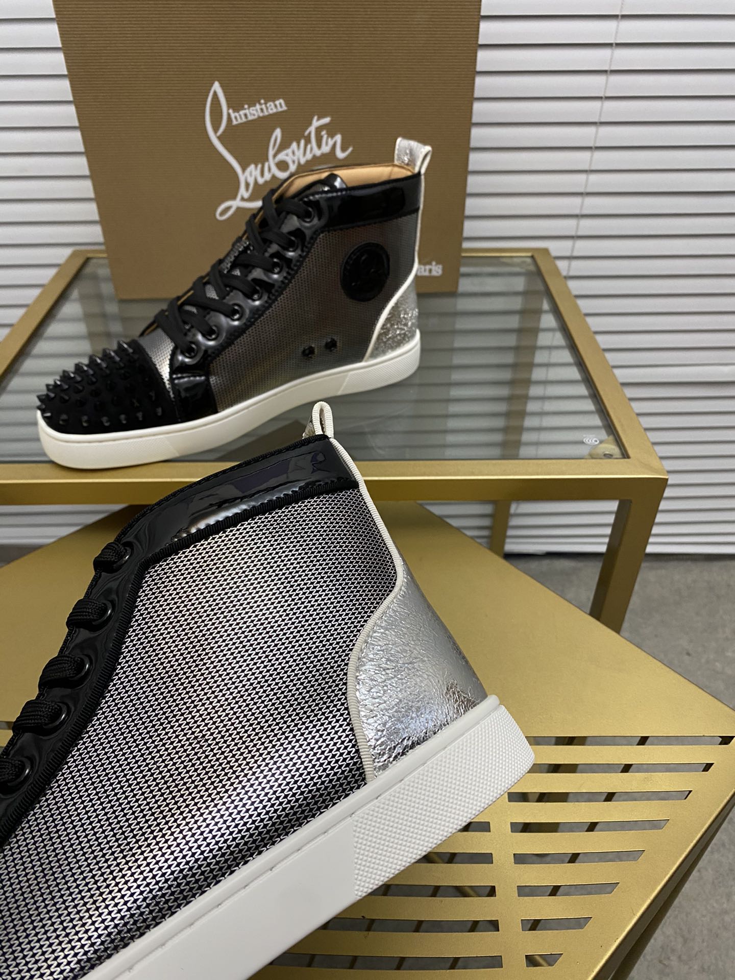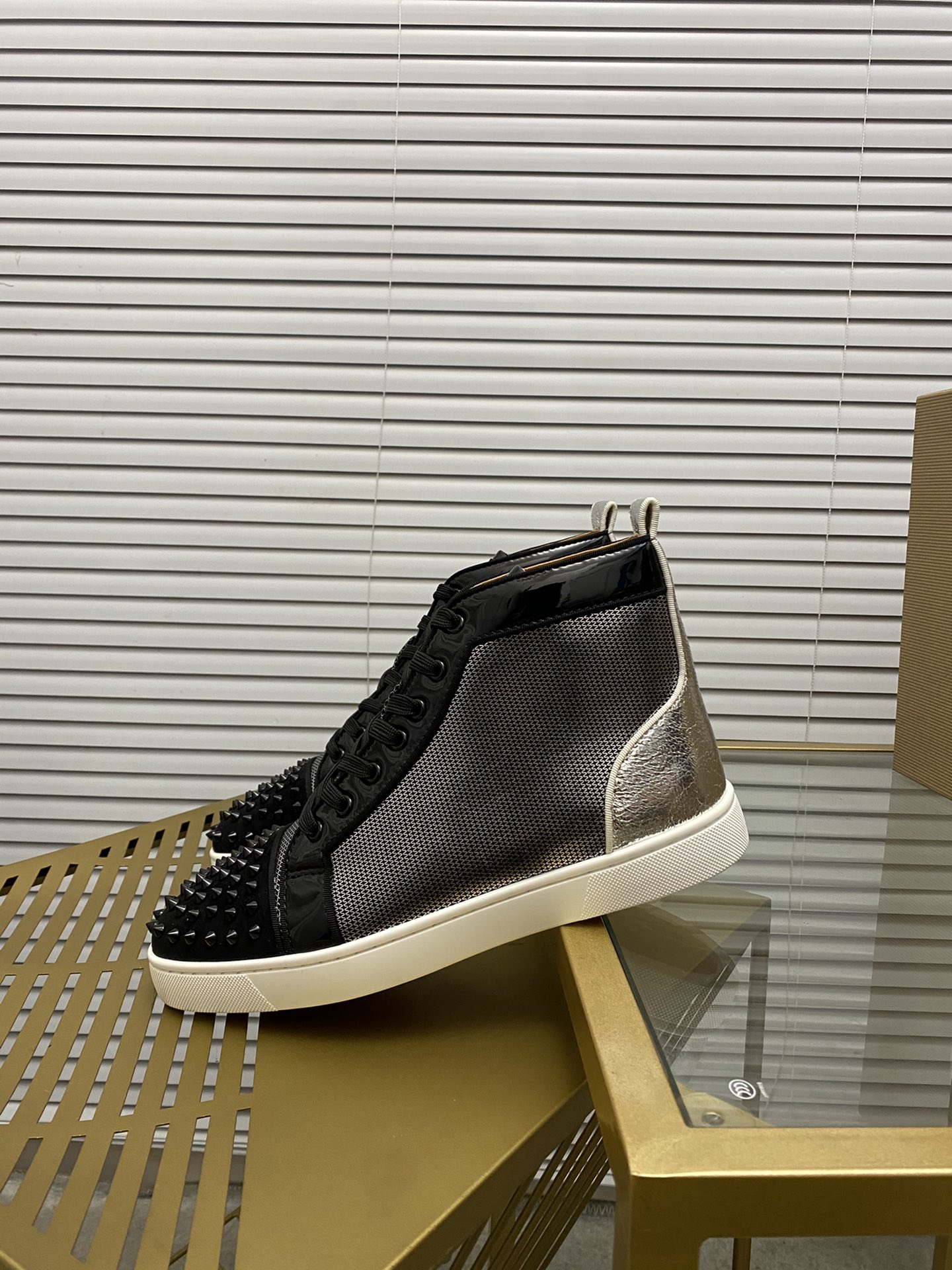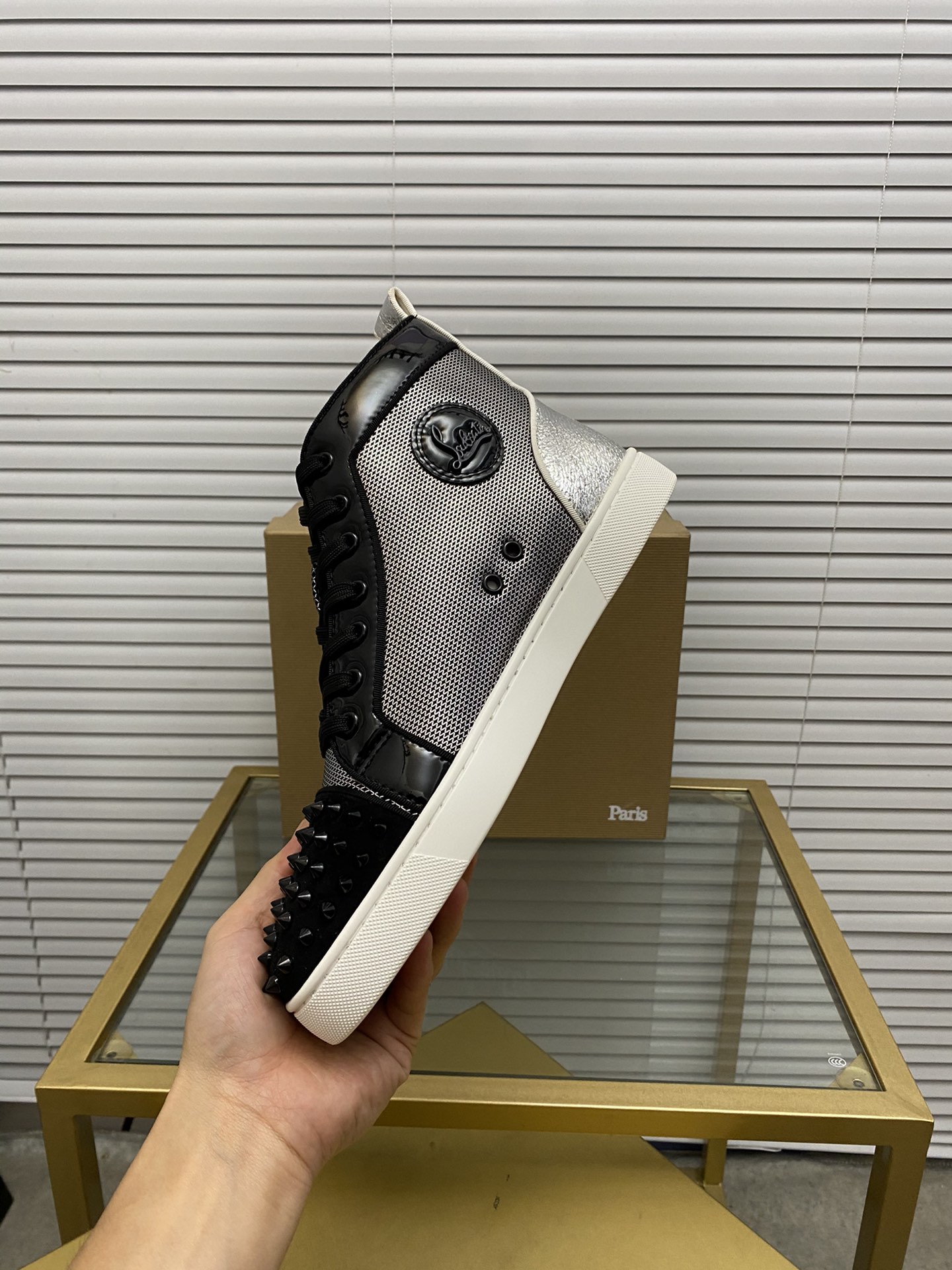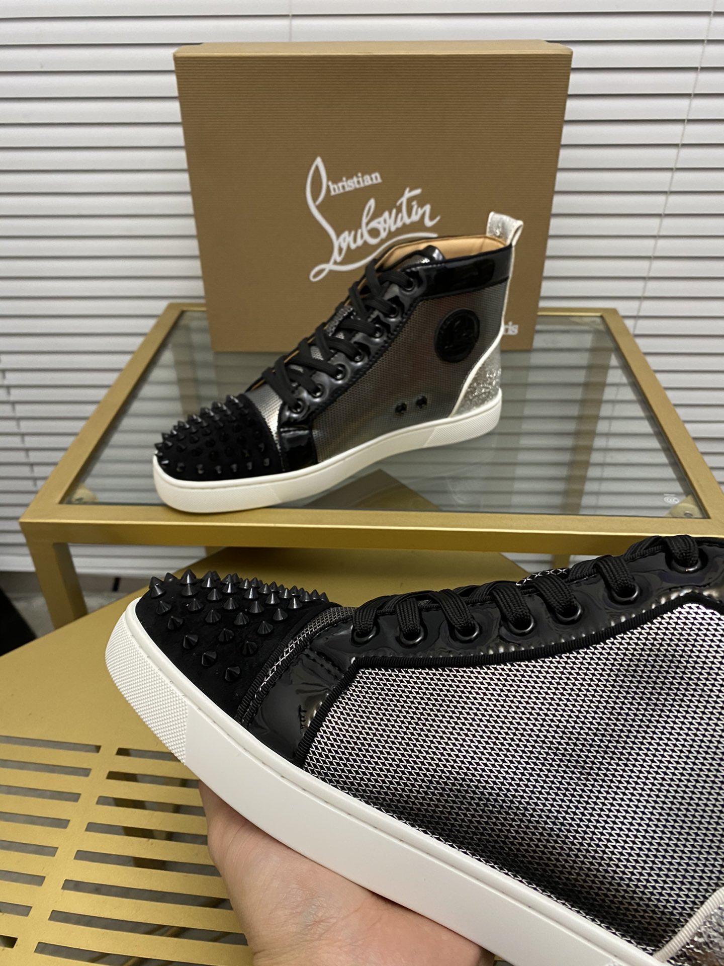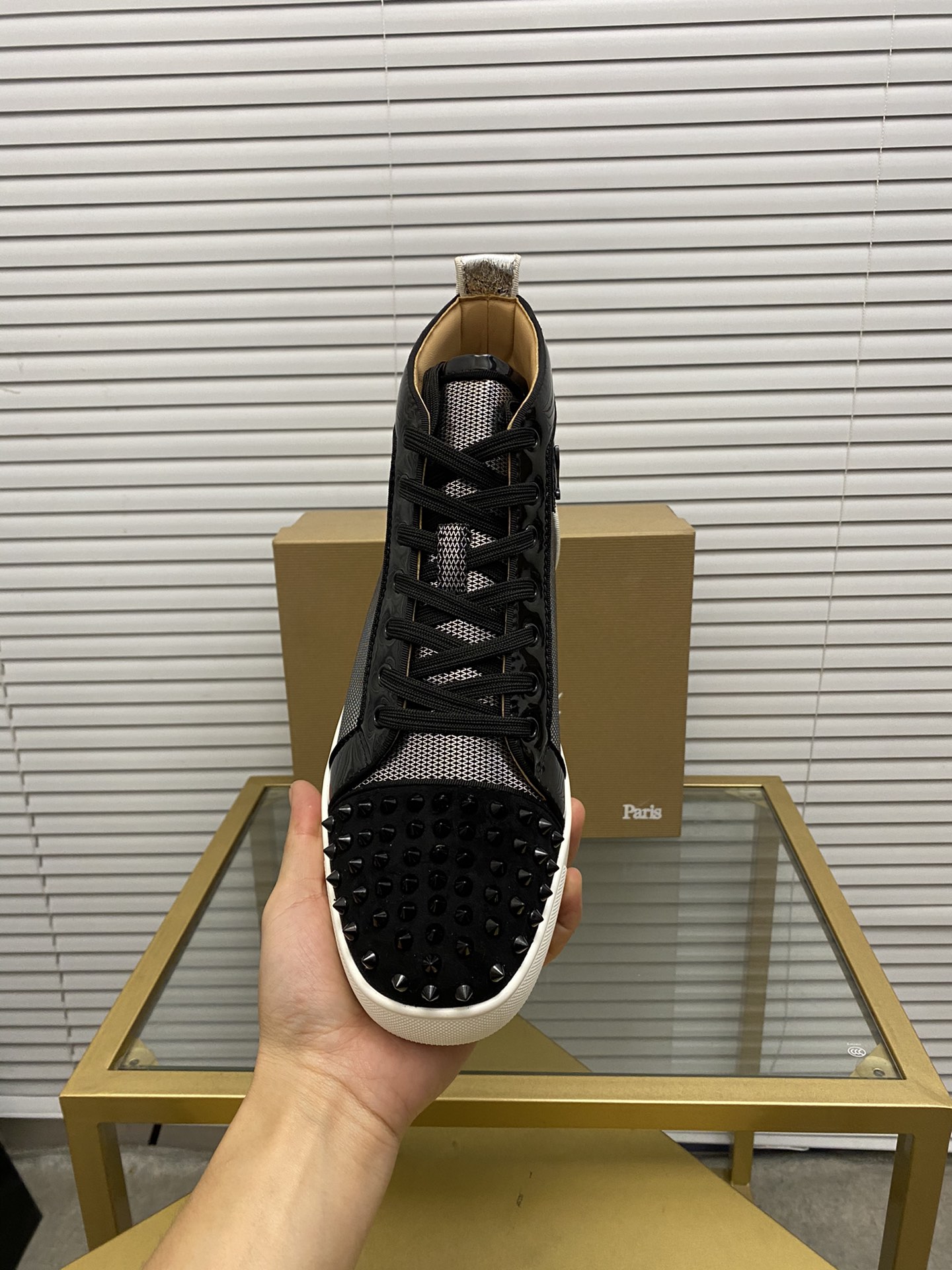 Tags: Black designer sneakers, Christian Louboutin Sneakers, Fashion Sneakers, Luxury Footwear, Men's high top sneakers, Spike Embellished Shoes