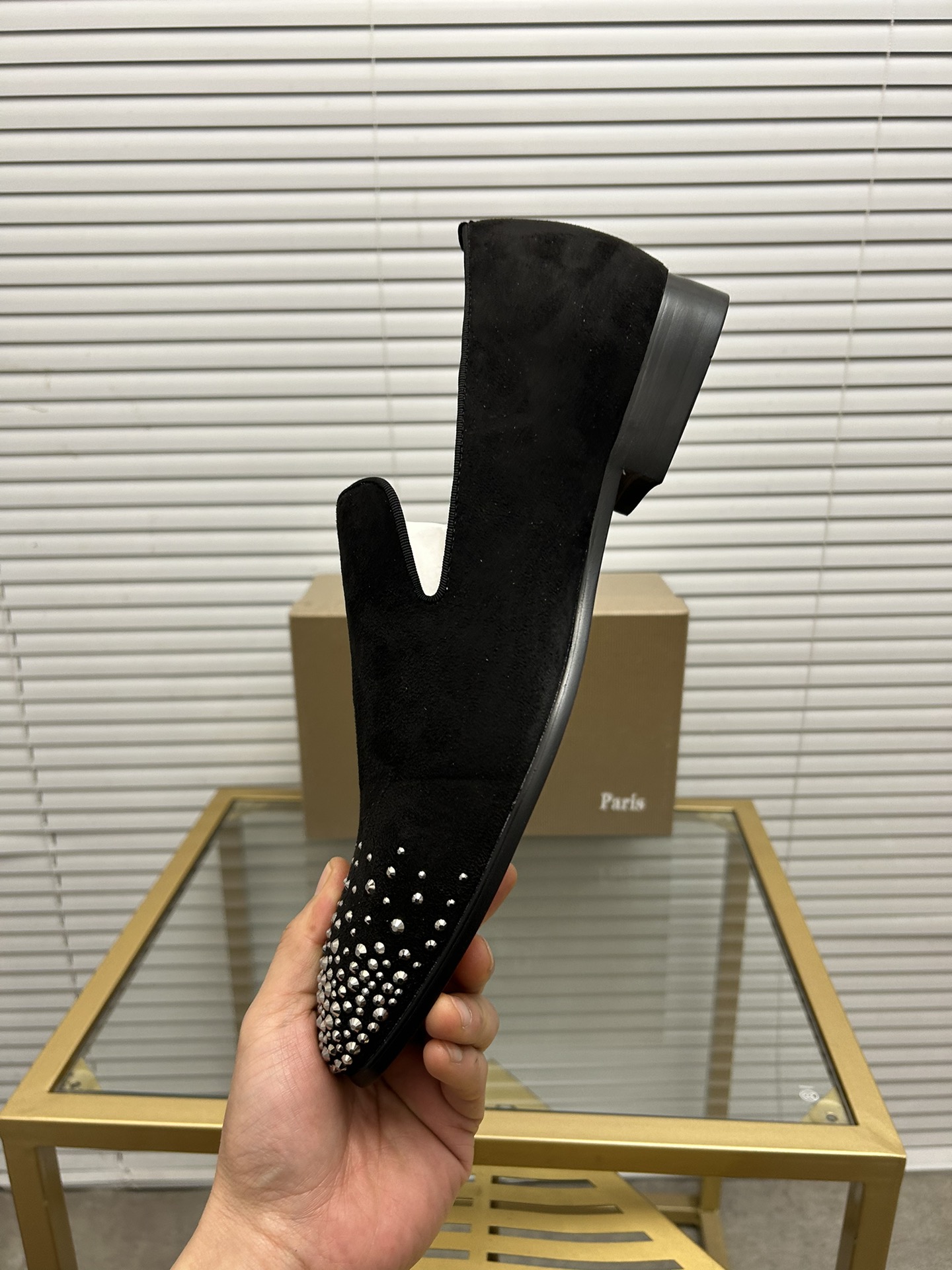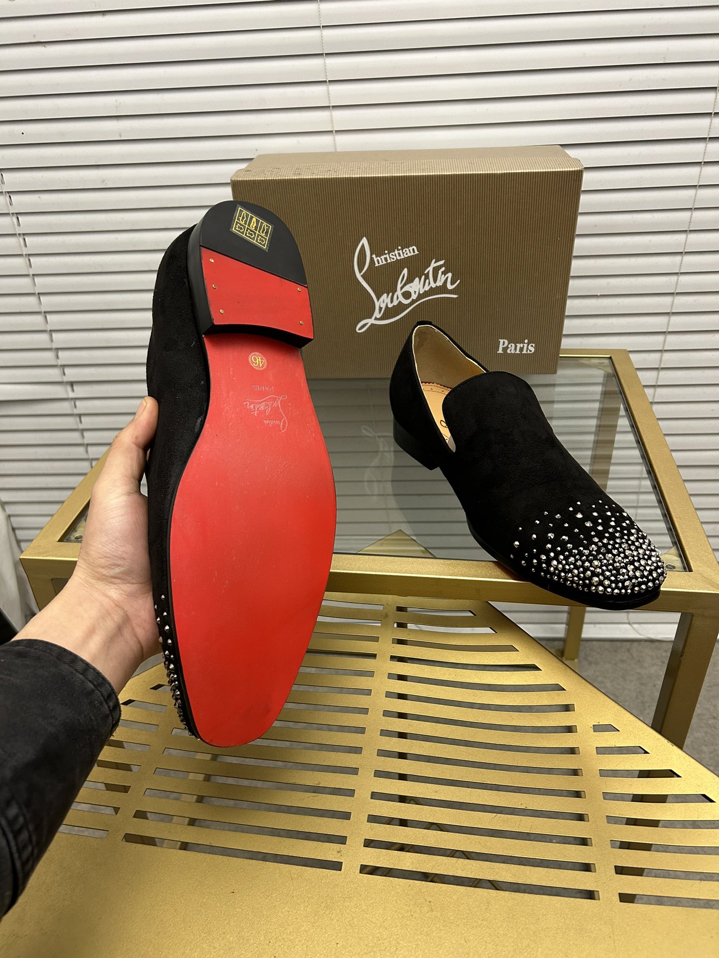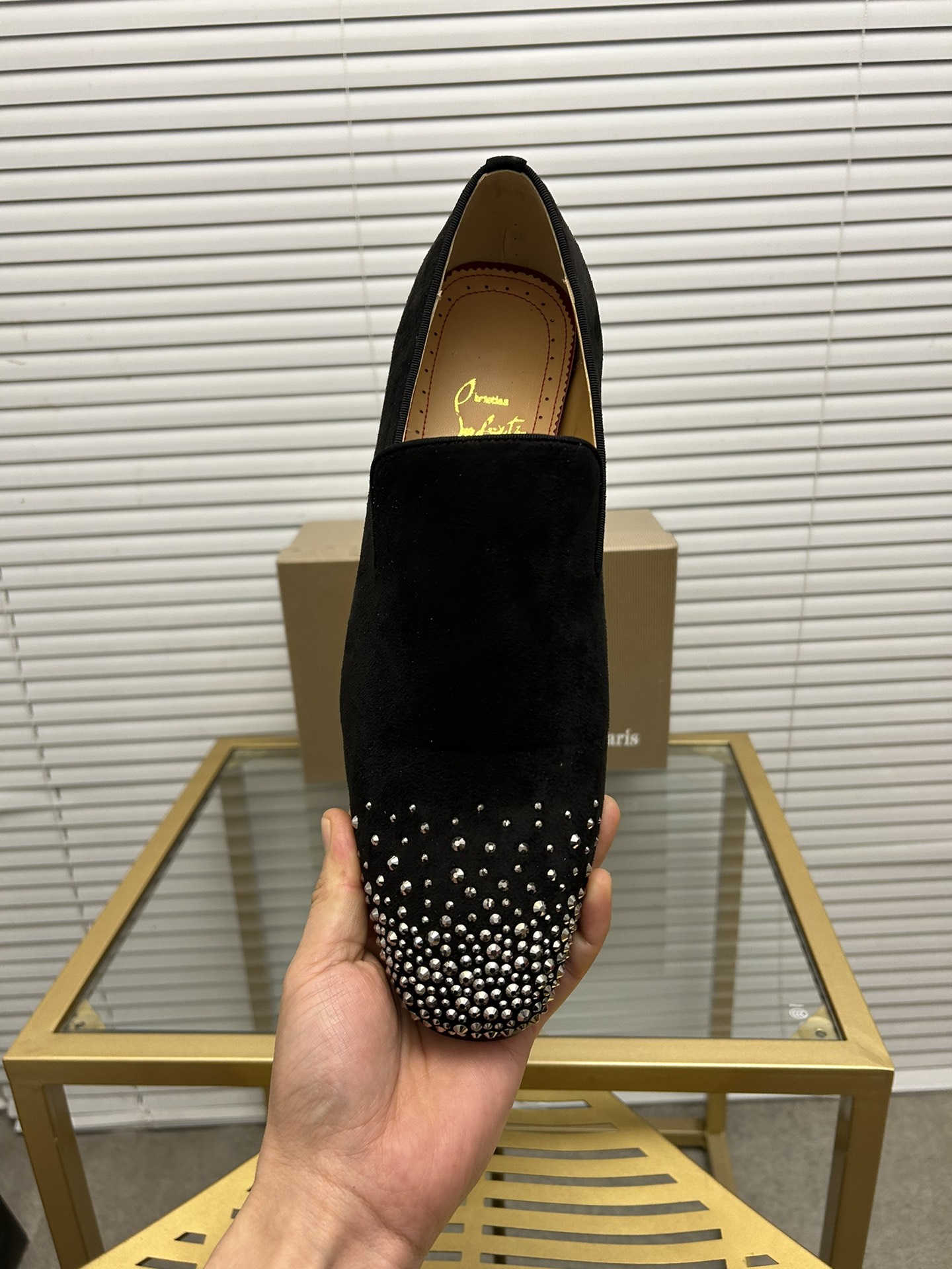 Tags: Christian Louboutin Loafers, Crystal Embellished Loafers, Designer Slip On Shoes, Luxury Men's Footwear, Mens Suede Shoes