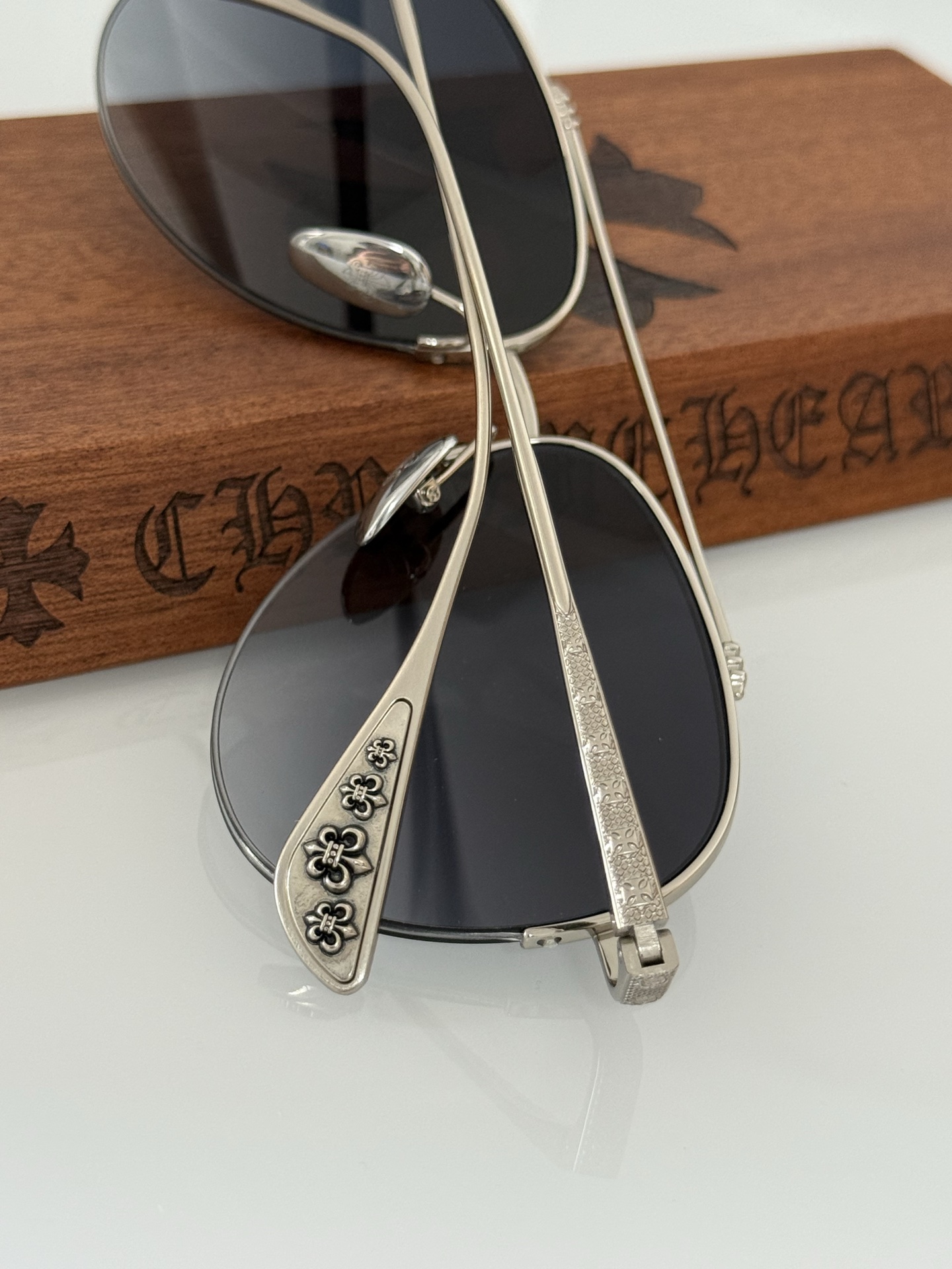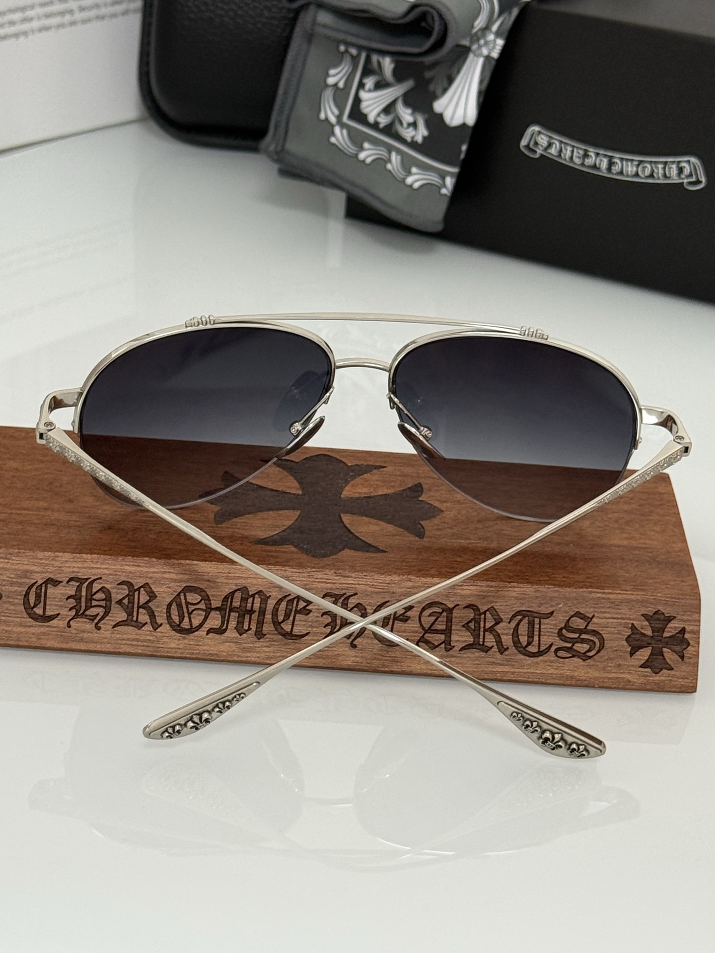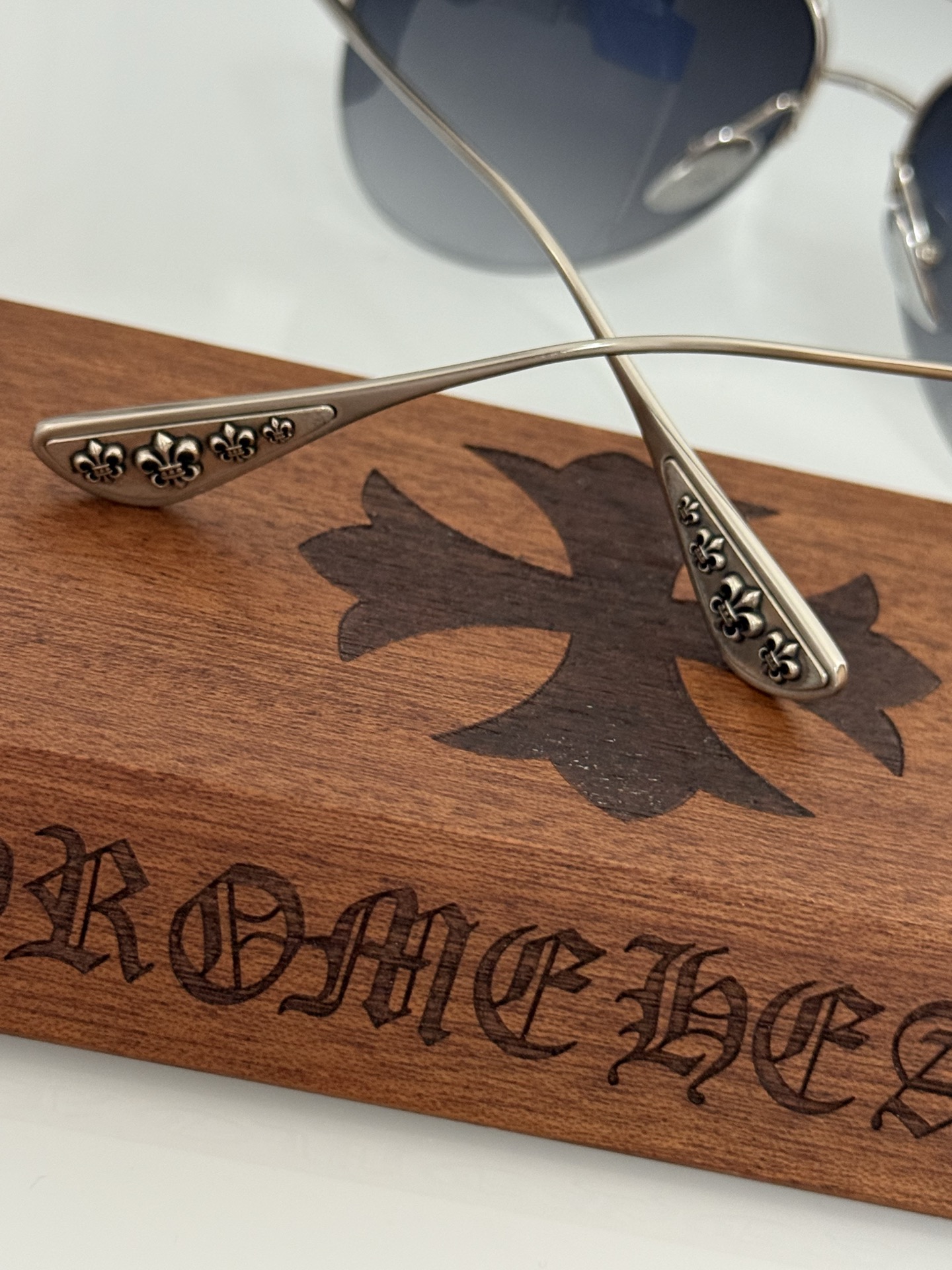 Elevate your eyewear collection with these exquisite aviator sunglasses from Chrome Hearts. Crafted with meticulous attention to detail, these sunglasses blend timeless style with modern sophistication.