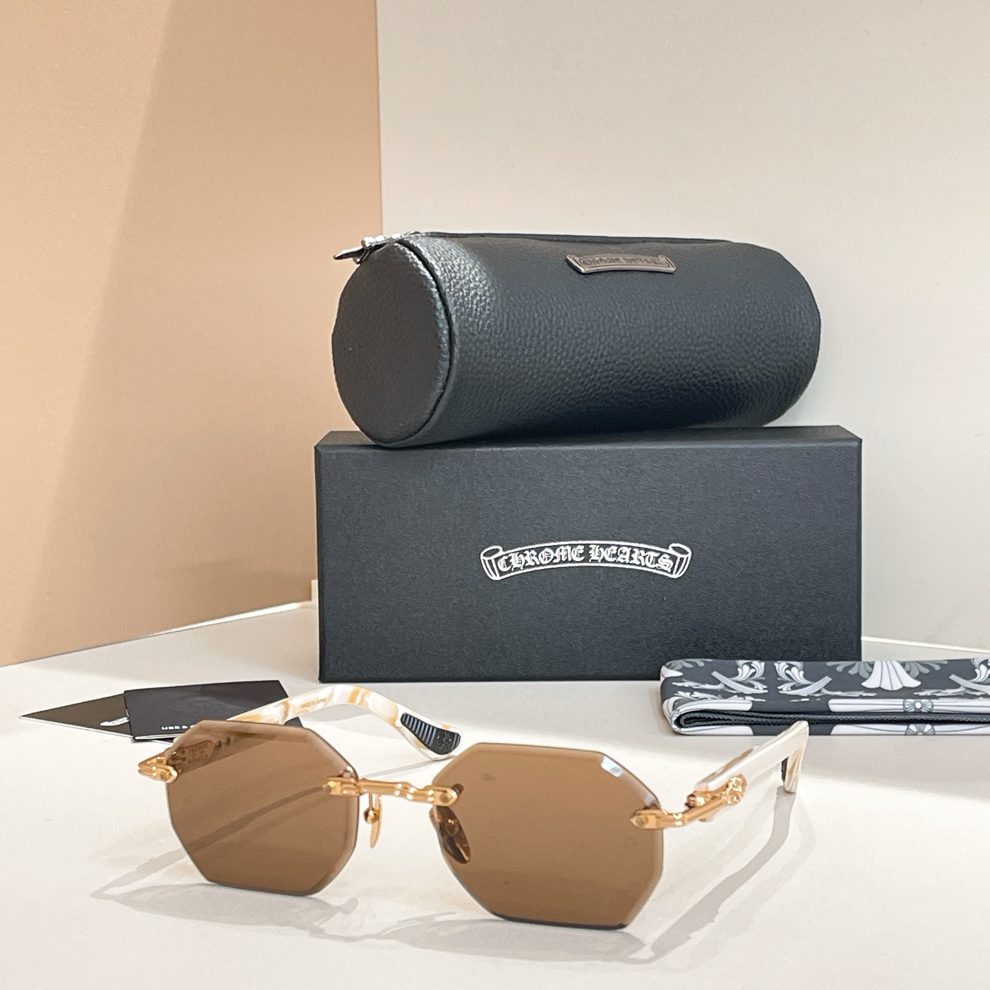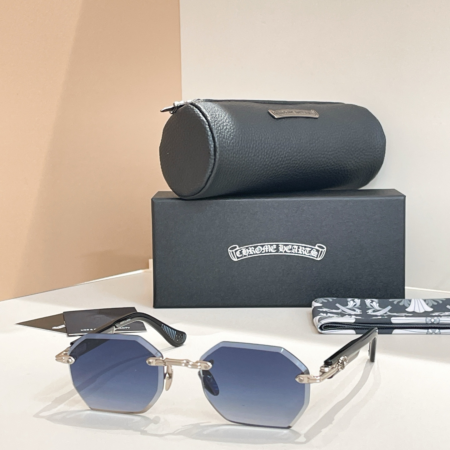 These CHROME HEARTS DEPPE II sunglasses are designed to make a bold statement. Featuring a unique octagon shape and a stylish silver finish, these sunglasses provide both fashion and function.
